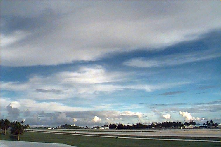 A few moderately developed Cu to SE one further to S; otherwise Sc in all directions. NE-SW line of Ac begining at 70 degrees elevation and streching to horizon. Patchy Cs to SW, lines of Cc spreading radially from NE horizon. |