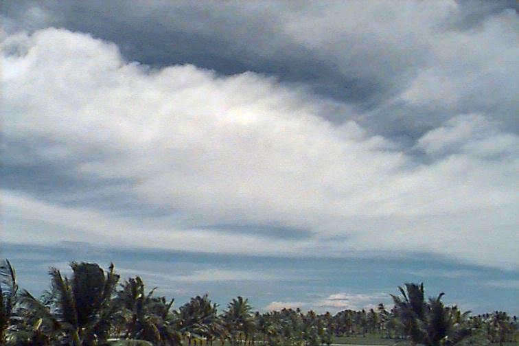 Low level clouds only on E and W horizon, patches of Ac in N half of sky, sections of elongated Cs from past and present Cb's |