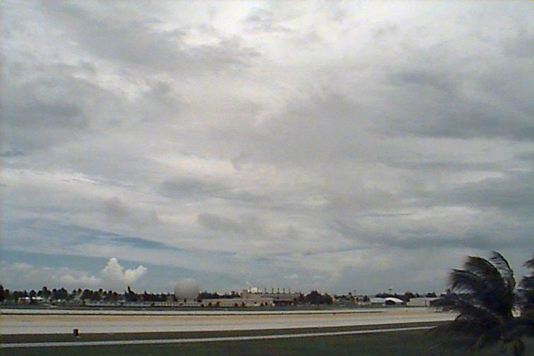Dark Cb to the south. Ac patch to west, otherwise opaque As. Upper level boundary north of Kwaj oriented E-W with Cs to south and clear skies to north. |