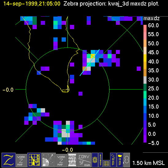 The following page is a list of comparisons between visual images of clouds and their radar counterparts. It is intended as a showcase of the qualitative relation between the two in the immediate vicinity of Kwajalein Island.