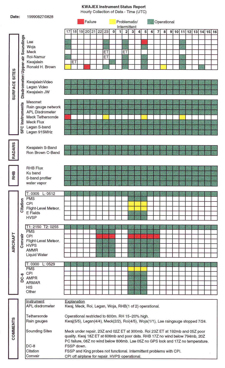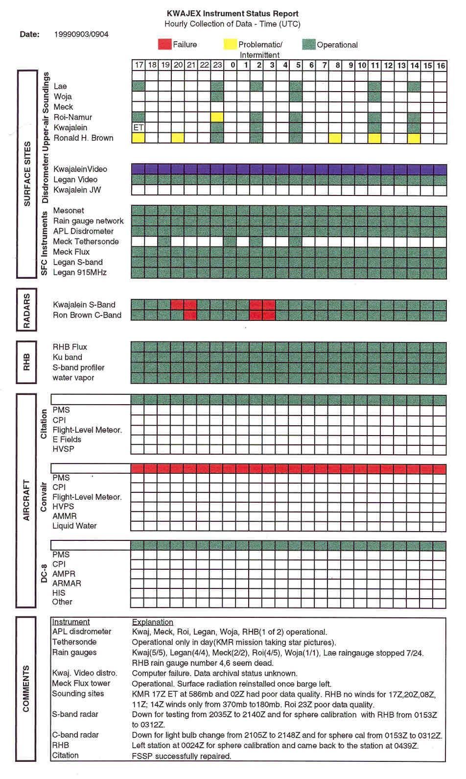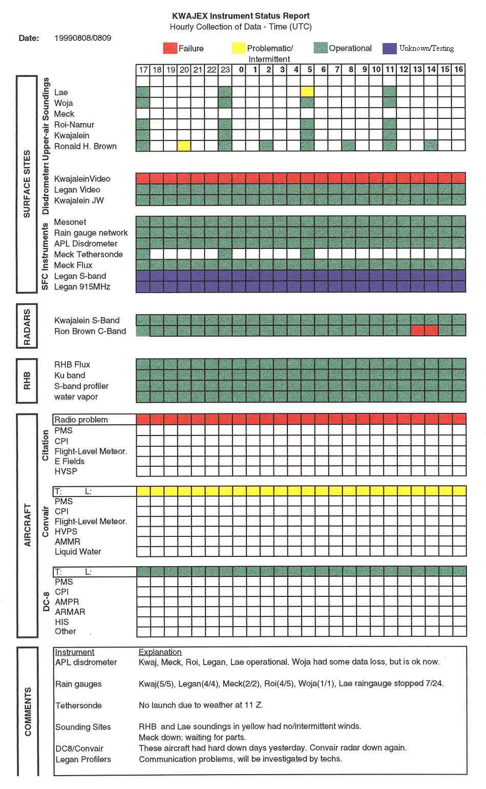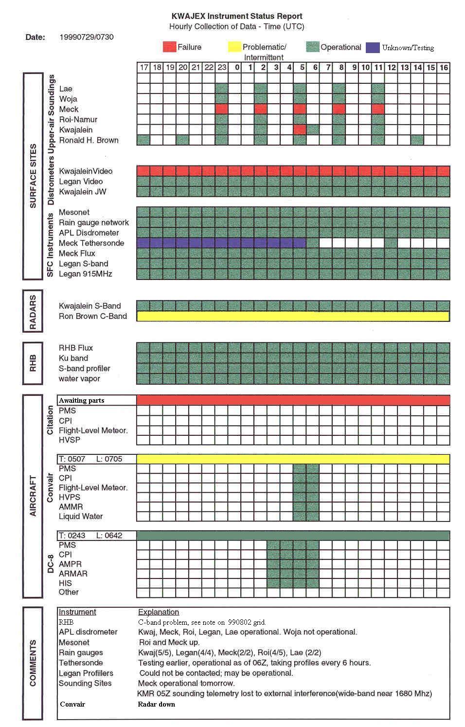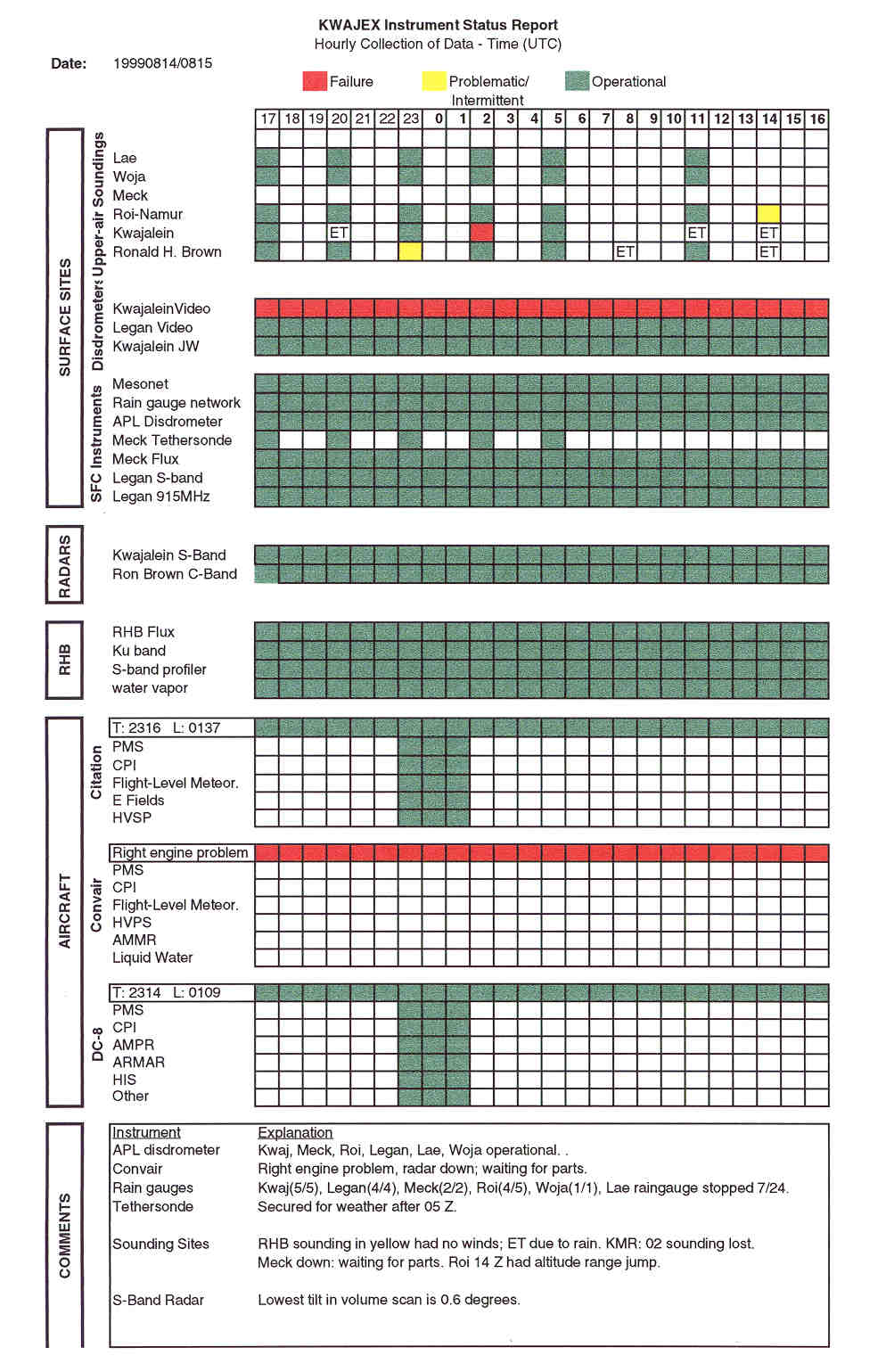 KWAJEX Daily Status CatalogThe following calendar contains links to a chart of instrument status (accessible by clicking on the date).