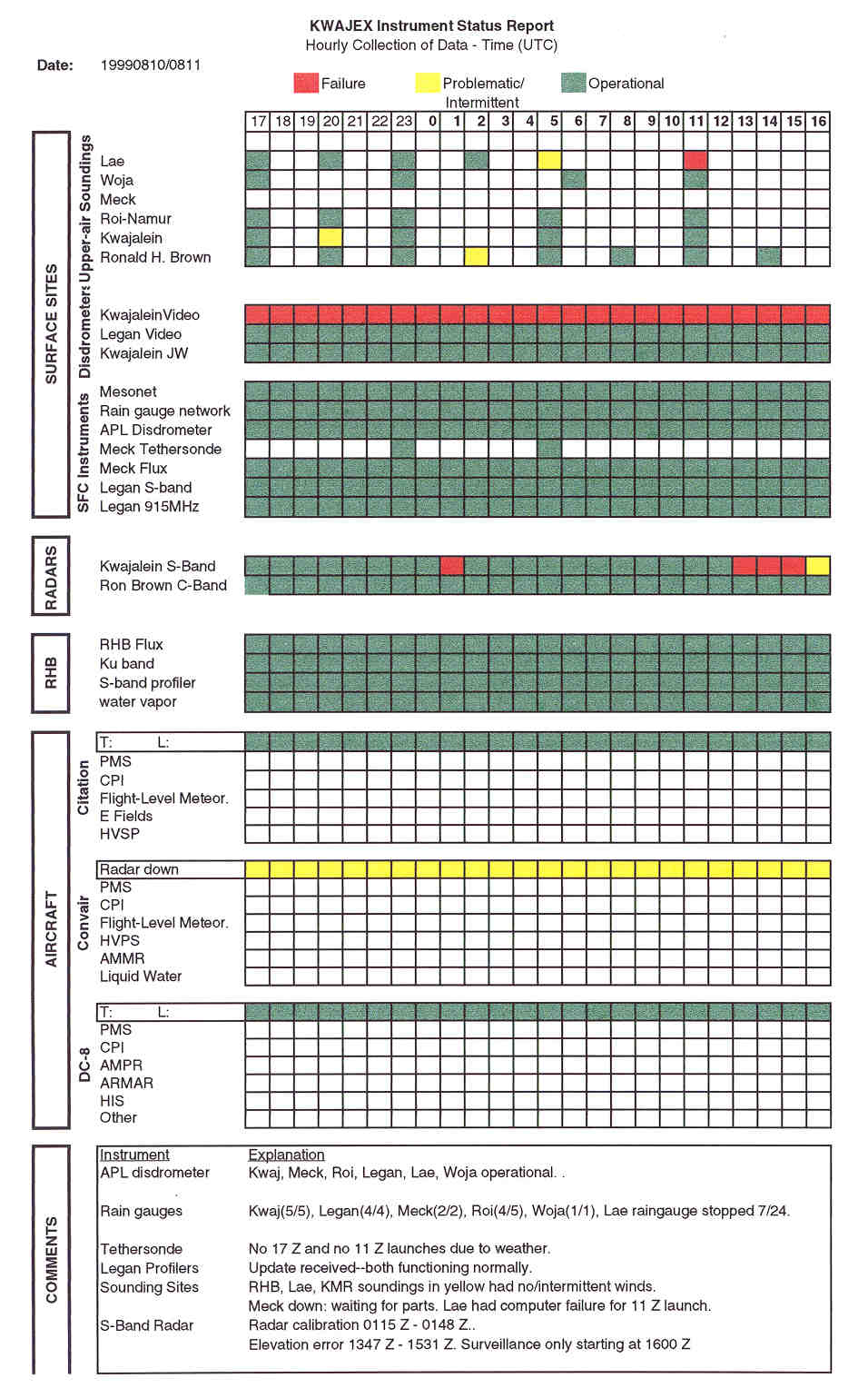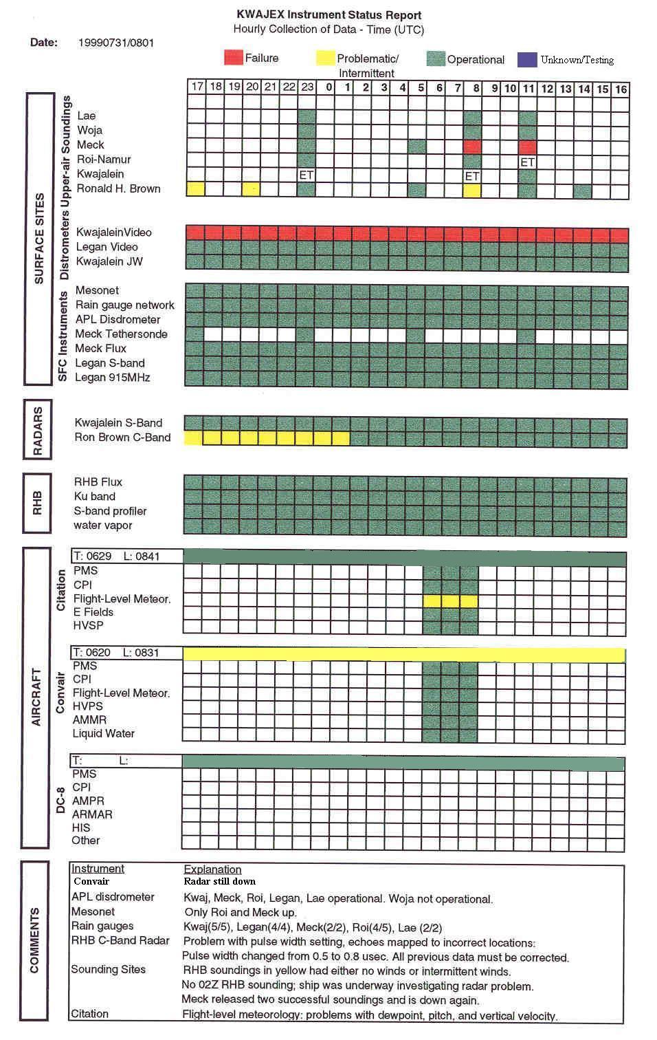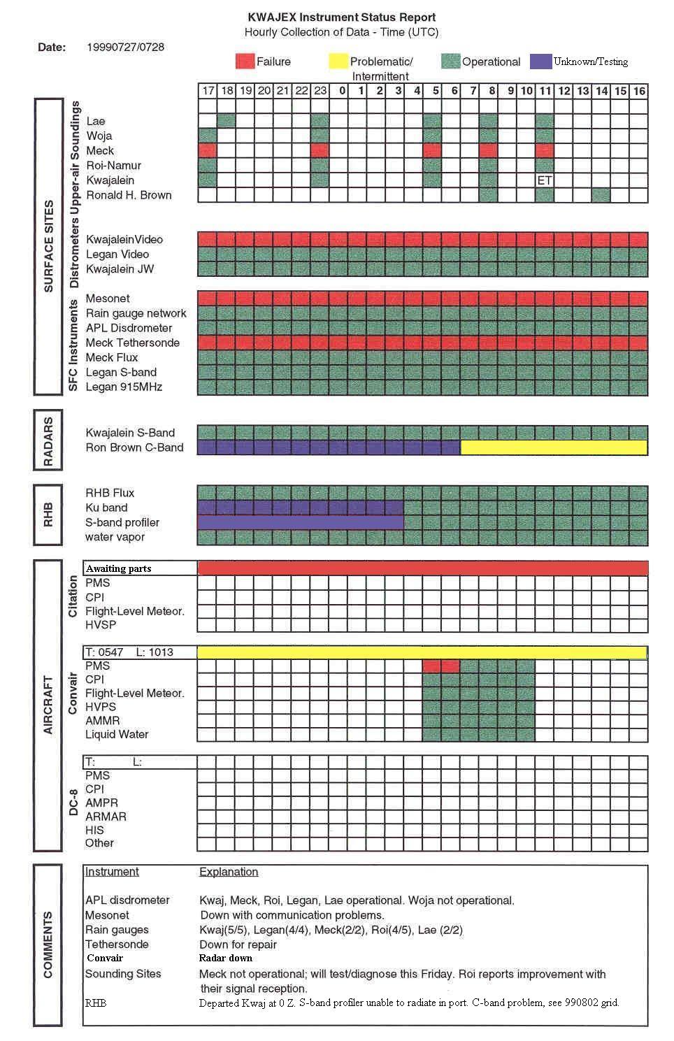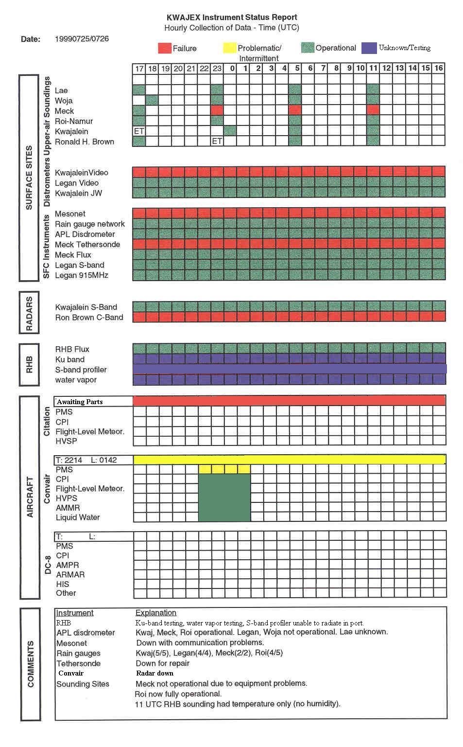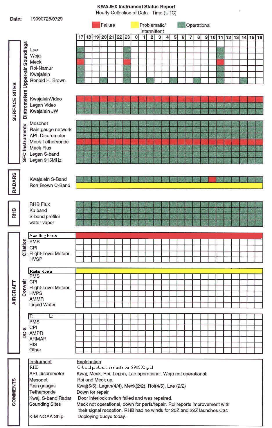 KWAJEX Daily Status CatalogThe following calendar contains links to a chart of instrument status (accessible by clicking on the date).