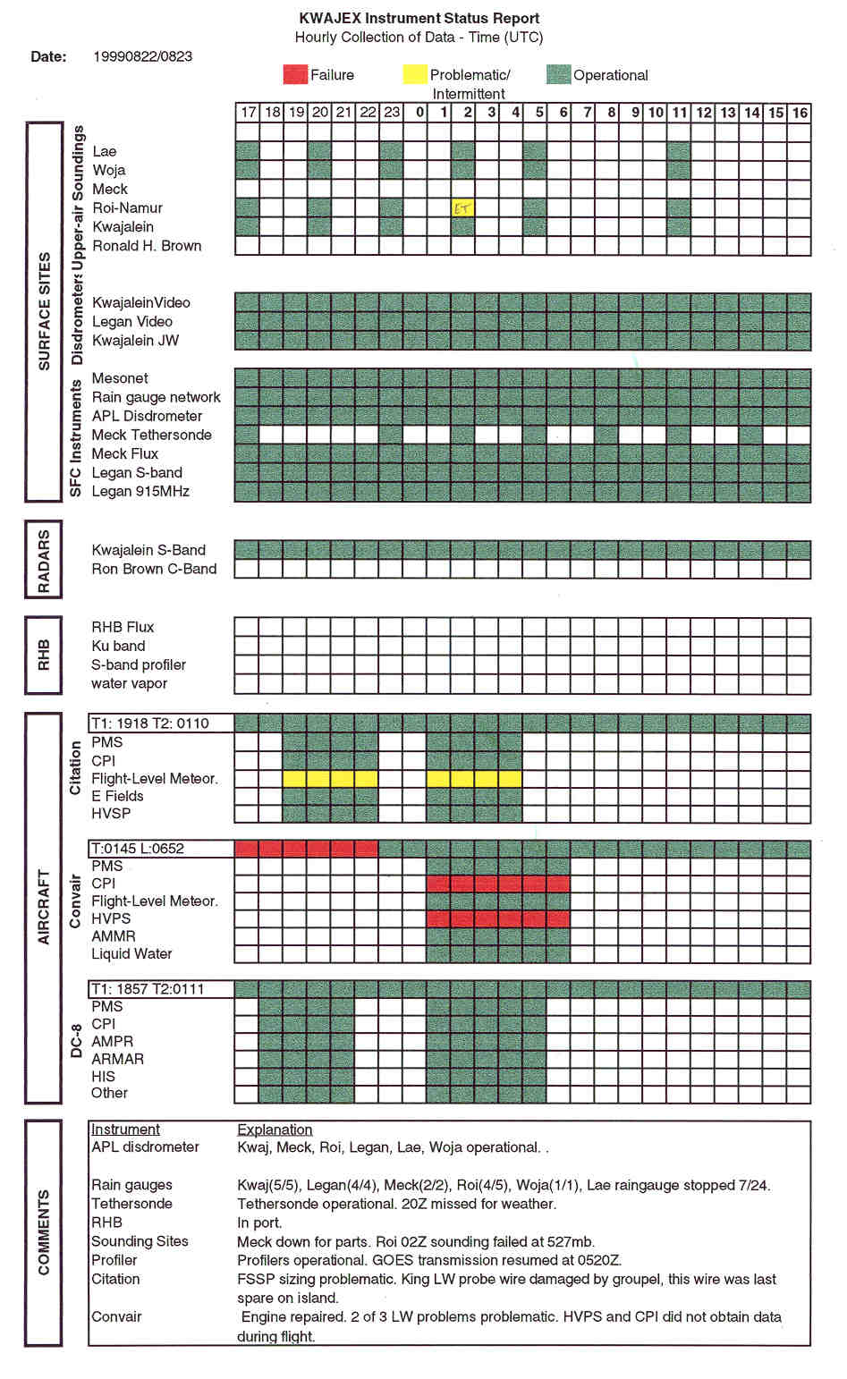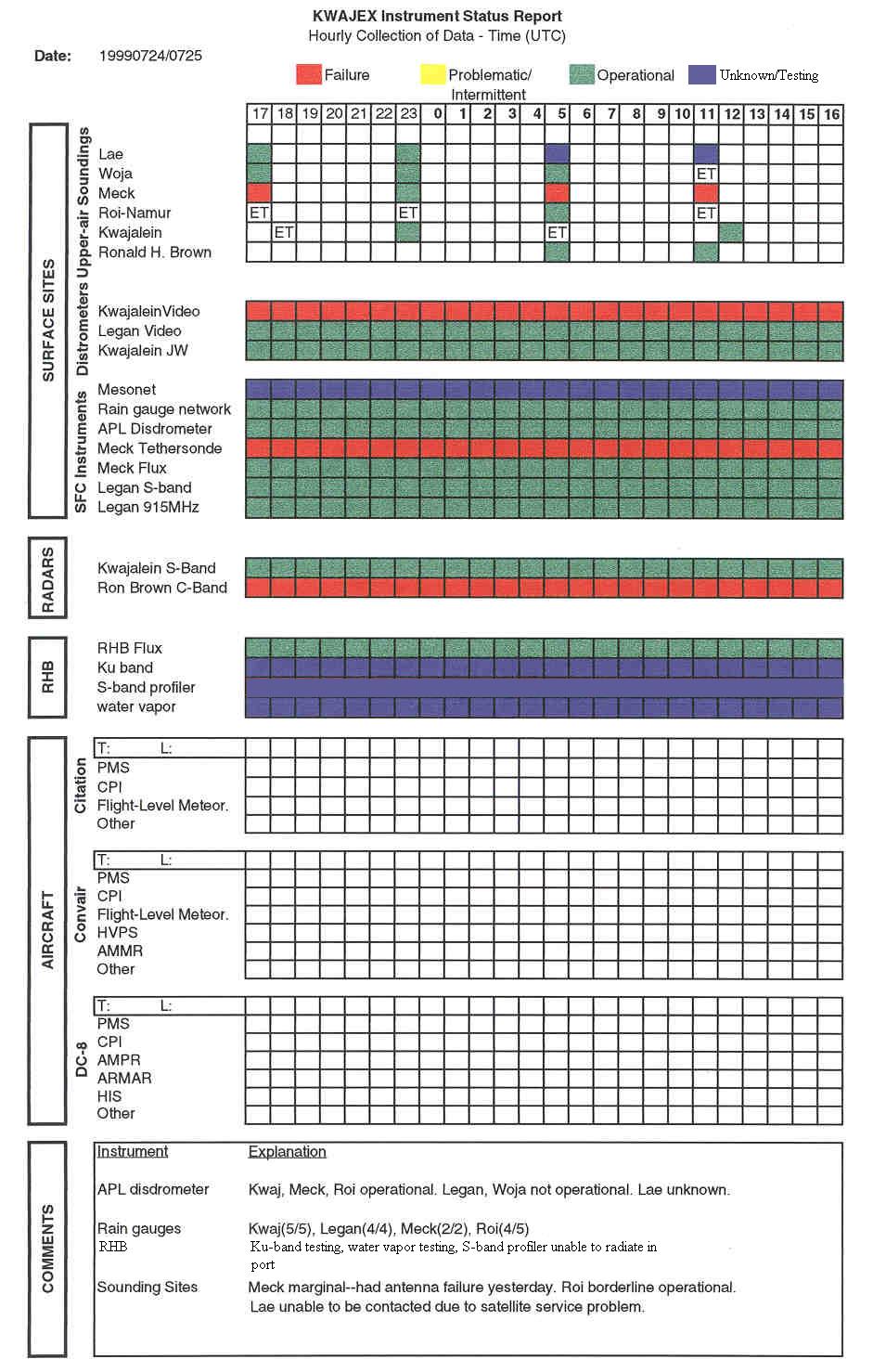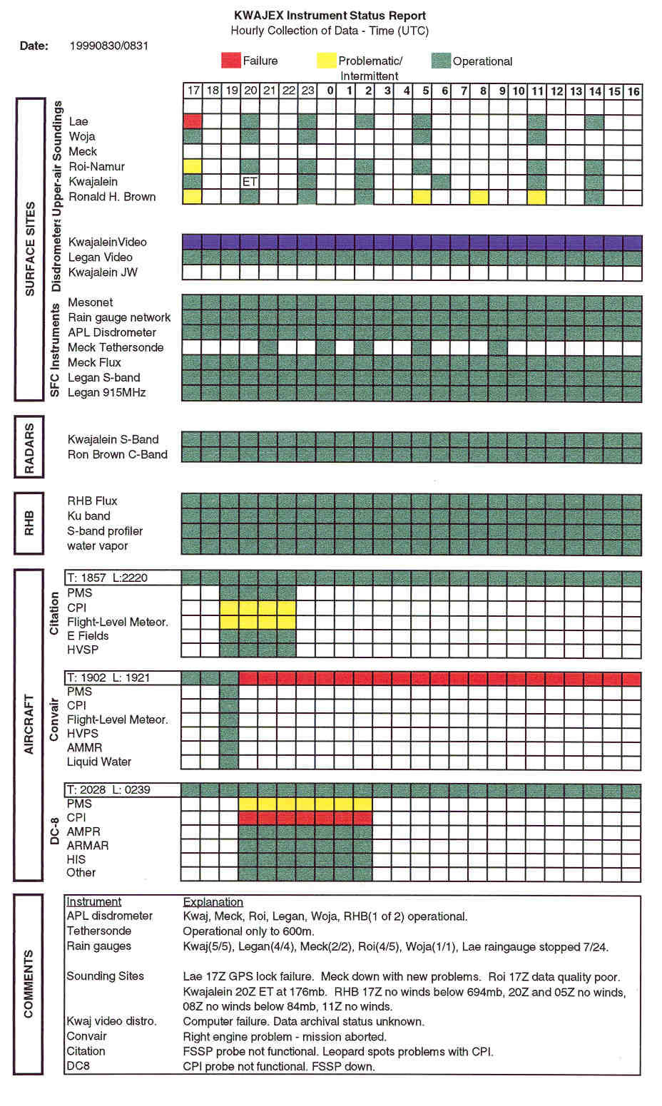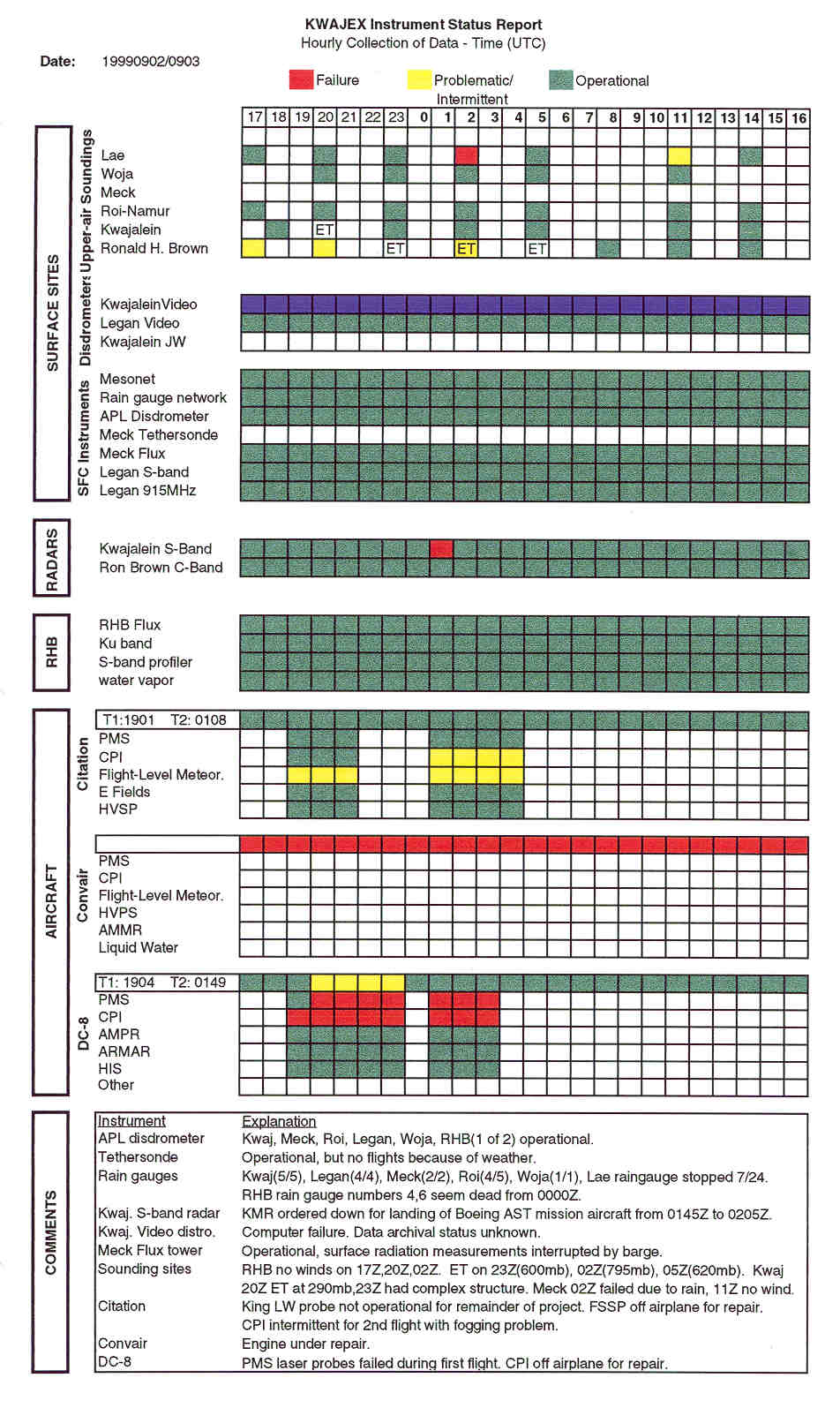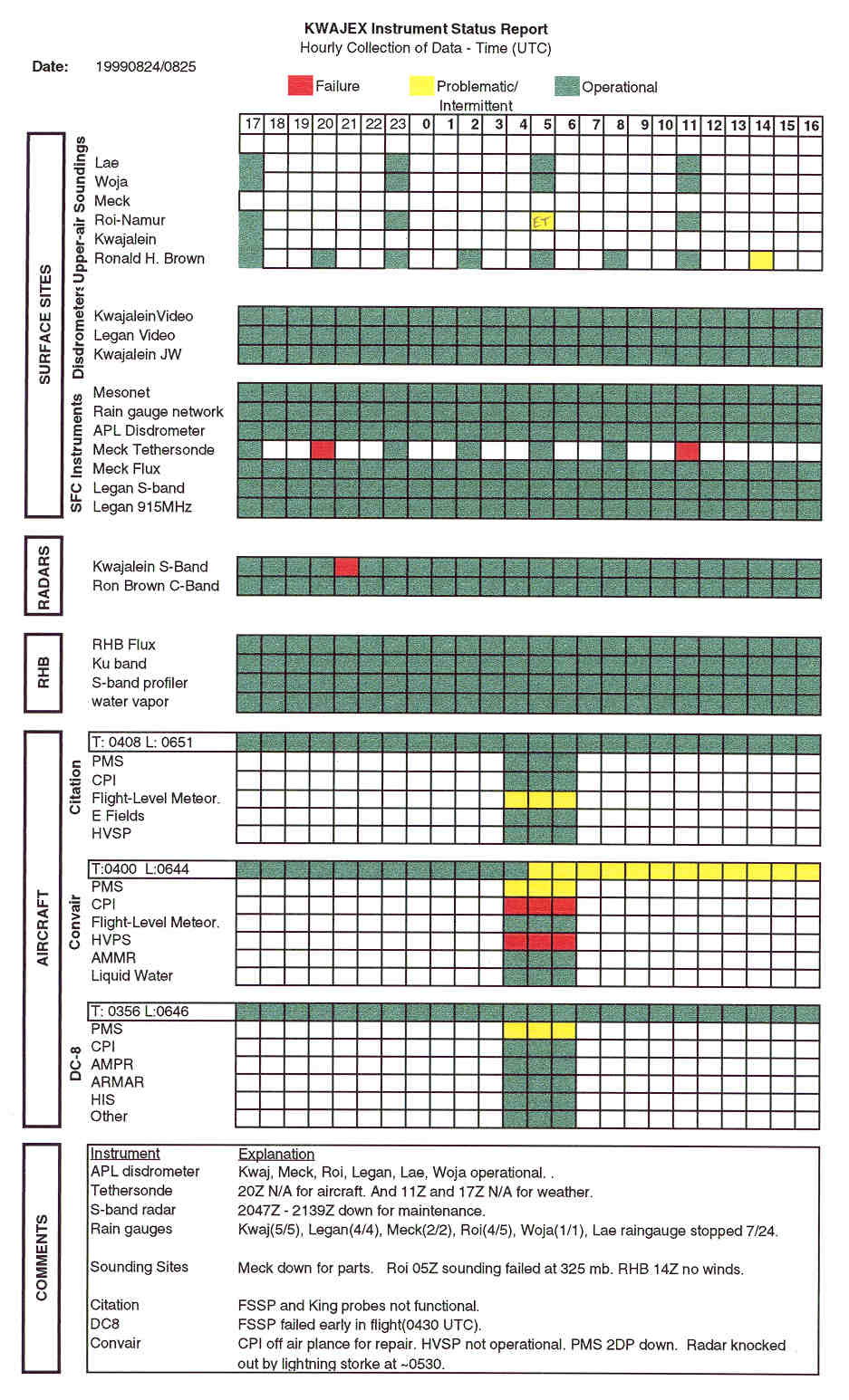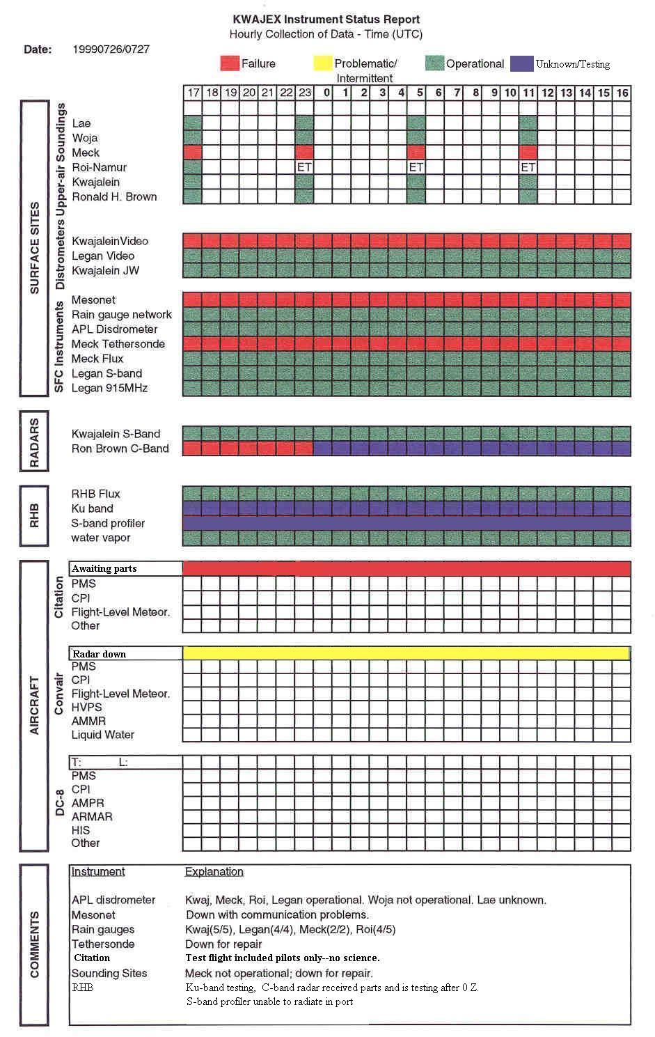KWAJEX Daily Status CatalogThe following calendar contains links to a chart of instrument status (accessible by clicking on the date).