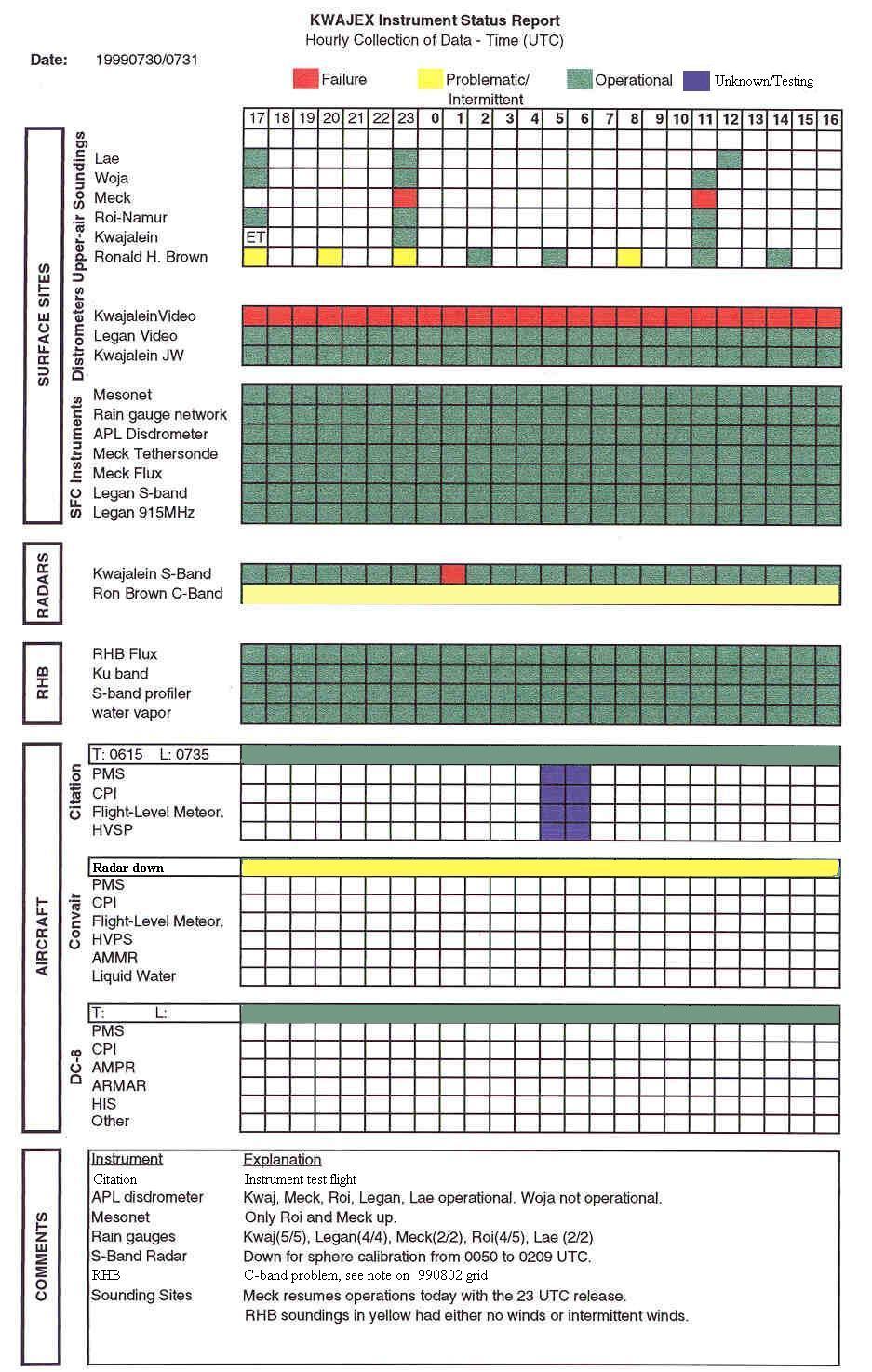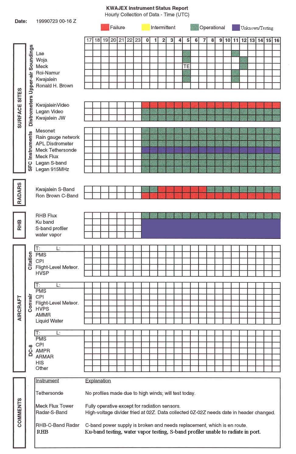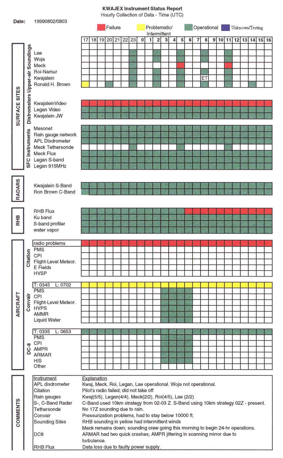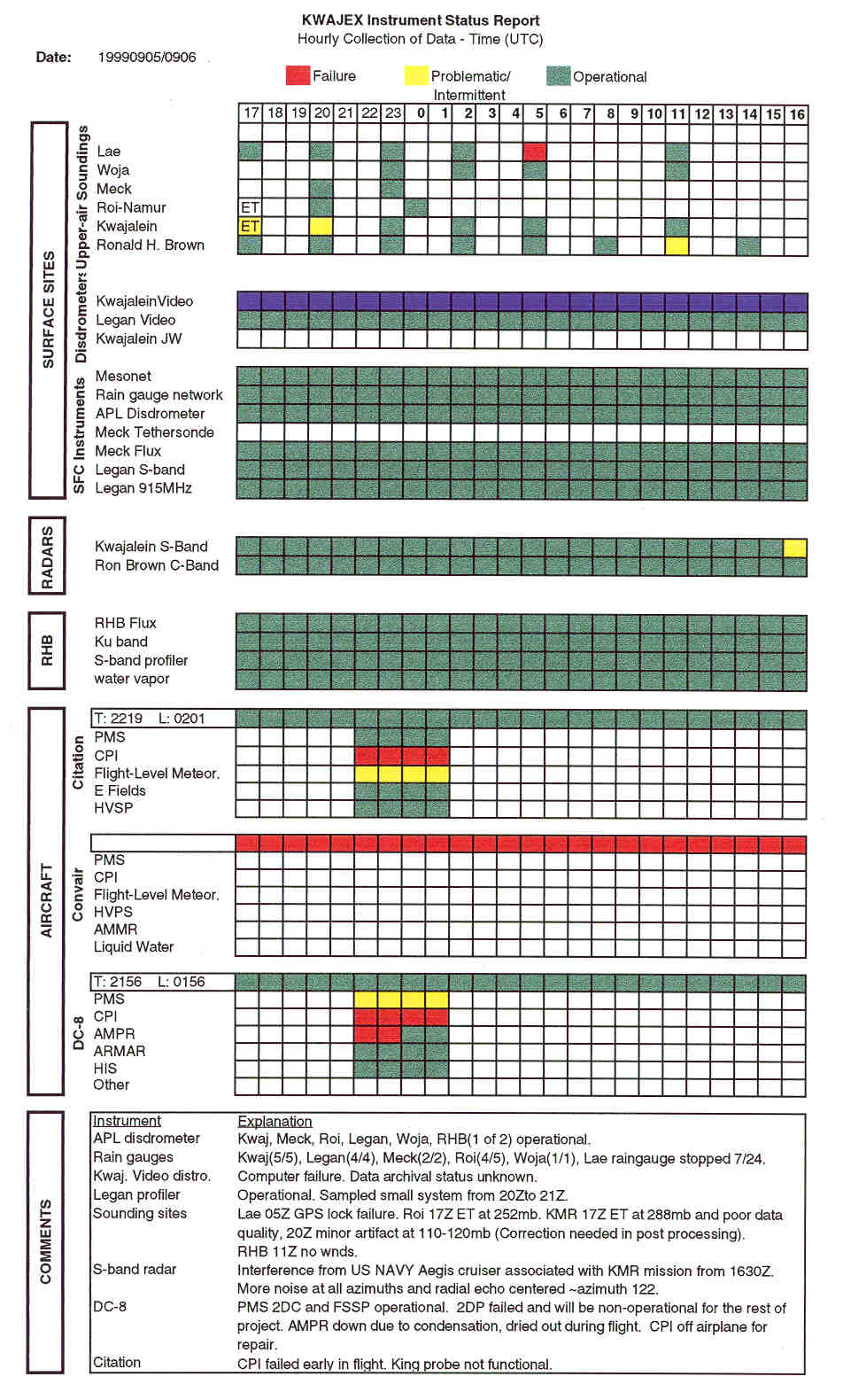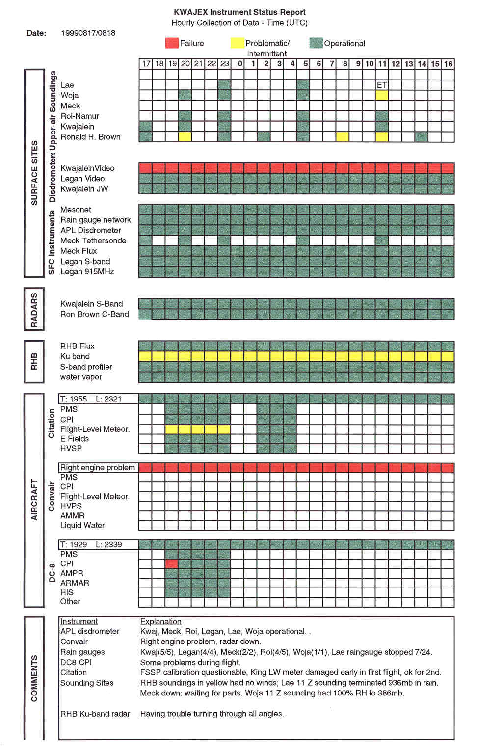 KWAJEX Daily Status CatalogThe following calendar contains links to a chart of instrument status (accessible by clicking on the date).