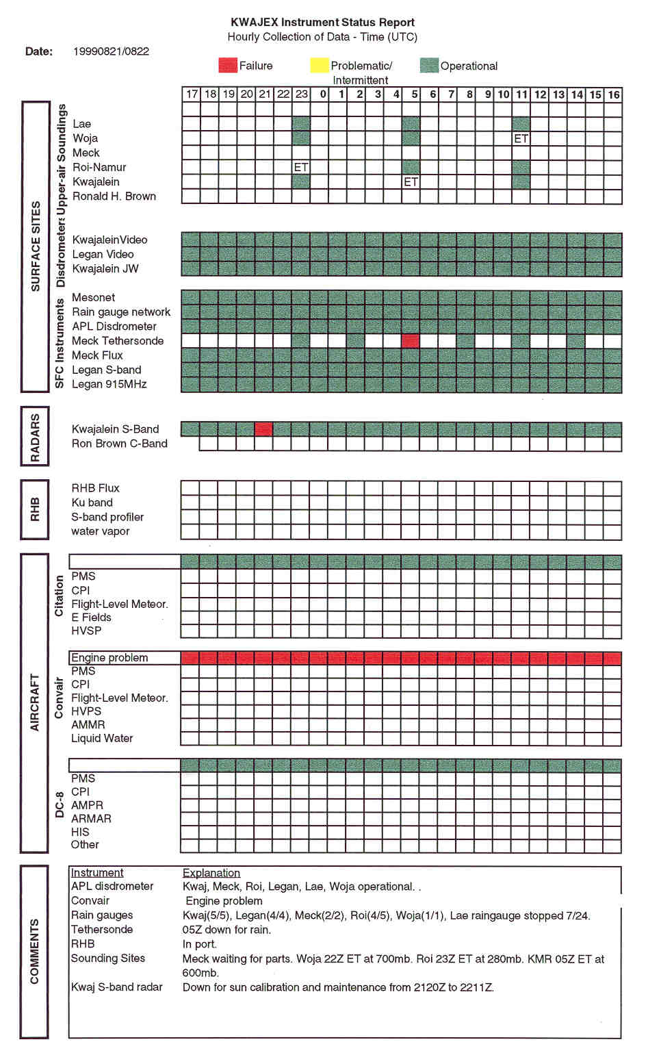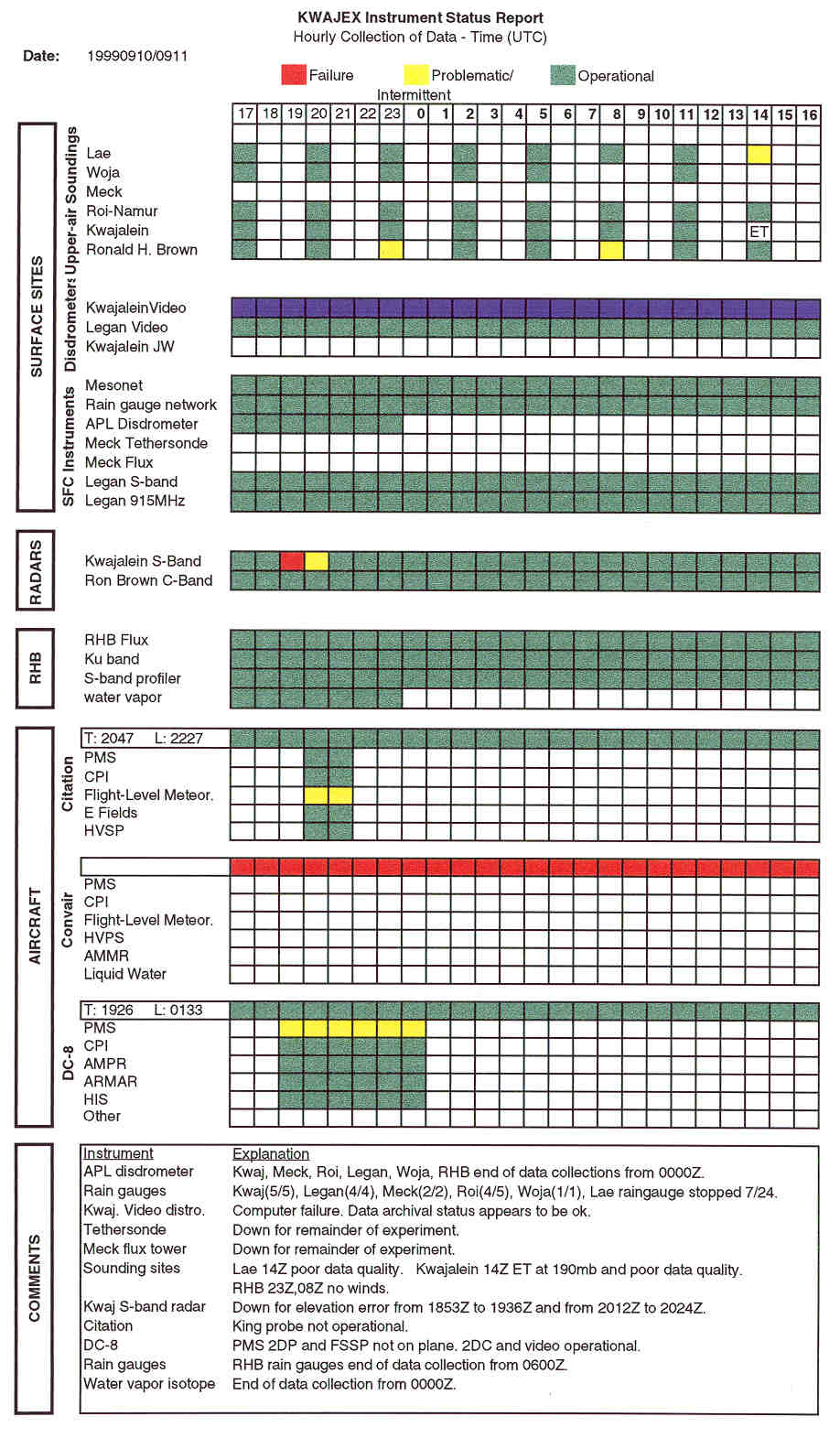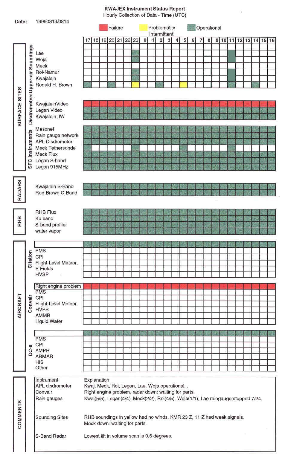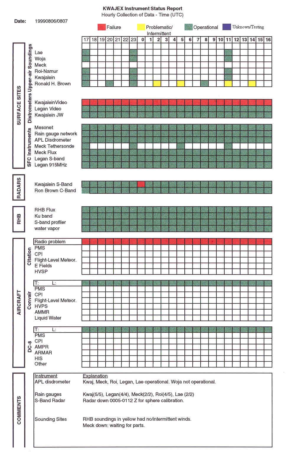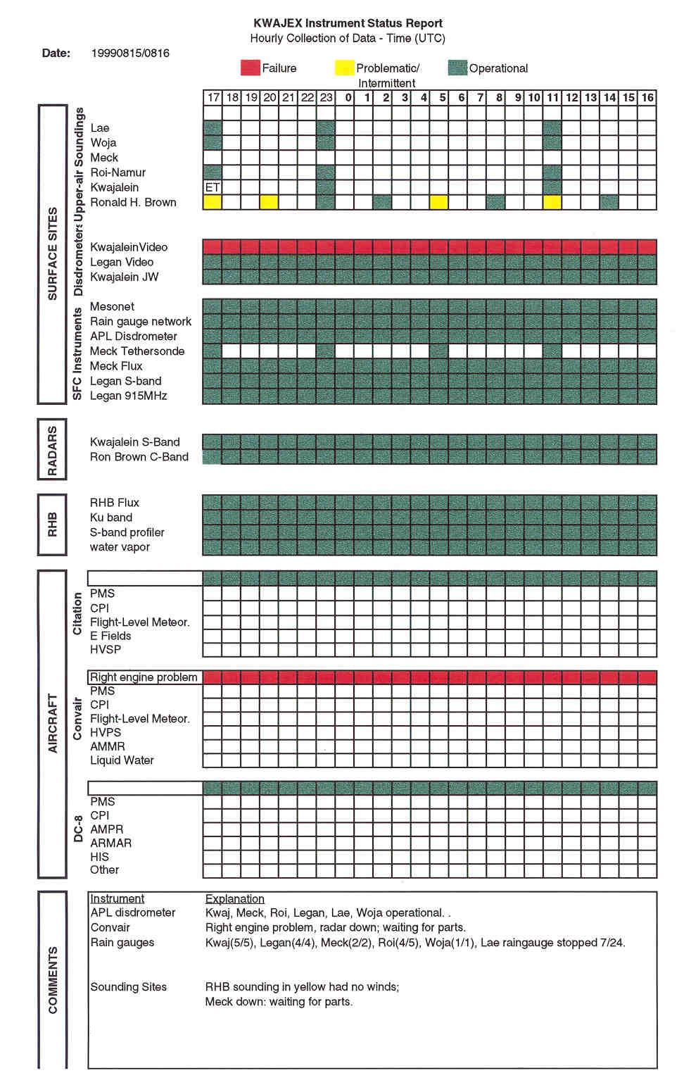 KWAJEX Daily Status CatalogThe following calendar contains links to a chart of instrument status (accessible by clicking on the date).