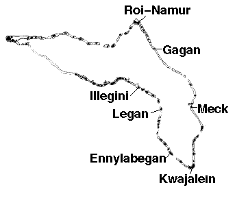 Kwalajein Island is only 1/2 mile wide and 2 1/2 miles long. Since no location on Kwajalein Island is more than 5 miles from the airfield, Kwajalein Island locations are not feasible. All KMR-controlled islands are accessible by marine transport can meet the tethered sonde power requirements. Active KMR islands on the east reef (east side of atoll) are the only potential sites meeting requirements for power and easterly exposure. These islands are Meck, Gagan and Roi-Namur.