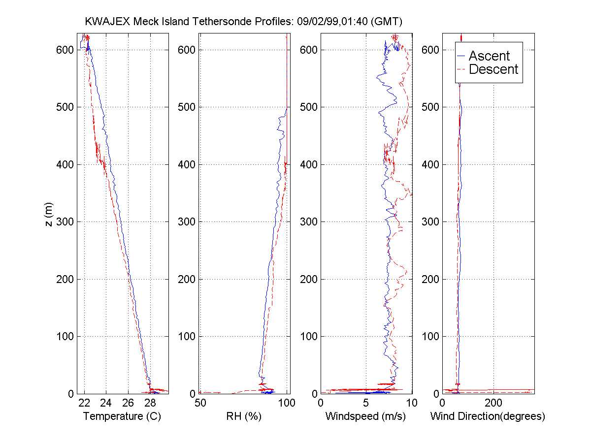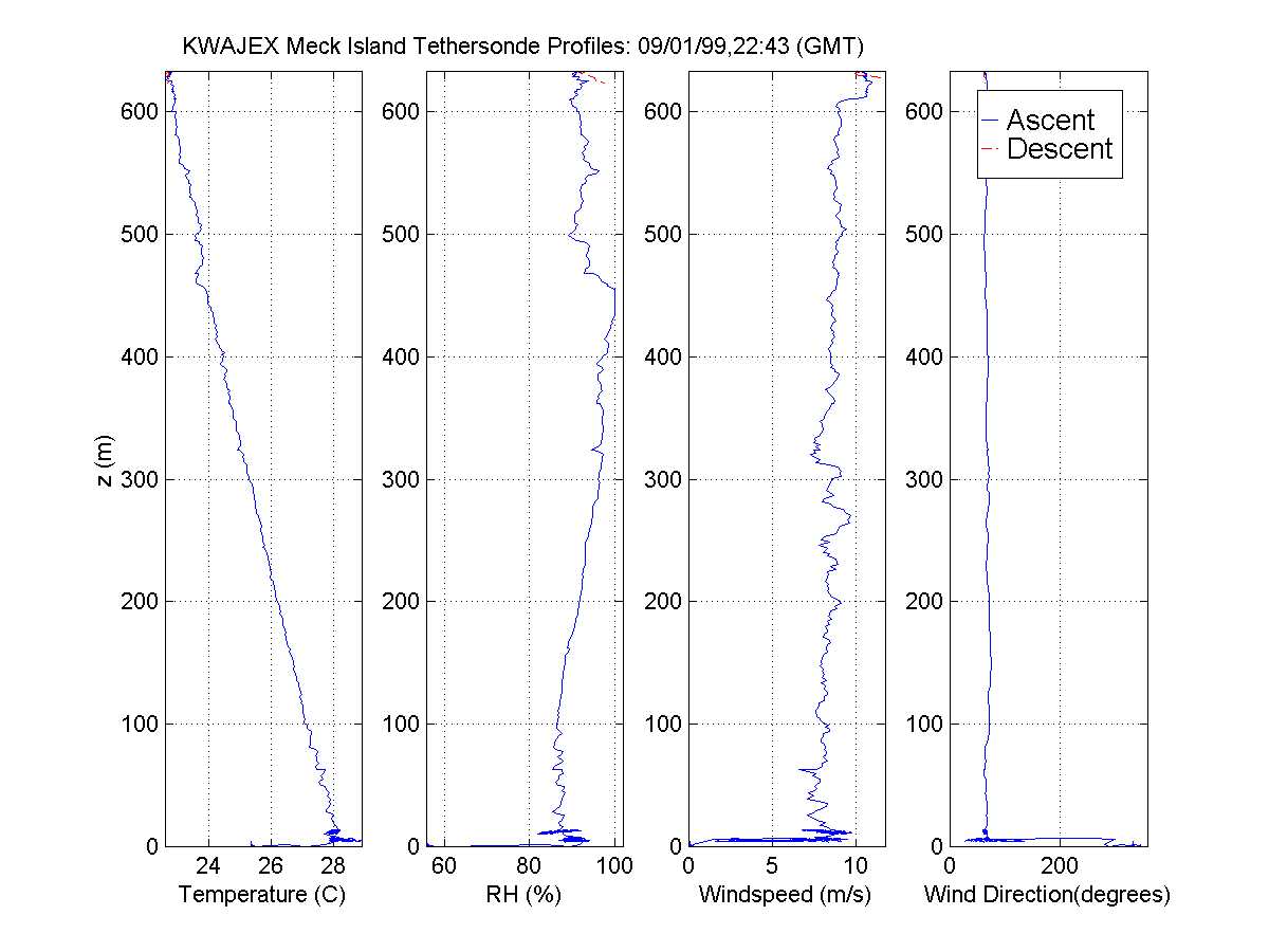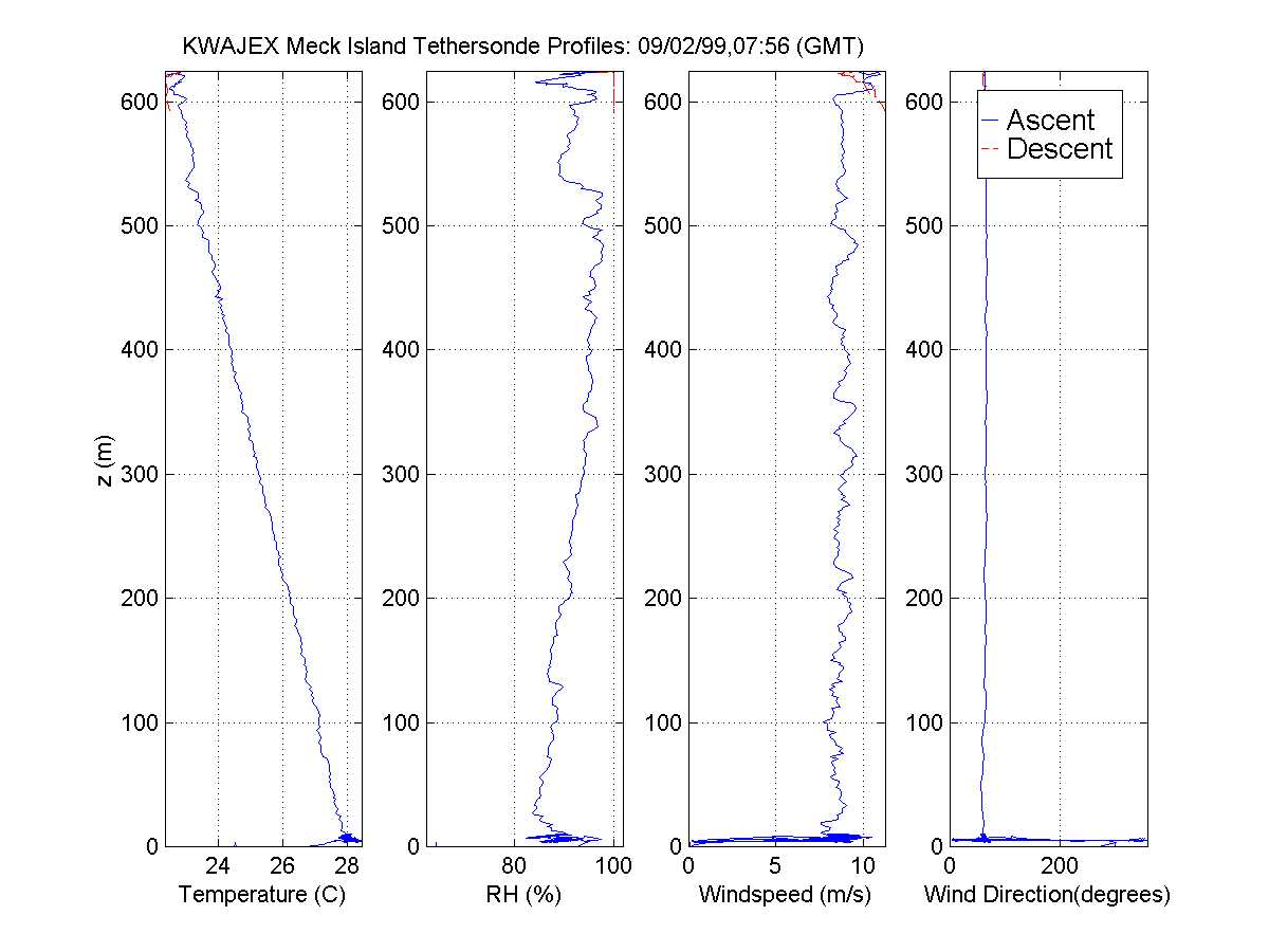 table displays data in a graphical format from the KWAJEX tethersonde