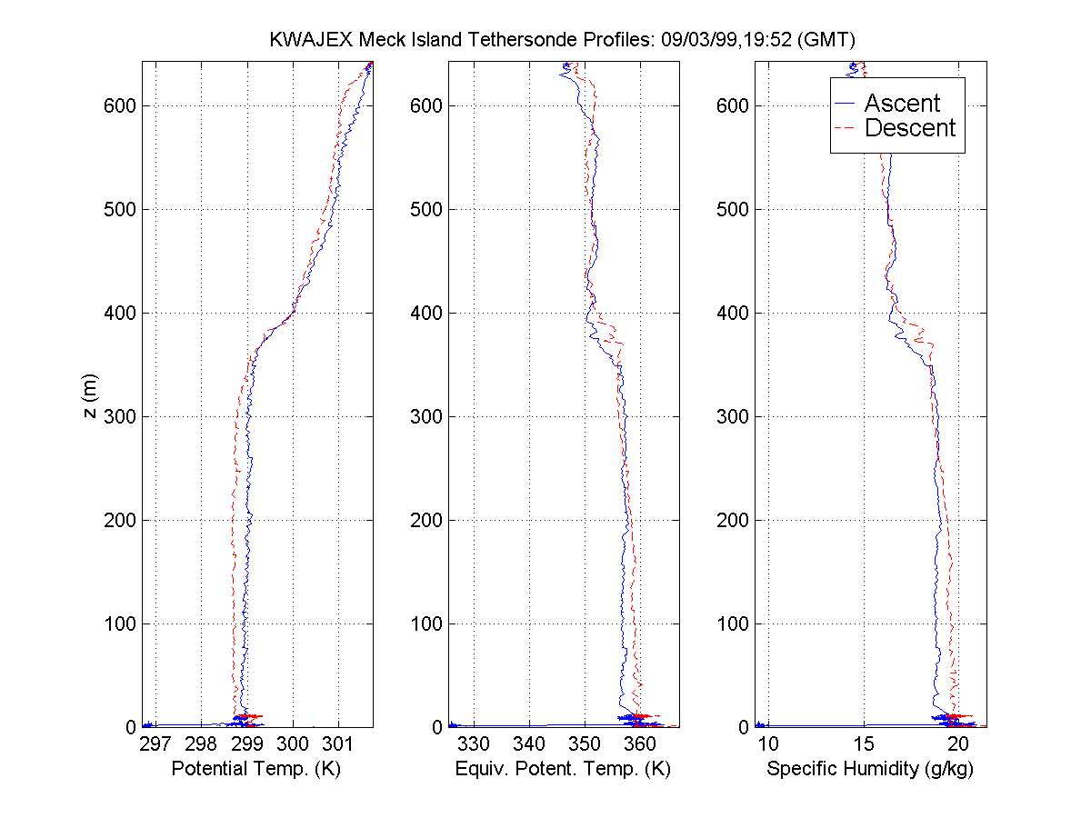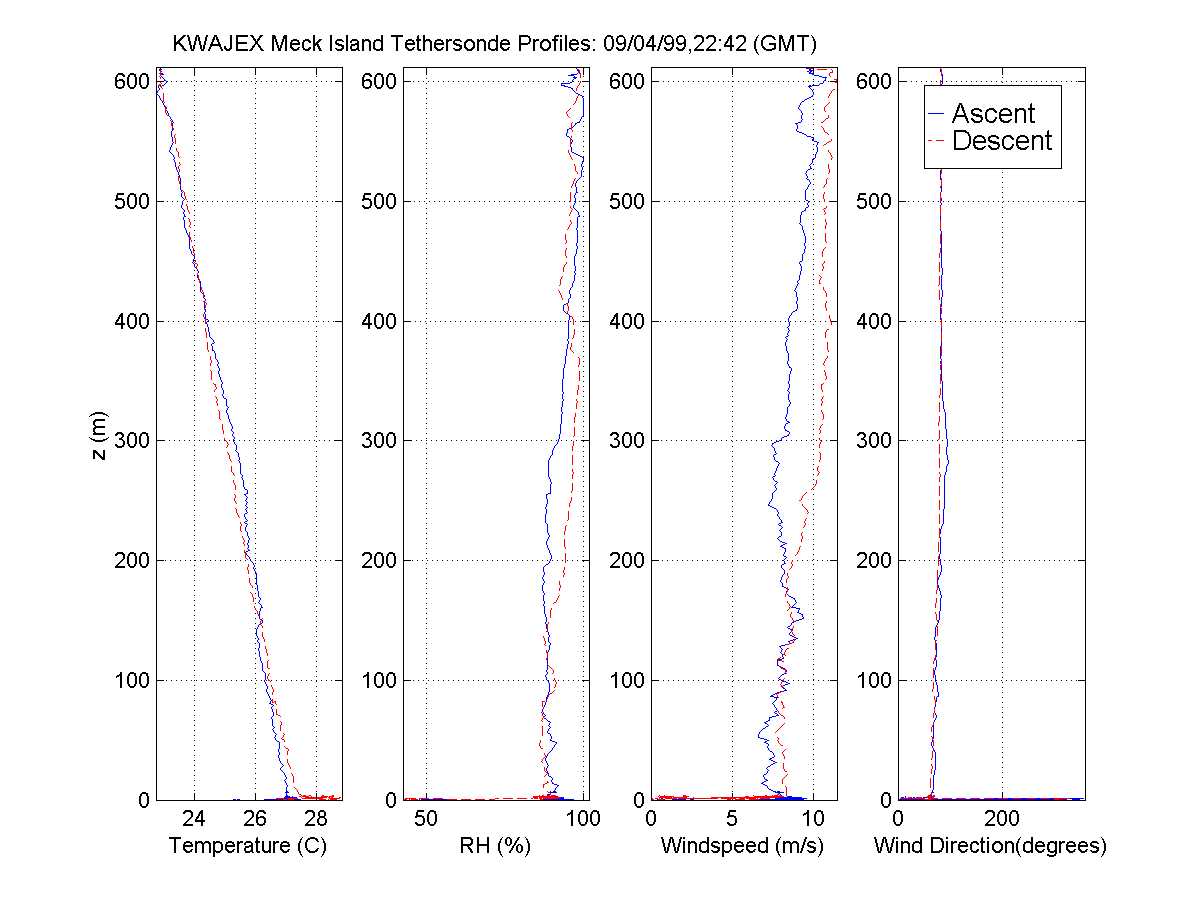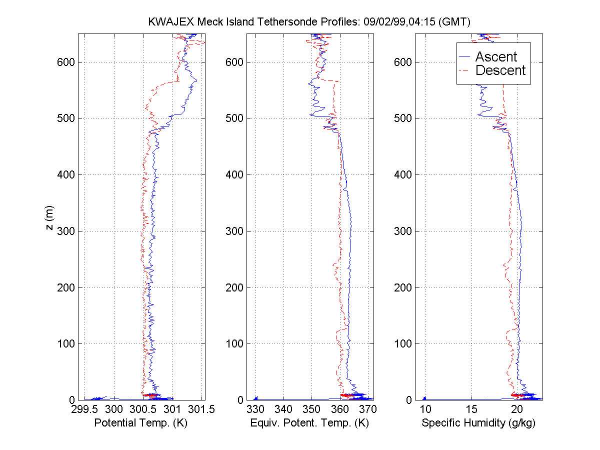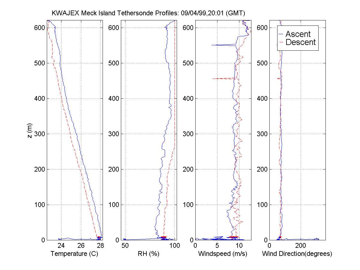 table displays data in a graphical format from the KWAJEX tethersonde