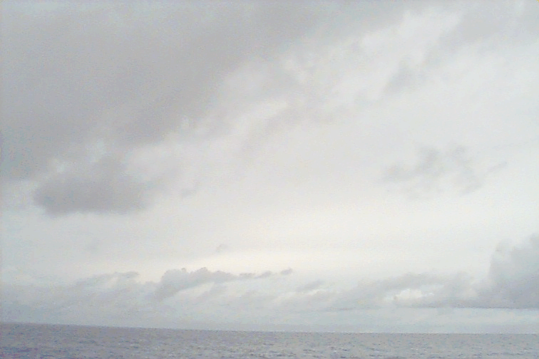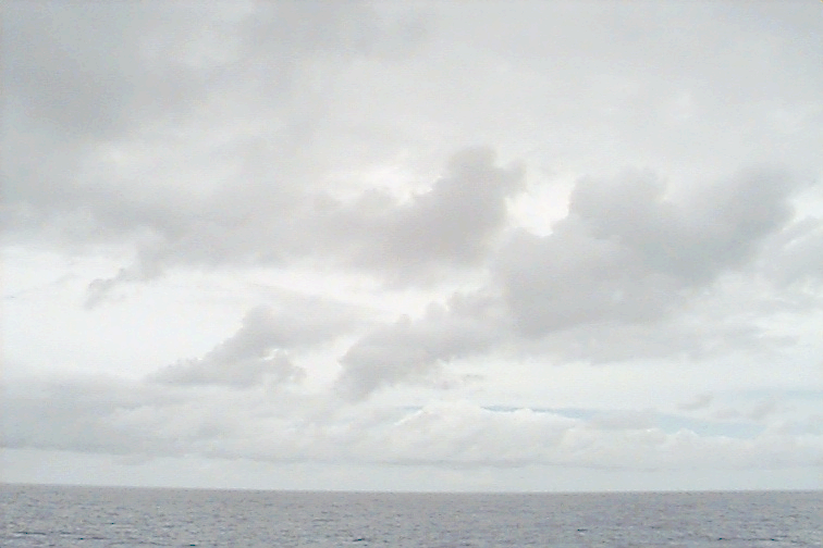 Cu (possibly Sc) overhead and on horizon with little vertical development except moderate towers to West and dark Cu to the East; Light layer of Ac to west, Transparent layer of Ci covering sky (except blue patch to NW)