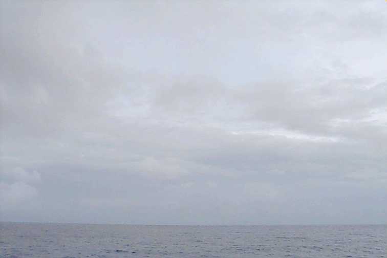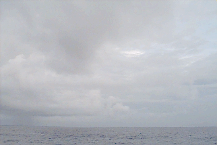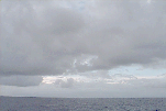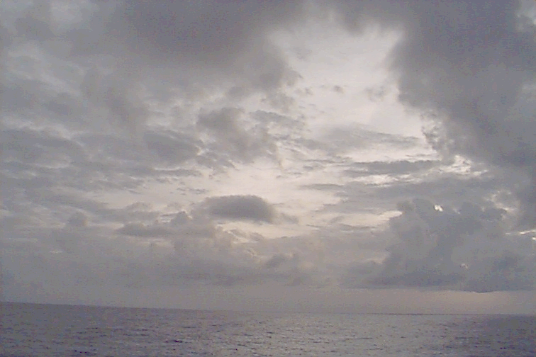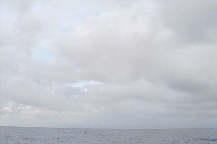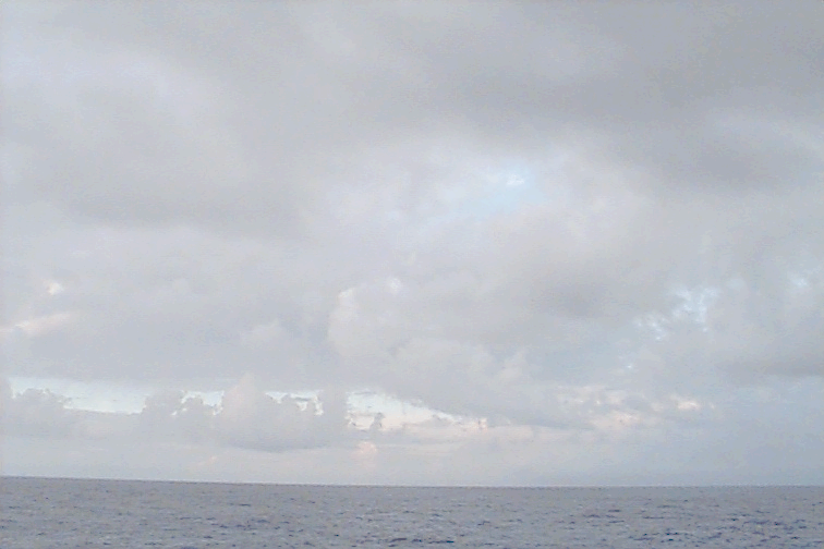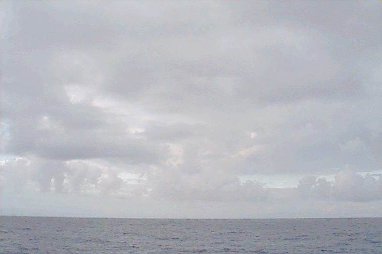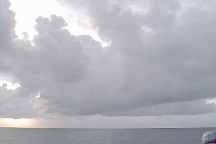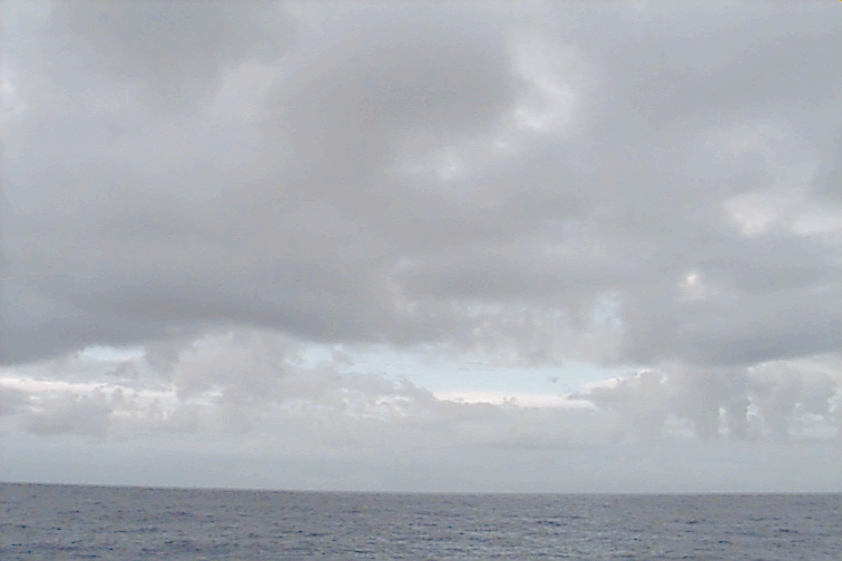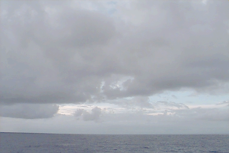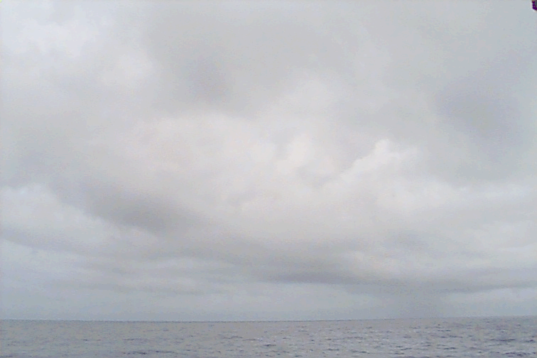 A shower aft, tall pendulous-based Cu all around. As aft, surrounding shower, skies are fairly dark. Some Ci and clear sky to starboard, but Cs overcast overhead.