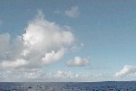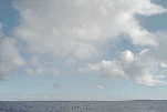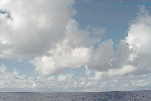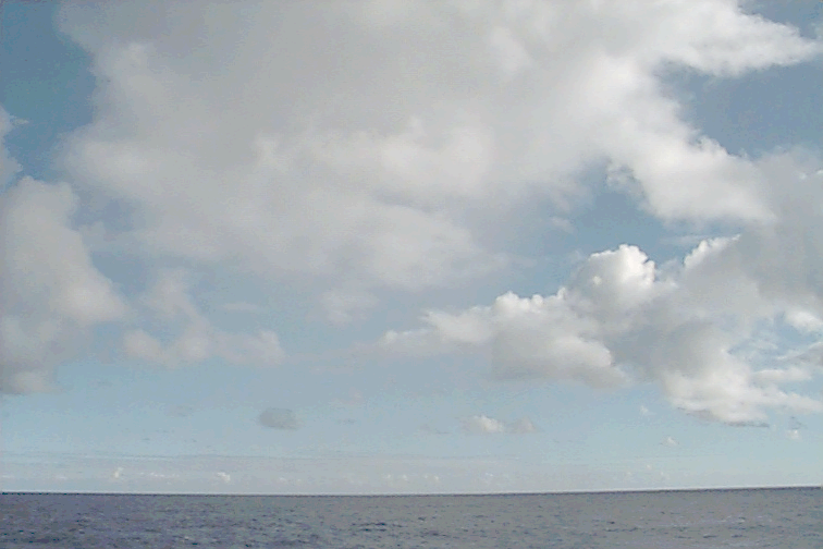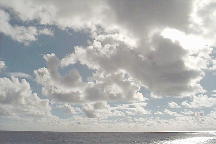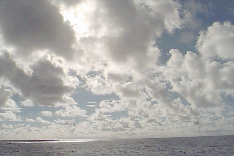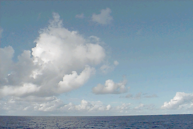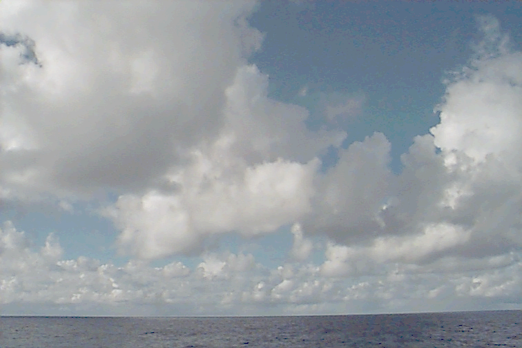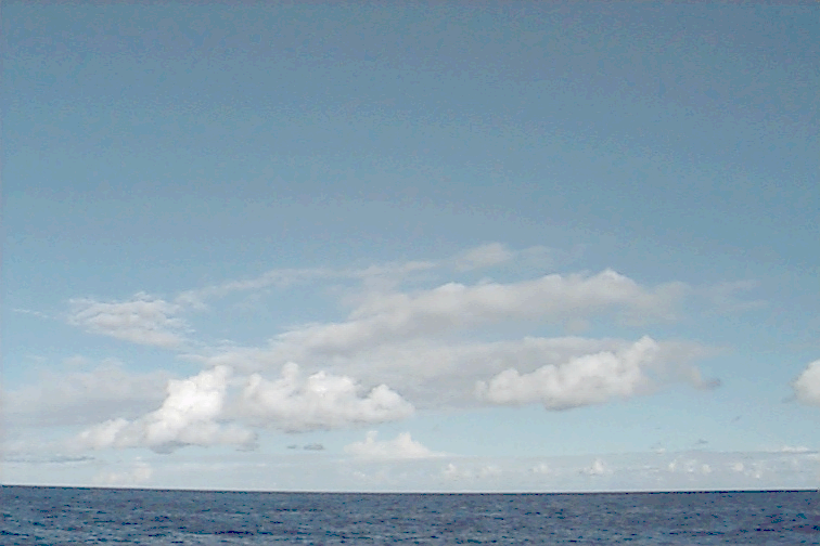 Cu spreading out. Only a few have moderate development. Some showers, distant As, no high clouds.