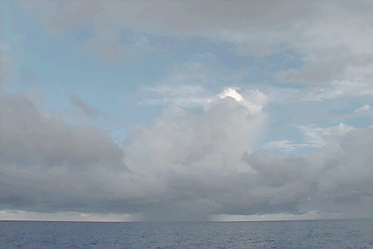 Raining Cu congestus in all directions. Blue sky in between. Midlevel cloud is forming off of congestus as As and Ac. Few high clouds, mainly in the form of Cs.