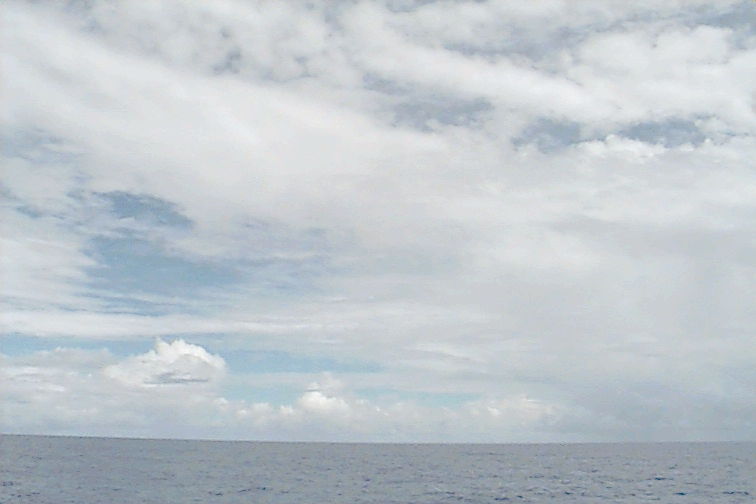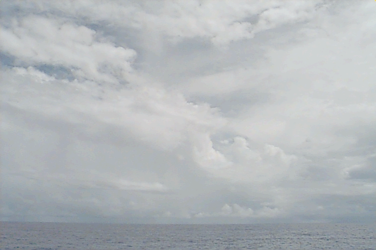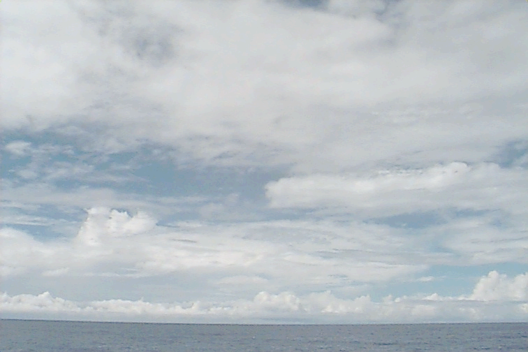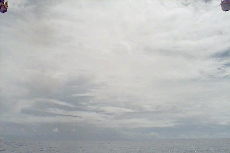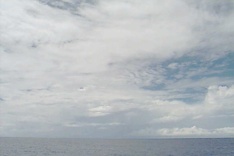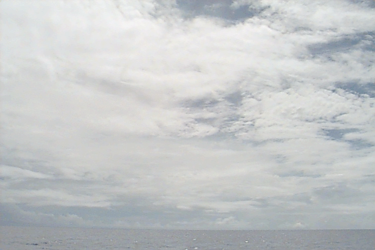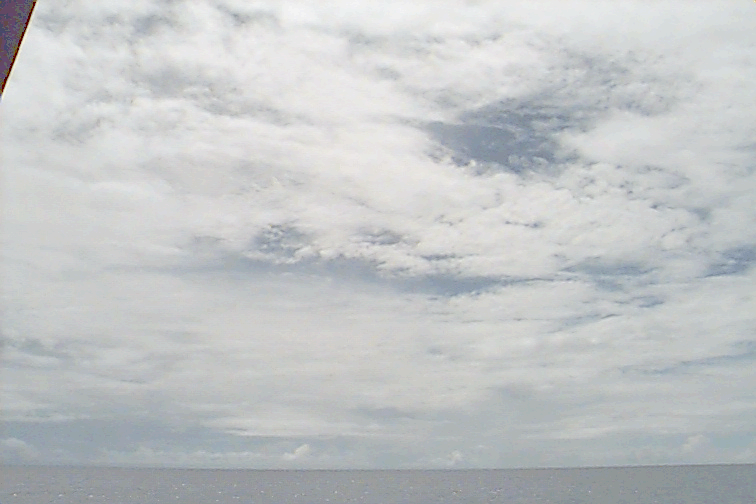 Cu congestus all around on the horizon. One or two may be Cb, but they are partially obscured by low level Cs and midlevel Ac. Most of the sky above is covered by Ac. THere is some dense Ci visible. Some above, some near the huge Cu clouds. Possible rain showers to the N.
