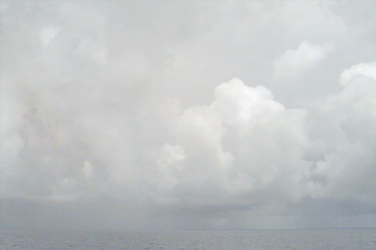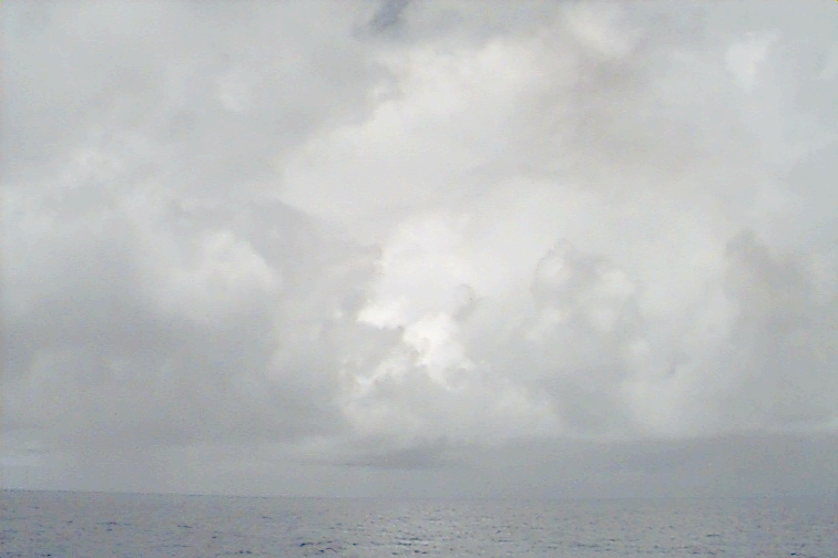 Sc formed by moderate Cu, many precipitating, covering most of the sky. Mid, upper levels essentially invisible.