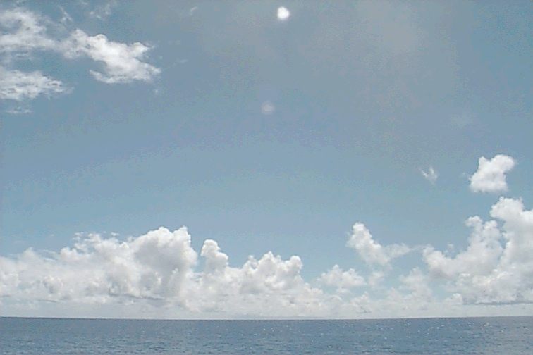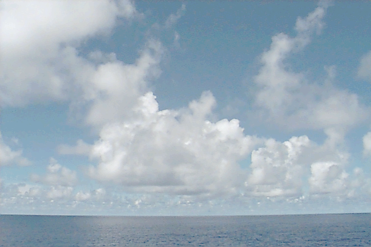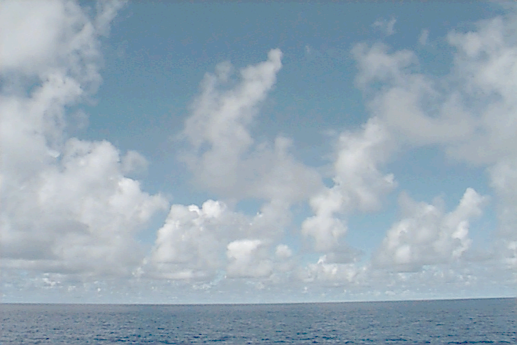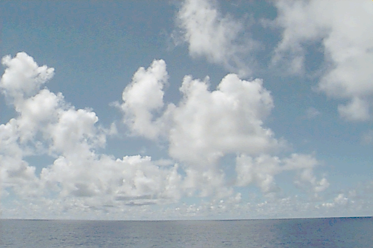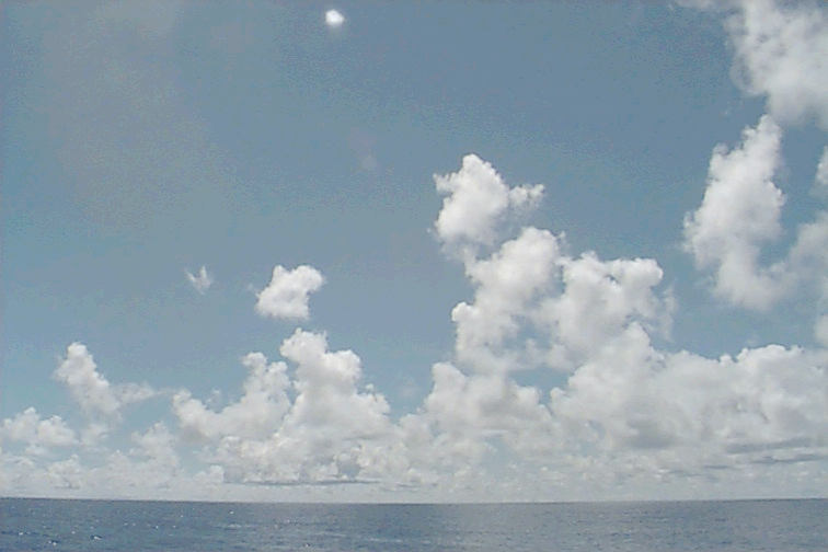 Cu humilus still major cloud group. A few local Cu have grown into towers and are giving light precip. Many Cu congestus are now visible to the S.