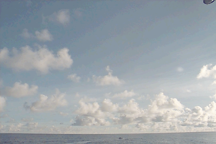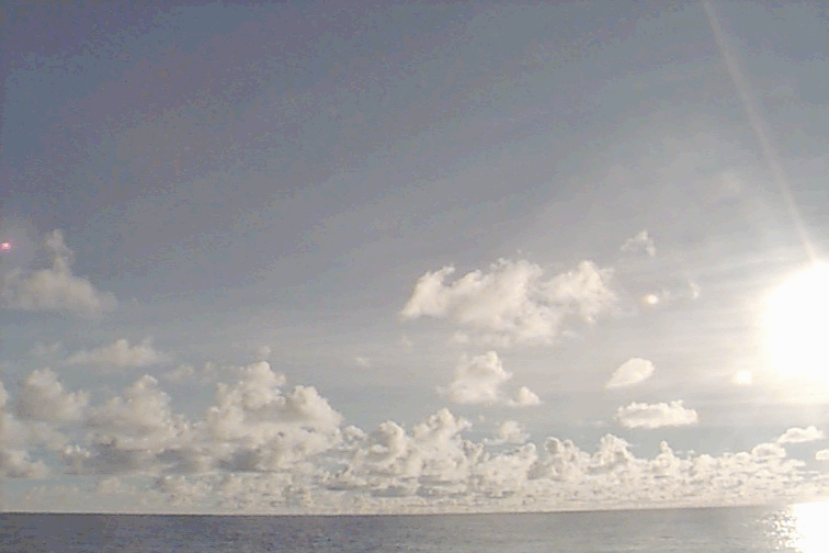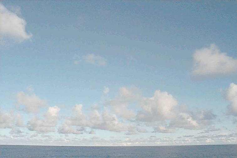 In the immediate vicinity of the ship, the bases of some of the Cu mediocris are darkening. To W and N clouds have more verical development.