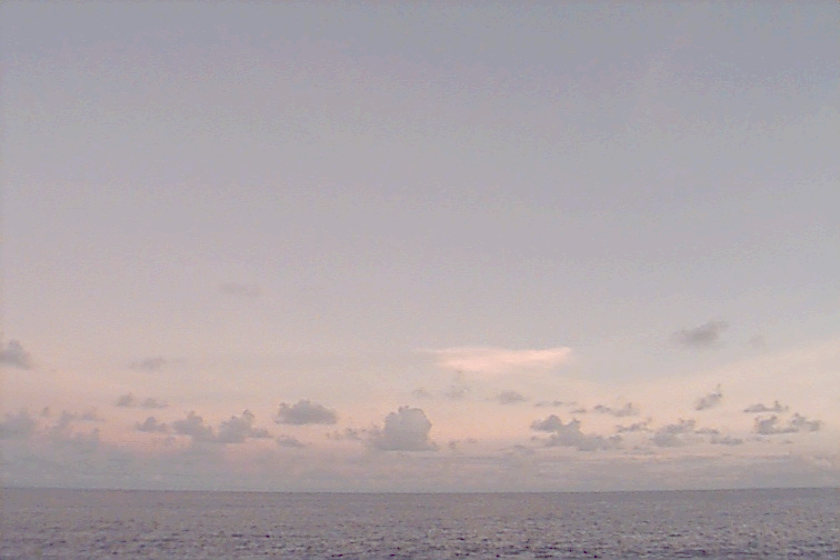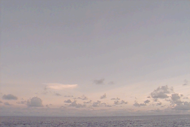 Special sunset observation: Anti-crepuscular rays reveal subvisible Ci. Some developed Cu to W, bases below horizon. Otherwise, mainly Cu humilus. Very thin Cs layer covering most of sky.