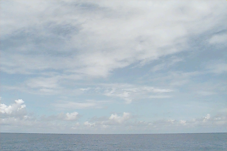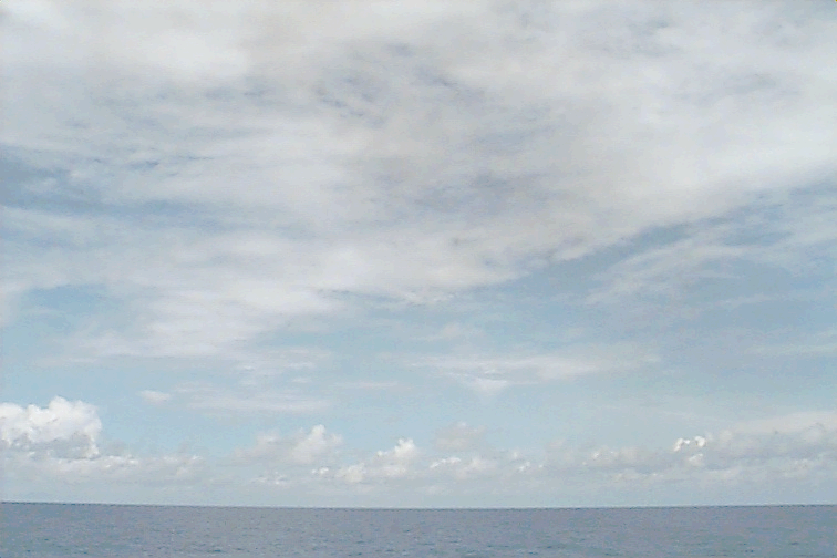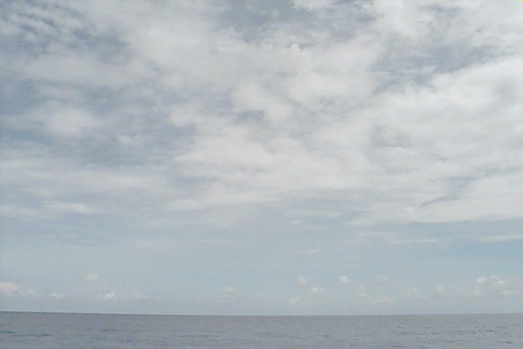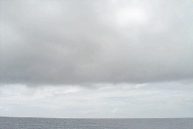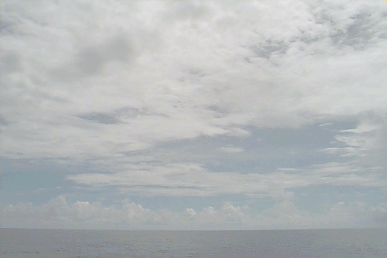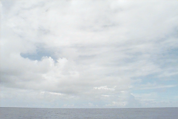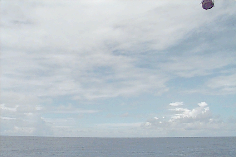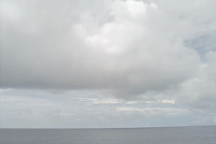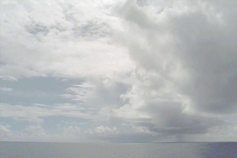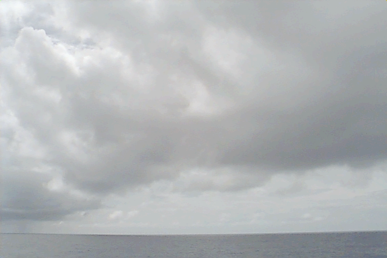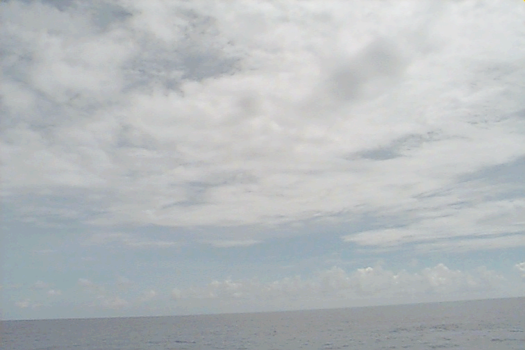 Vigorous growth along a line running E from ship with tallest precipitating towers furthest E. Serveral other rapidly growing cells in all directions. Sheared (towards S) anvil W. Plenty of Ac spilling off convection. Cs covering sky to SE.