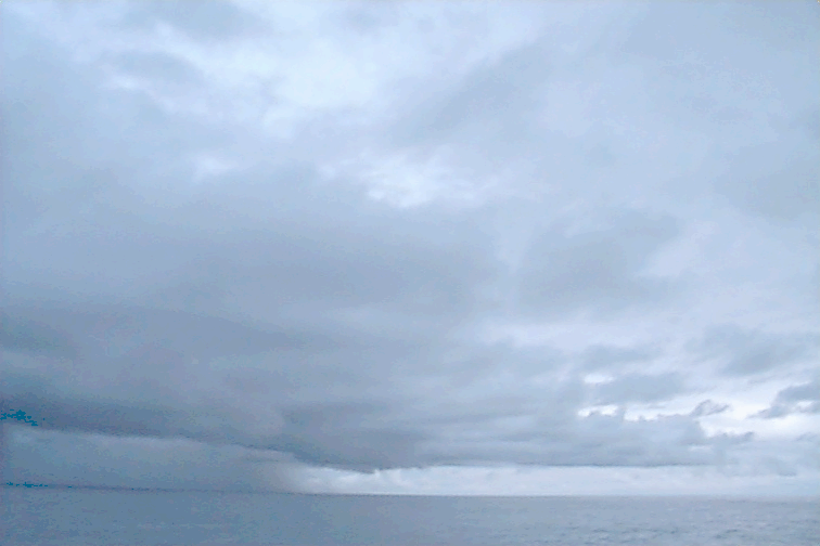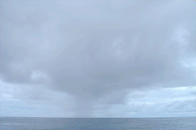 Towering Cu with dark base. Roll cloud and rain. There are two cells to the north that seem to merge as one but one of the cells is behind the other.