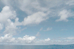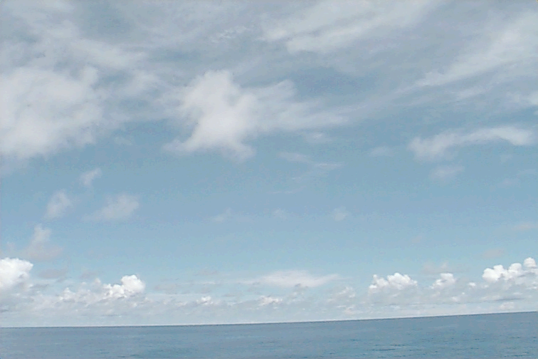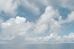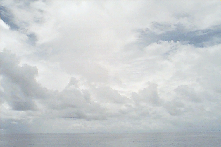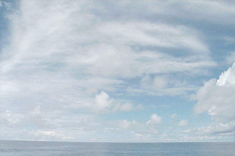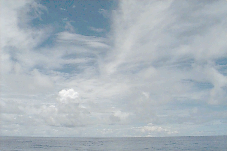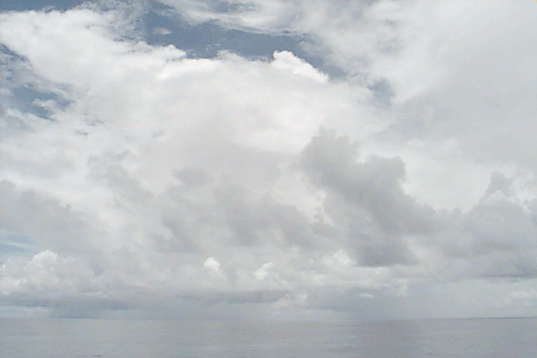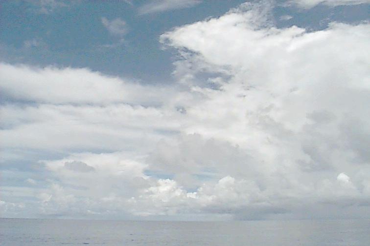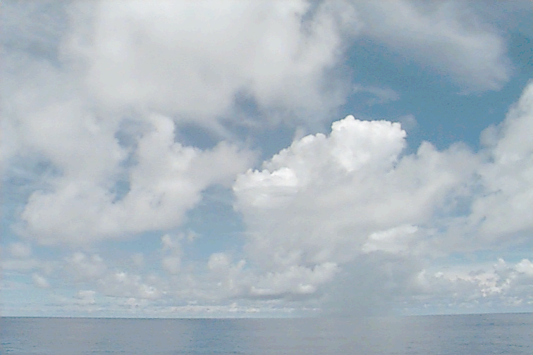 Small, isolated Cu raining just off port stern, some large Cu congestus to SE; large variety of all cloud types
