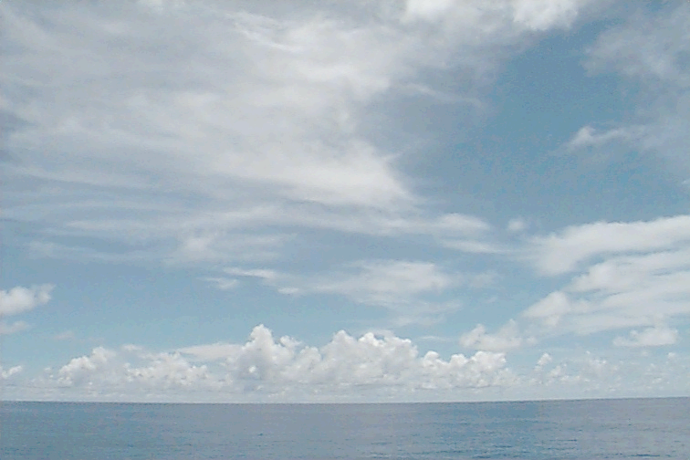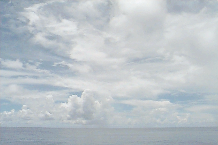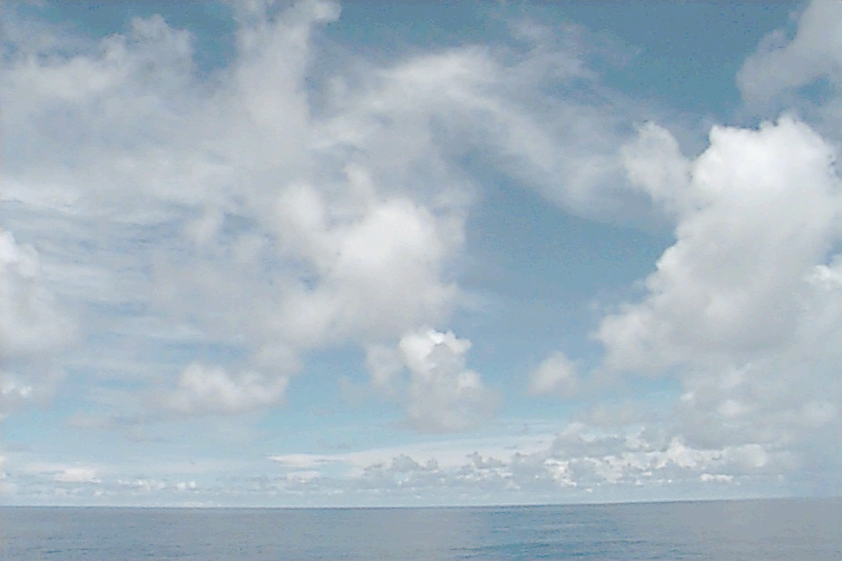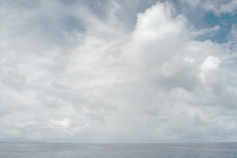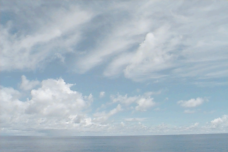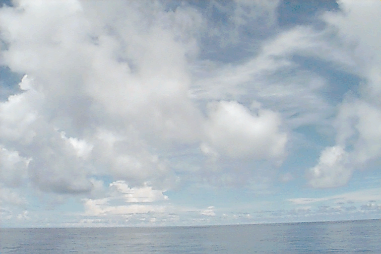 Huge Cb to East, proliferation of Cu in vicinity of ship, well-developed ("anvils galore"); Lens clouds associated with taller Cb