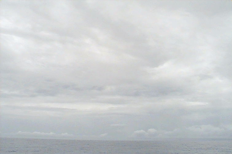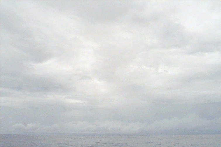 Dark cloud masses to fore and aft, Cu to the SW, small raining cell to NW, St with breaks in places; As, Ac