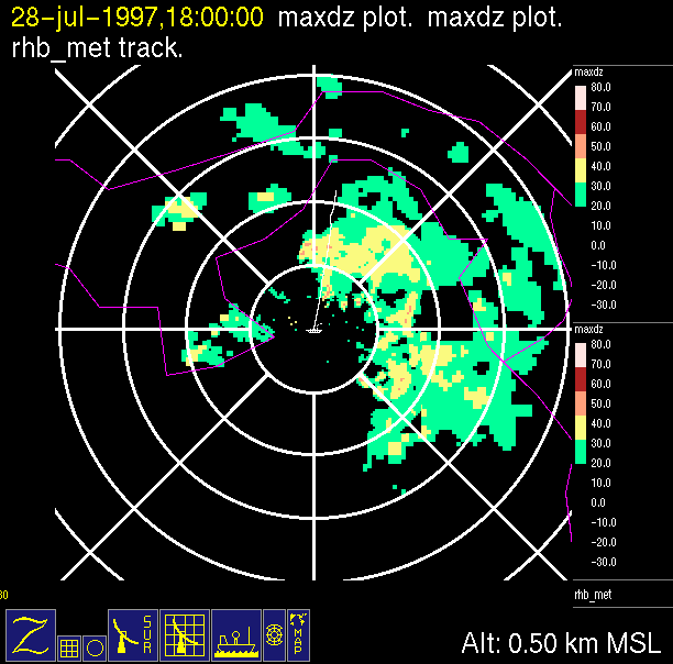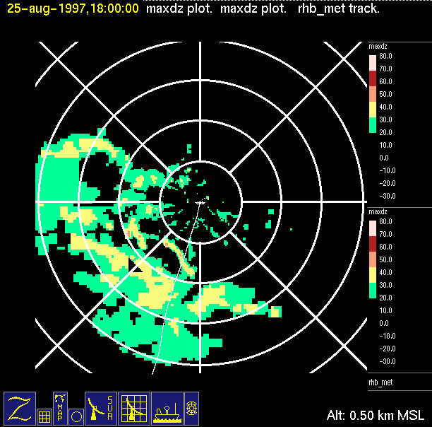 -Vertical cross-section of reflectivity (top right) showing vertical