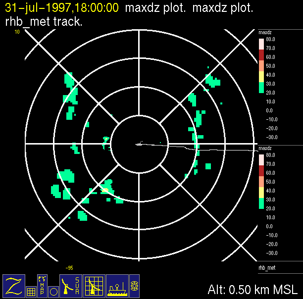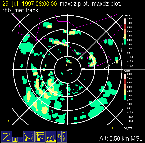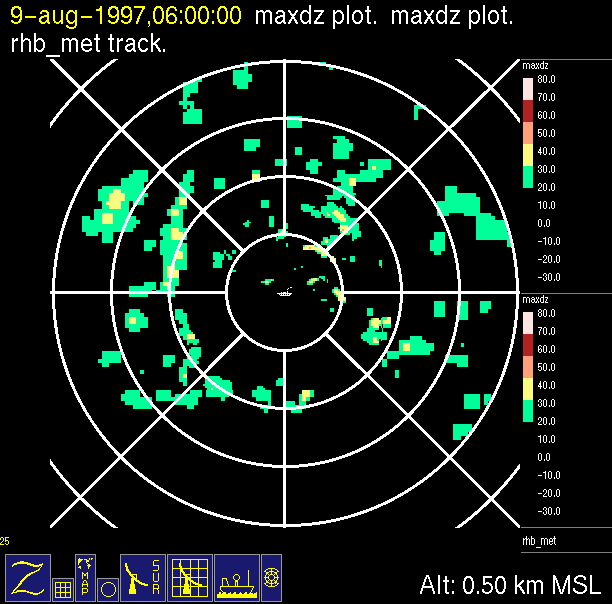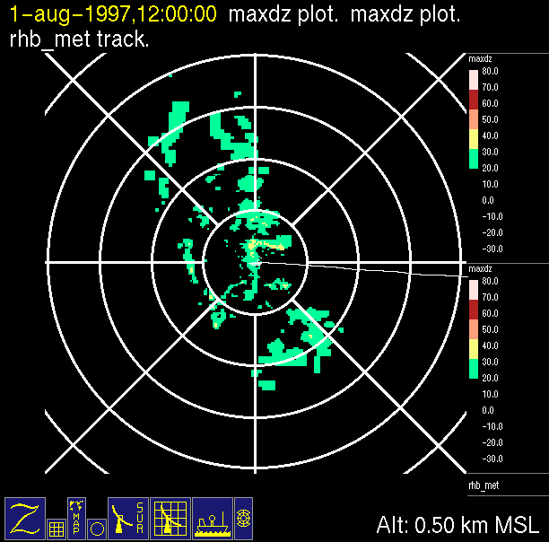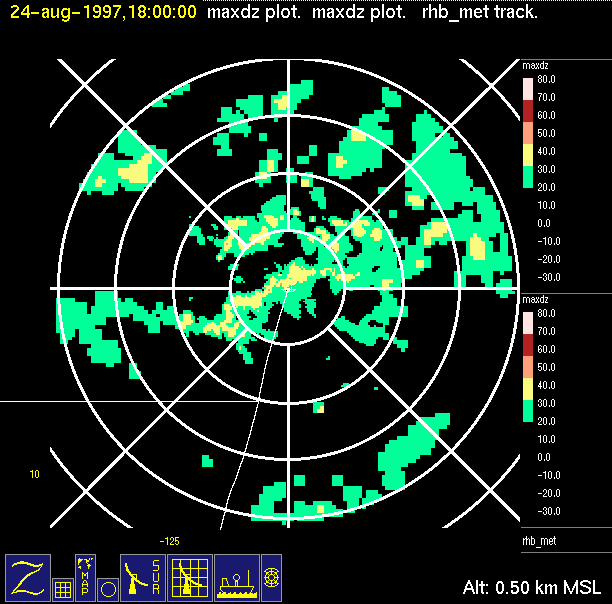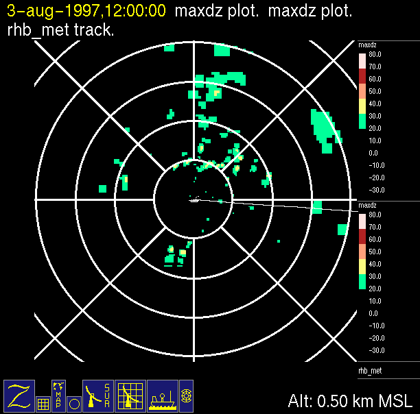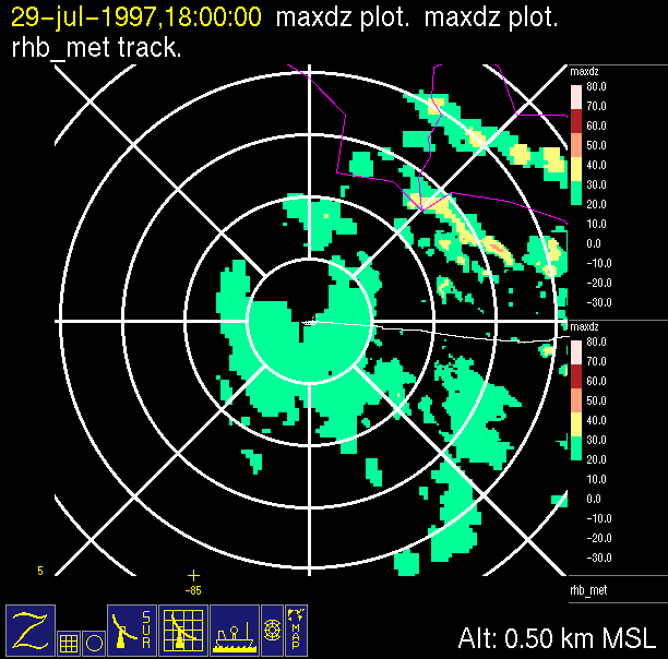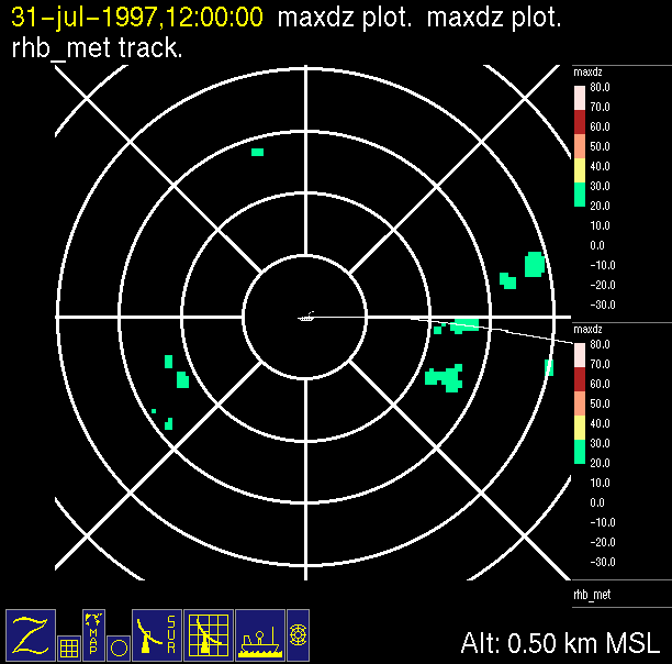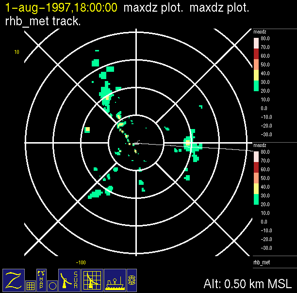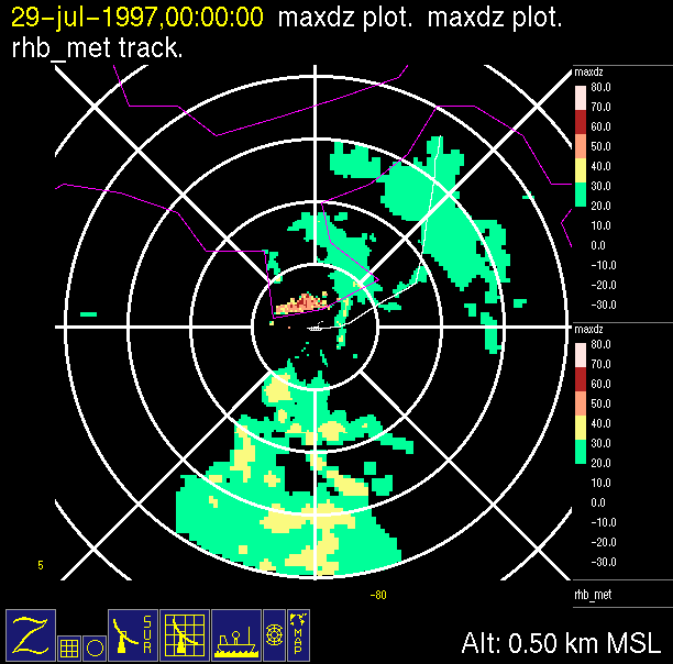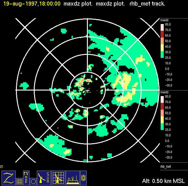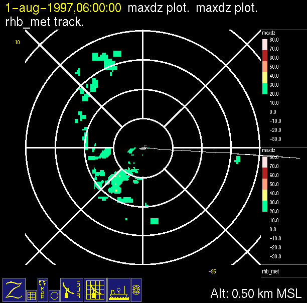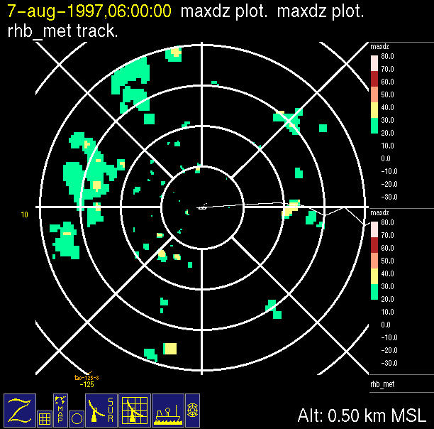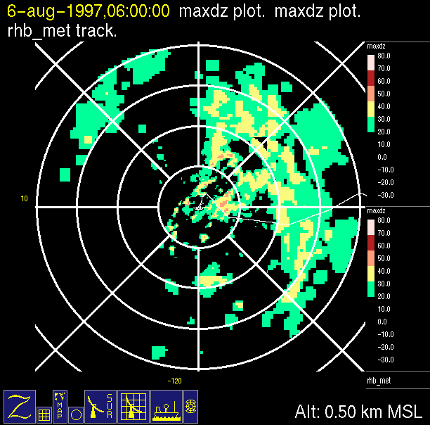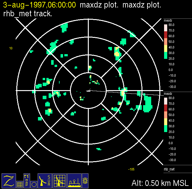 -Close up of radar data (bottom left) contains low level horizontal