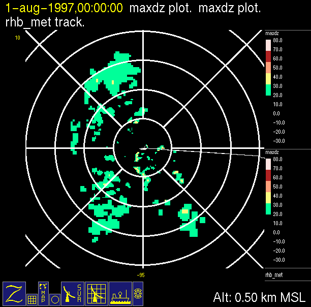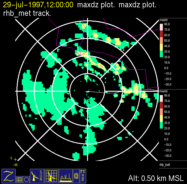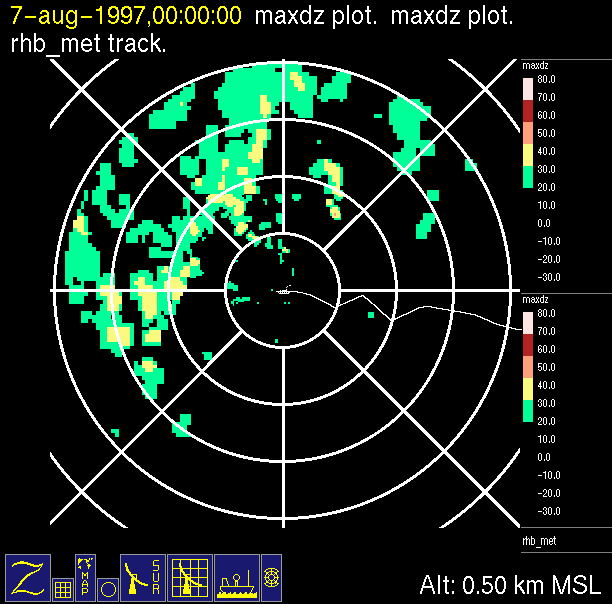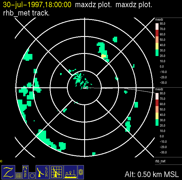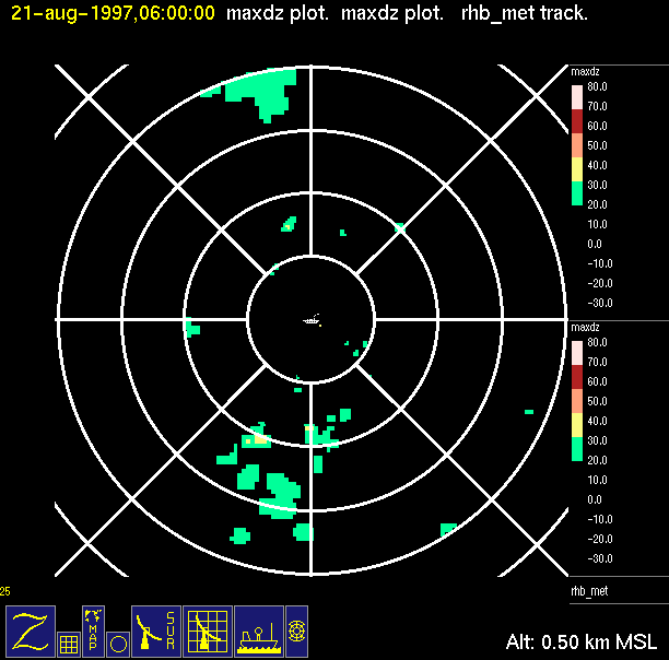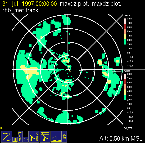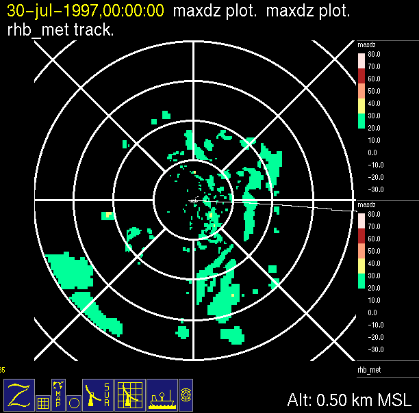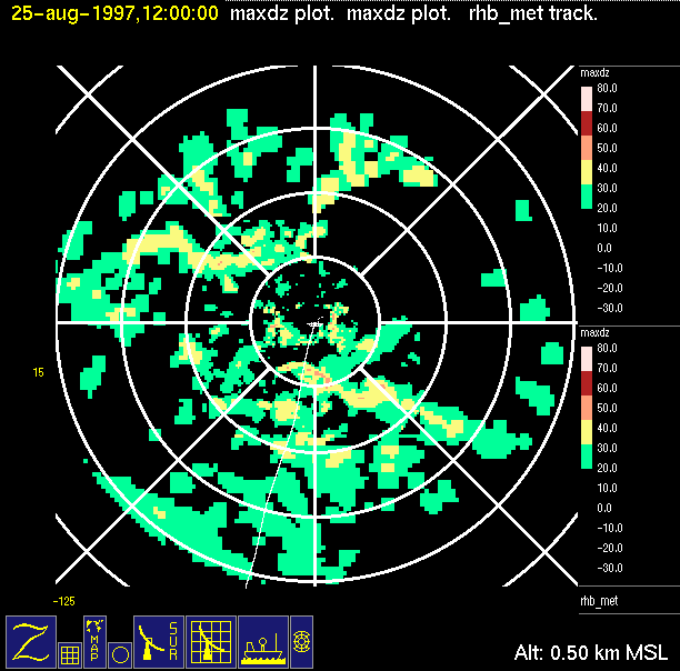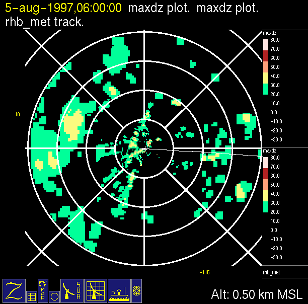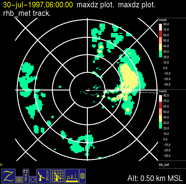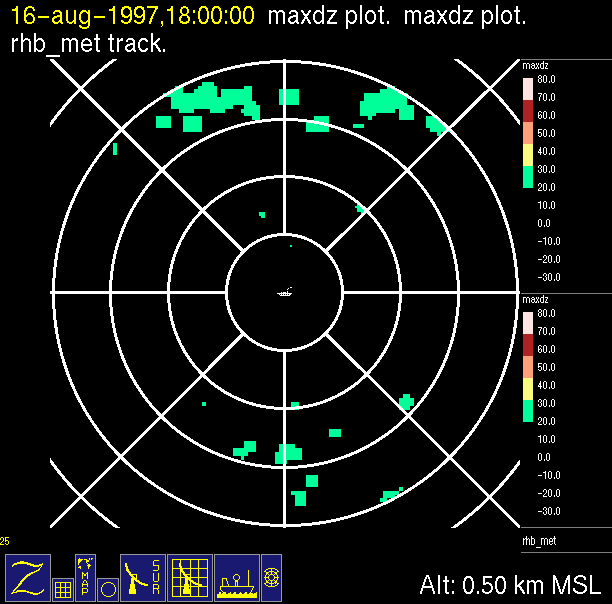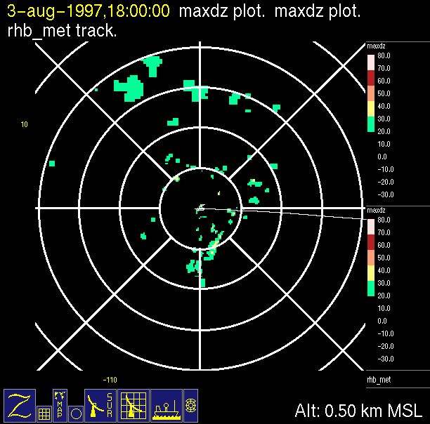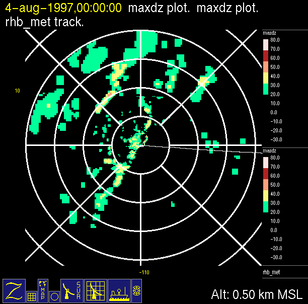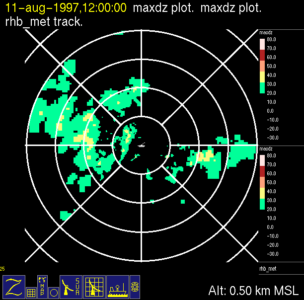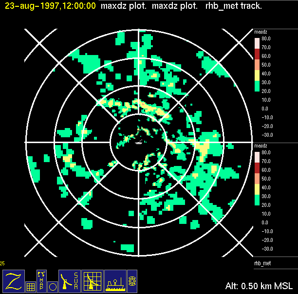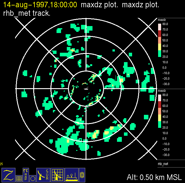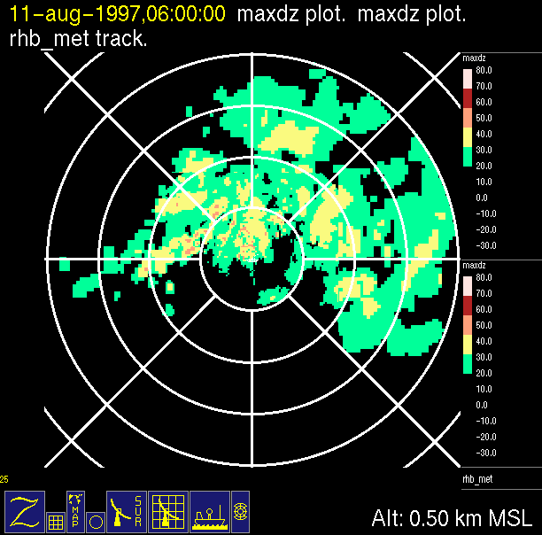 The ITCZ radar scan strategy had two main components: surveillance of the larger scale region within 240 km of the ship and collection of high resoution three-dimensional volume data within 100 km. Two three-dimensional volume scans and one surveillance scan were repeated every 15 minutes. This type of scan was used for the duration of the cruise while operating in or near the ITCZ.