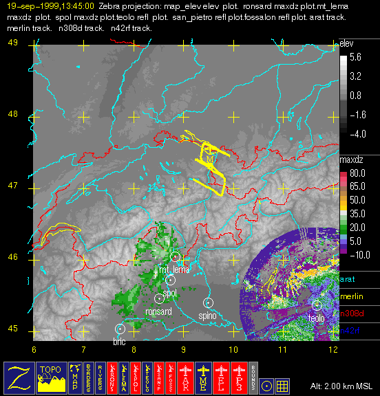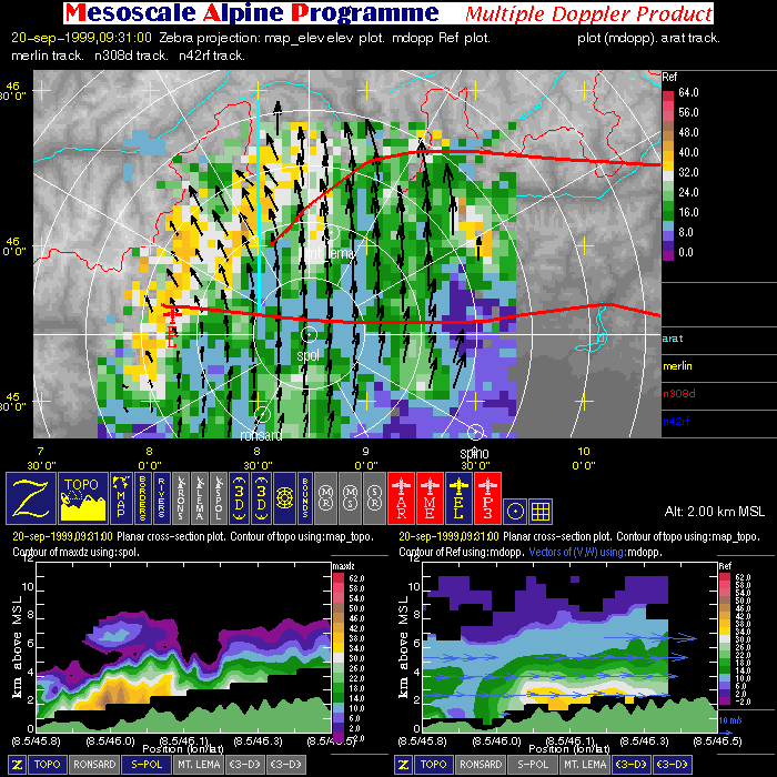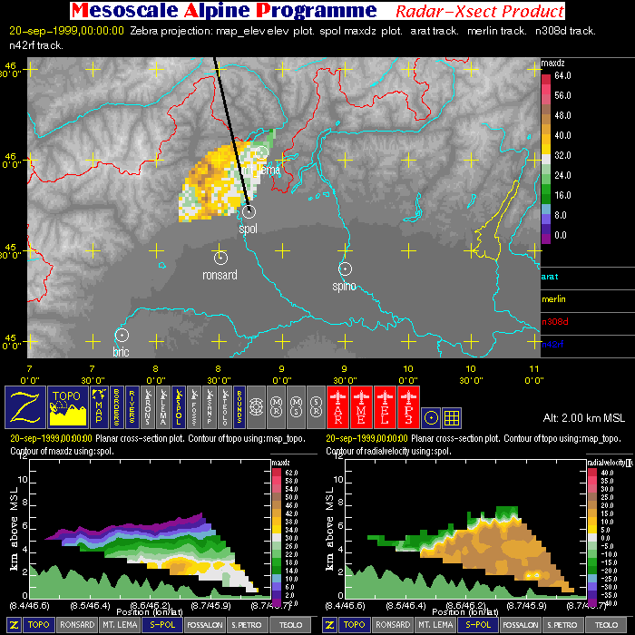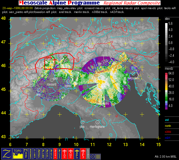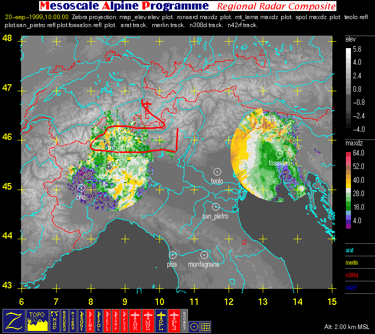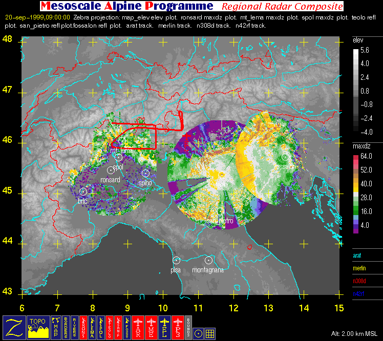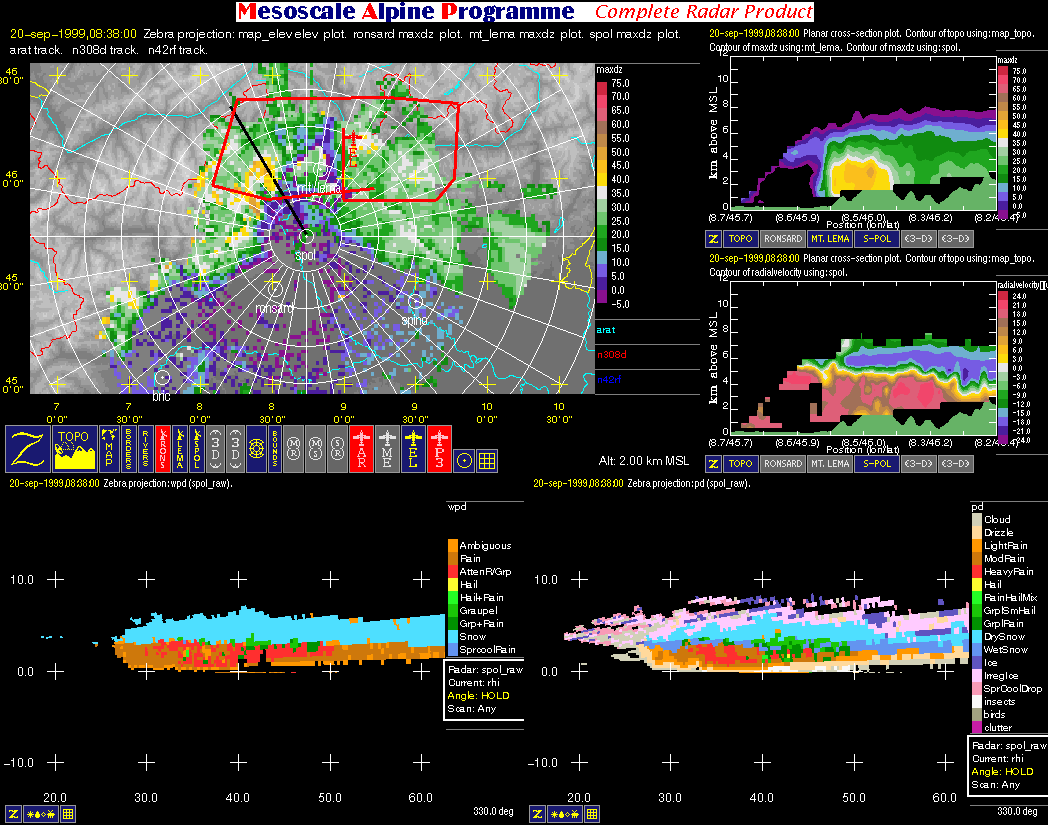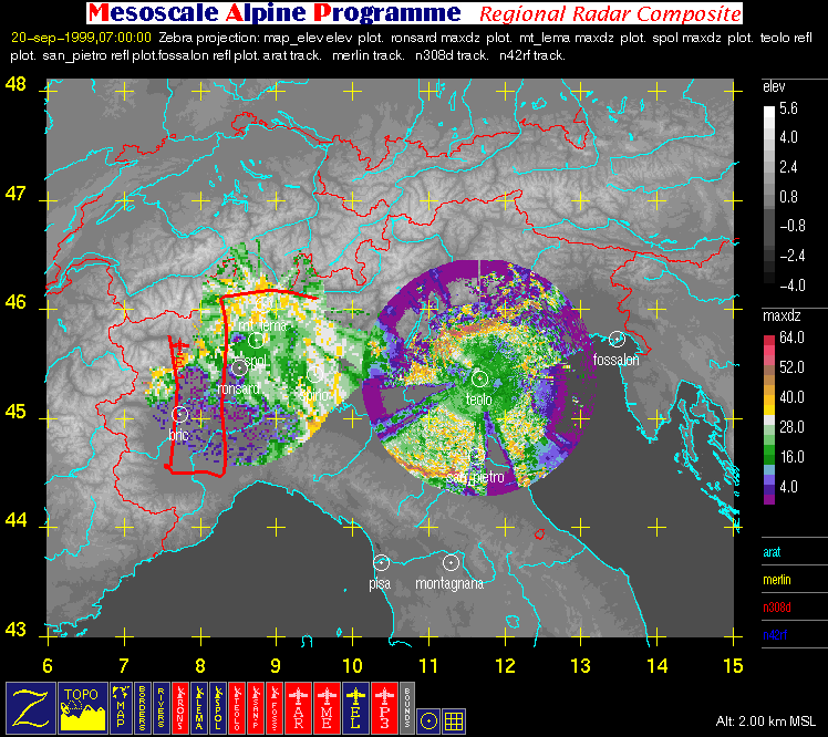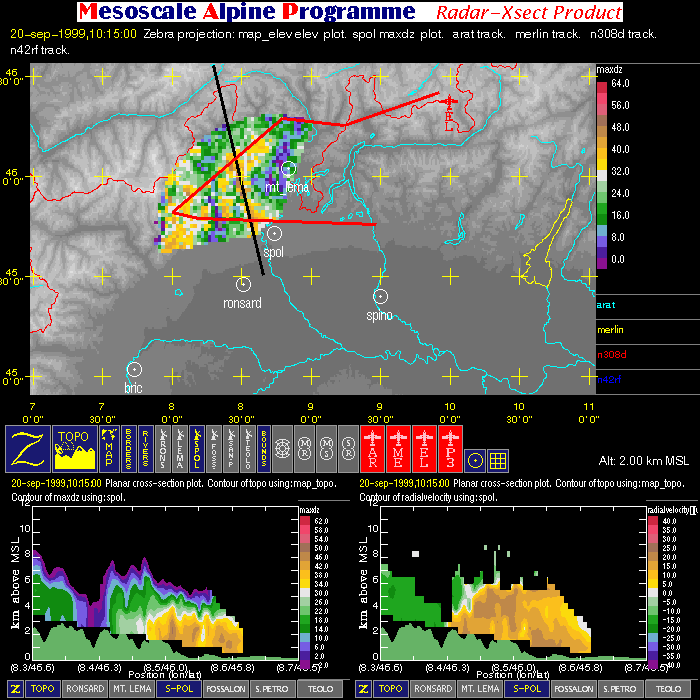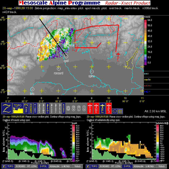 At 0500 UTC 20 September the Electra took off from Innsbruck. The S-Pol, DOW (located at the Magadino Airport), Monte Lema, RONSARD, and OPRA (located at Locarno) all operated throughout the passage of the precipitation event. The RONSARD suffered intermittent problems with its transmitter.
