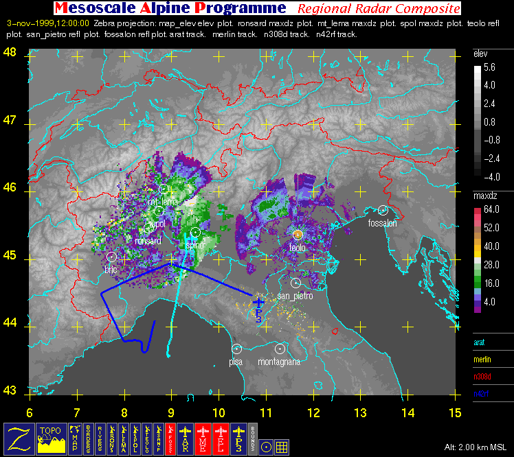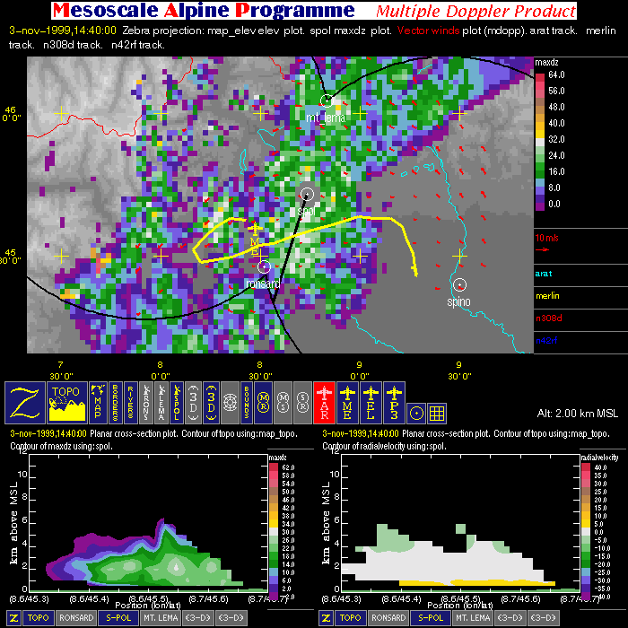 Dual-Doppler Lobes (thin) and Horizontal Position of Vertical Cross-sections (thick) |