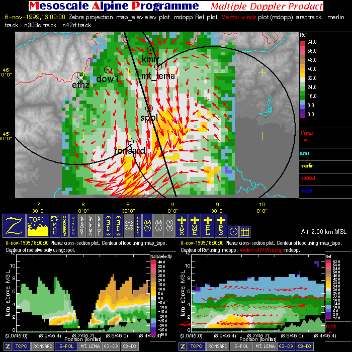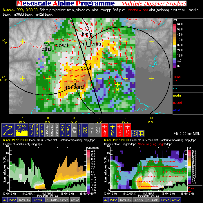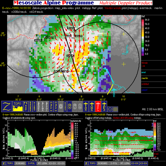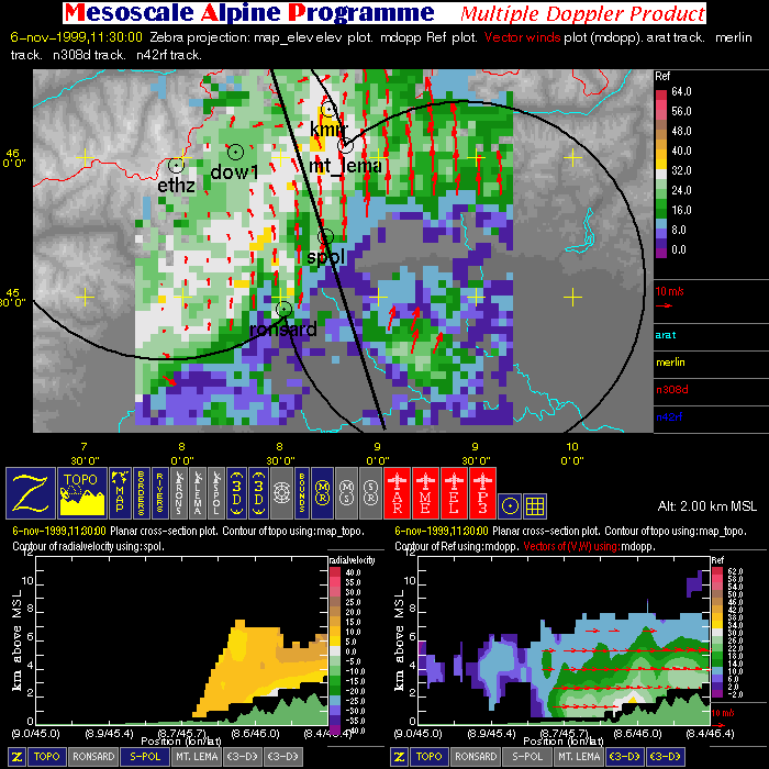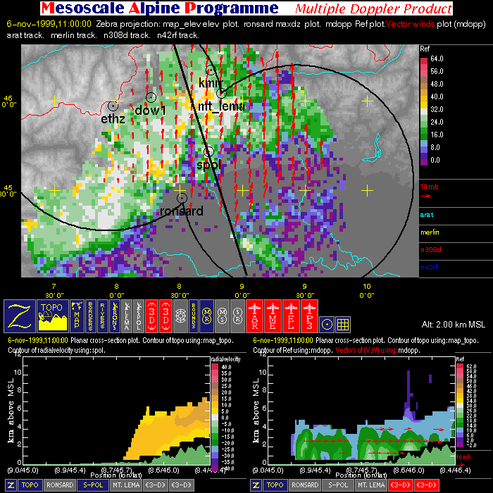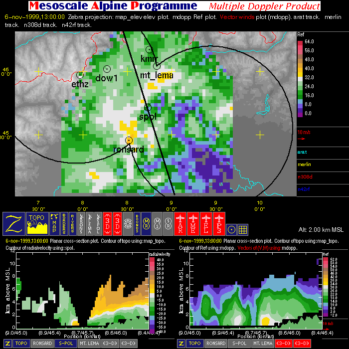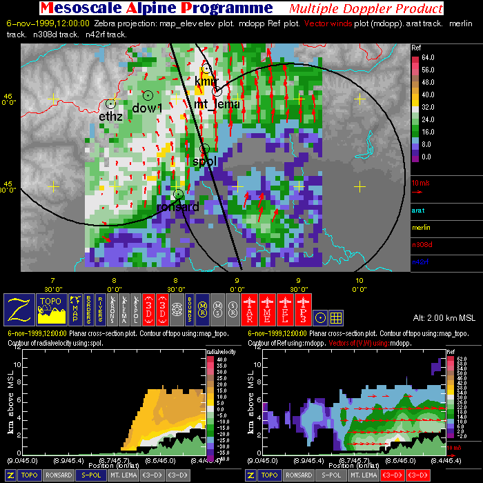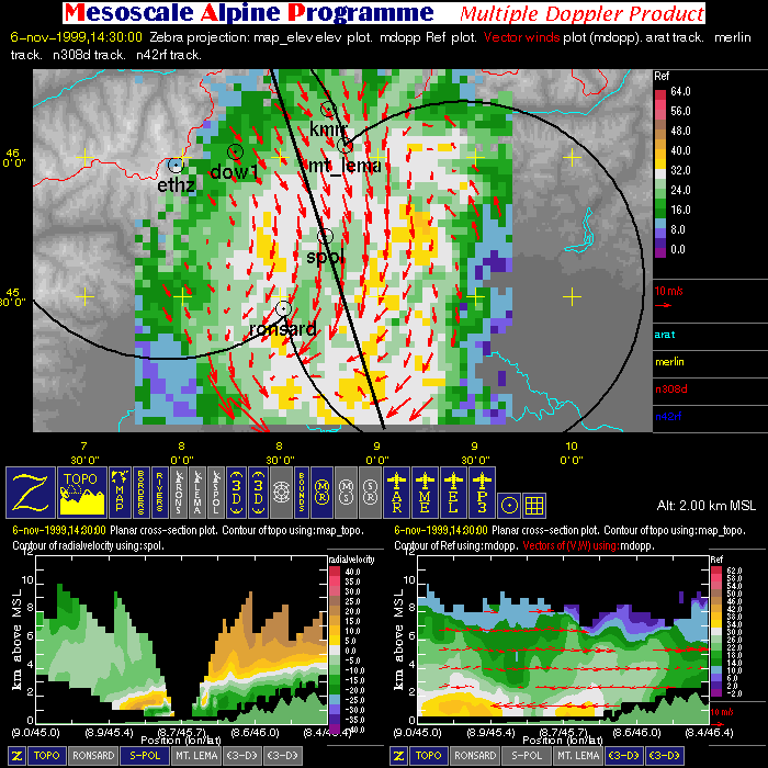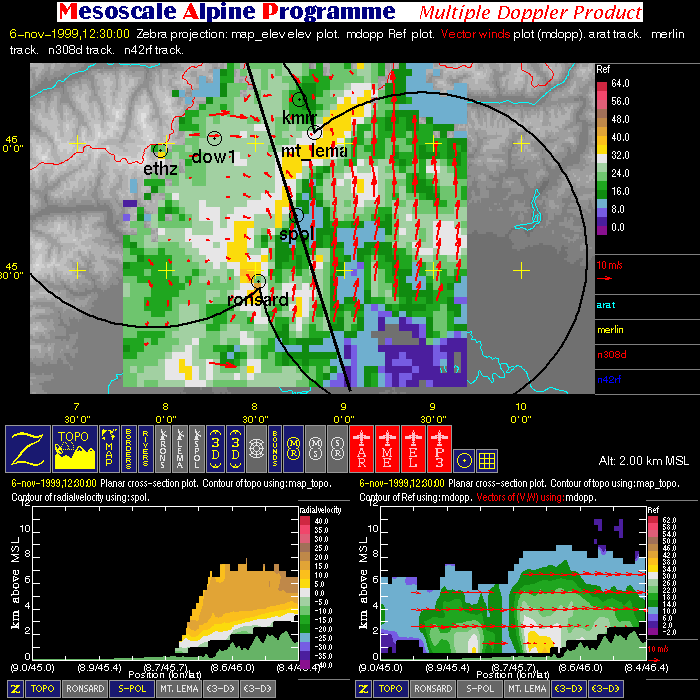 | Dual-Doppler Lobes (thin) and Horizontal Position of Vertical Cross-sections (thick) |