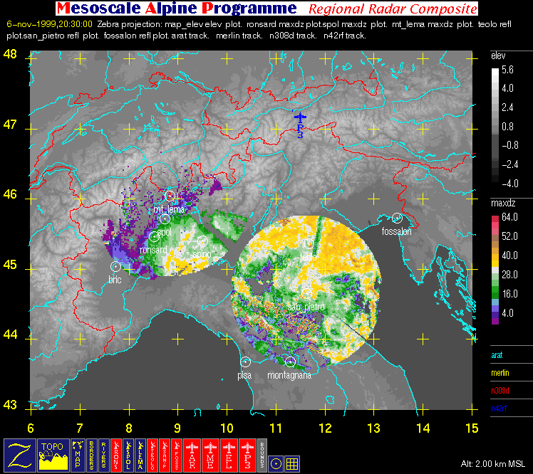 | Radar Range Rings (spacing = 20 km) | |