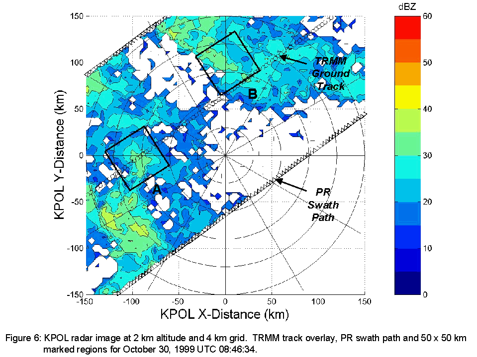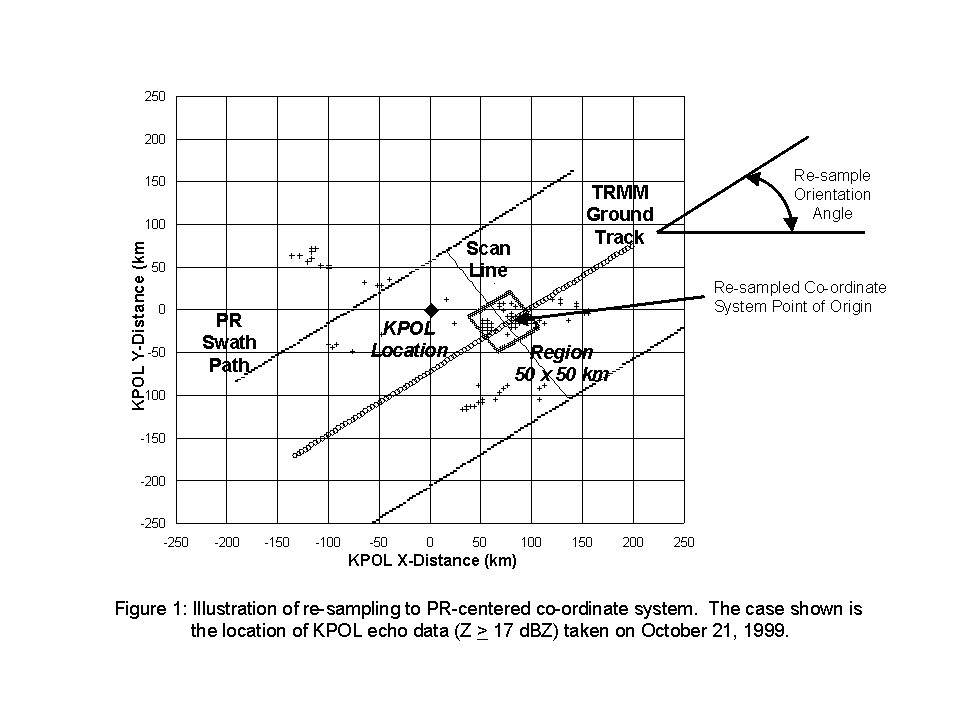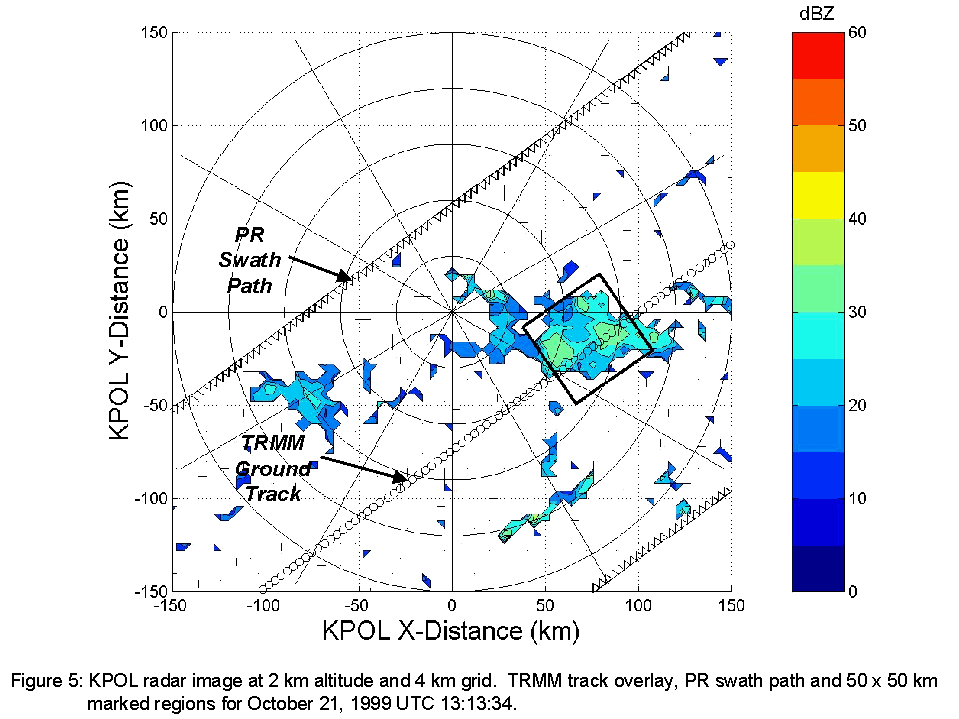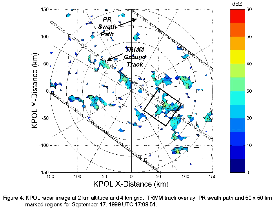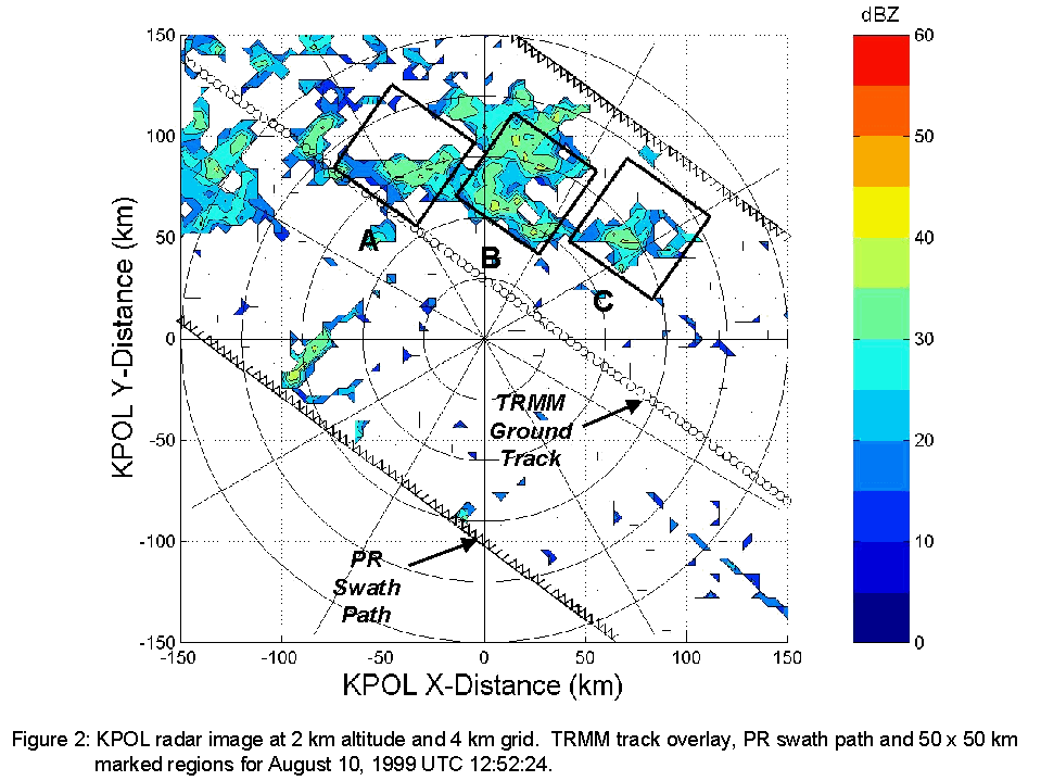 track overlay, PR swath path, scan line and 50 x 50 km study regions with KPOL