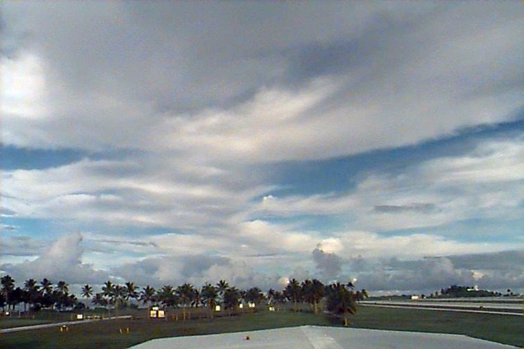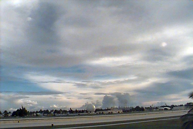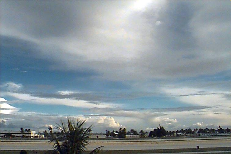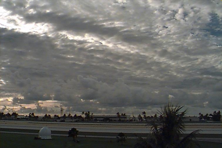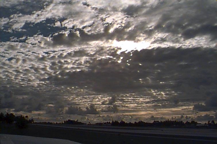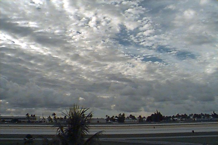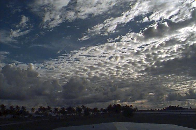 A few moderately developed Cu to SE one further to S; otherwise Sc in all directions. NE-SW line of Ac begining at 70 degrees elevation and streching to horizon. Patchy Cs to SW, lines of Cc spreading radially from NE horizon. |