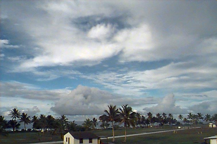 One large cumulus overhead, Cu to the north, No high level clouds, a few As |
