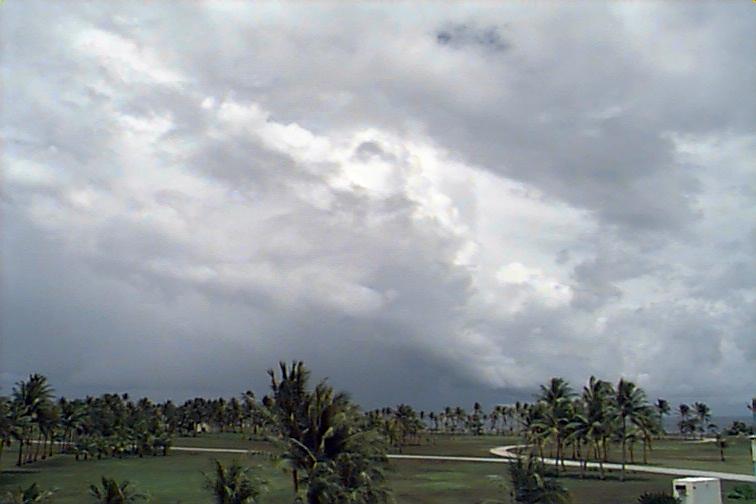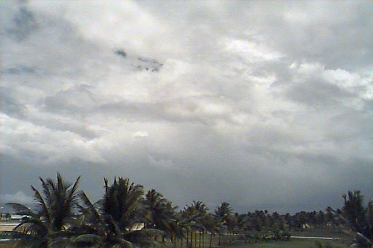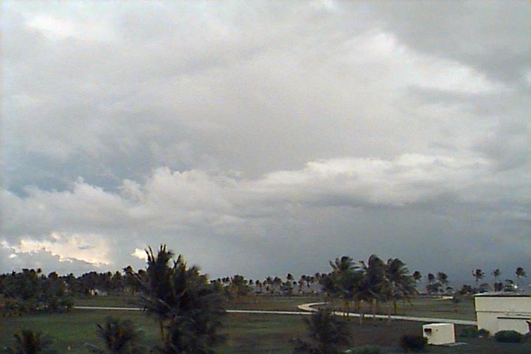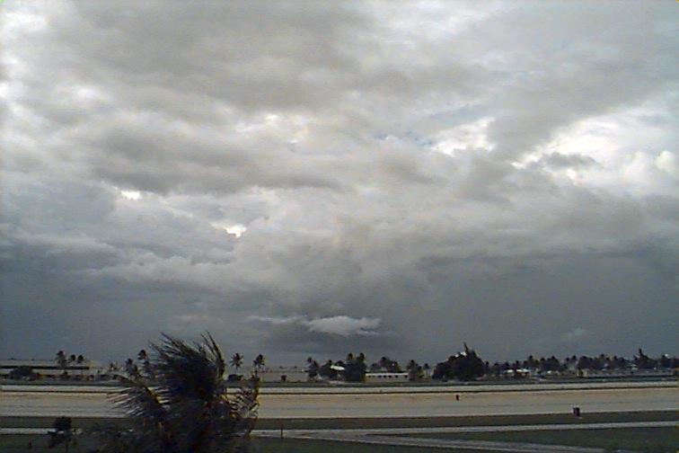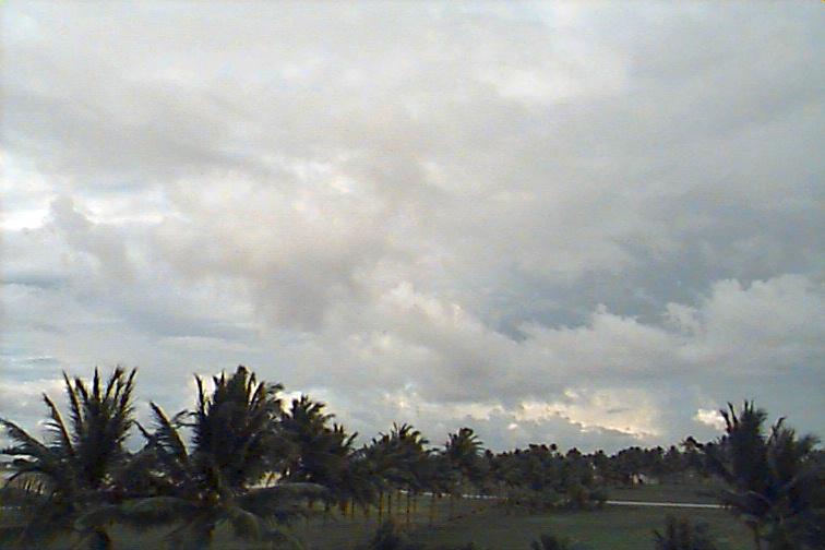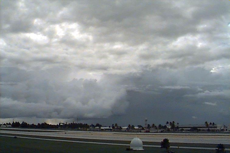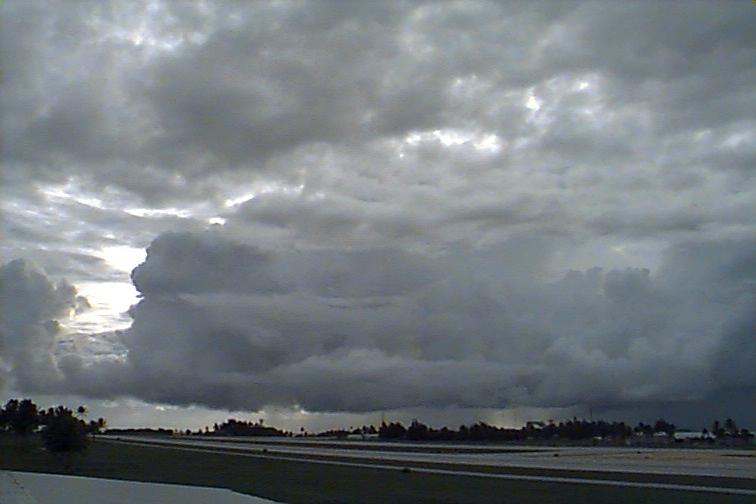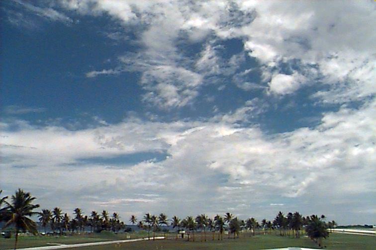 Moderately-developed Cu and Cb stretching along Eastern horizon from N to SE, with at least two rain-bands to the N and 2 closer rain-bands to E and S. Ac mixed with As at middle-levels and some Cc and Cs spreading from larger Cb to N. |
