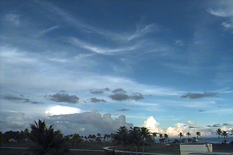 In all directions there are Cu clouds with small vertical extent. Ac at mid-levels and Cs clouds at upper-levels. |