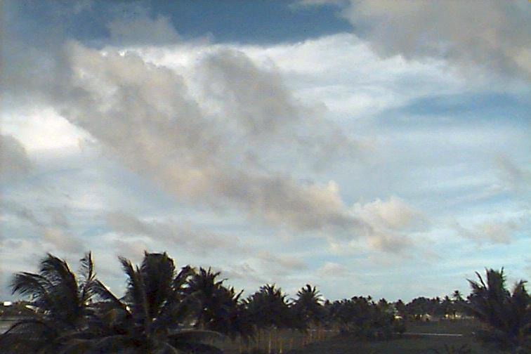 Ragged Cu in all directions, Cb on E horizon, dense As covering most of the sky with Cs visible in open patches |