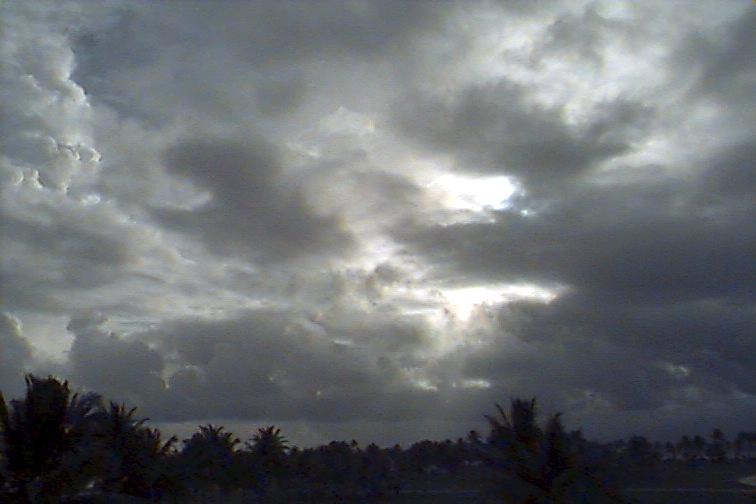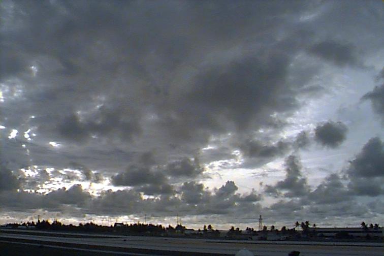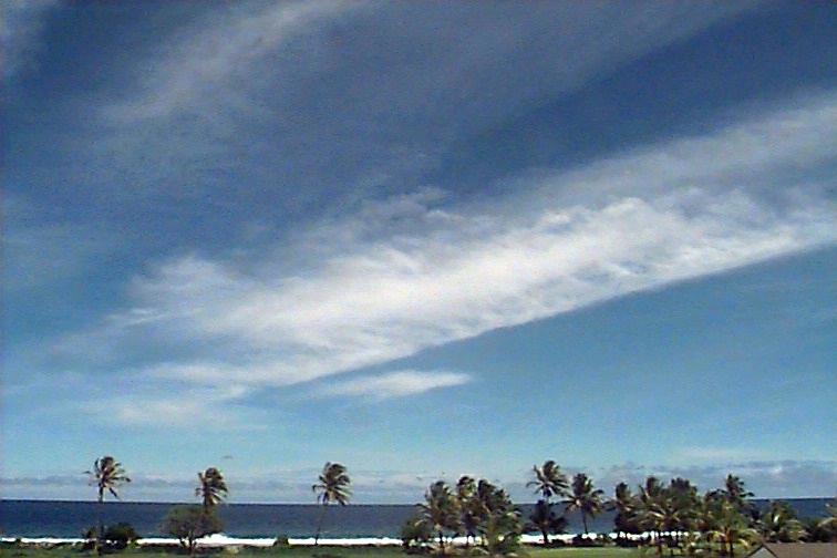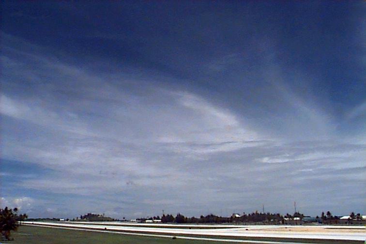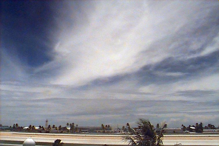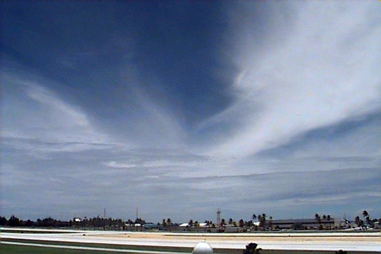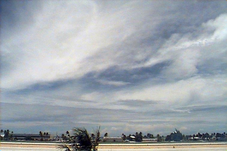 Low level clouds only on E and W horizon, patches of Ac in N half of sky, sections of elongated Cs from past and present Cb's |