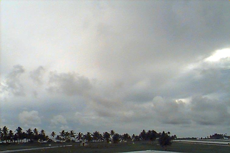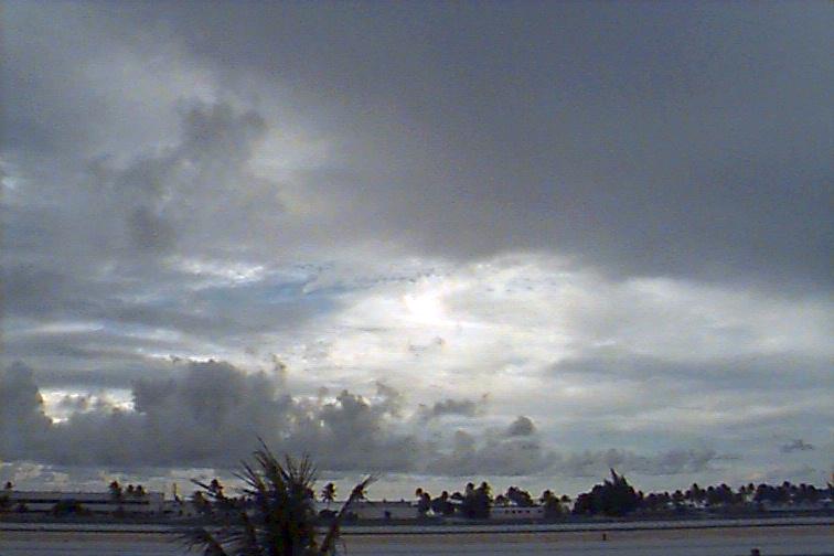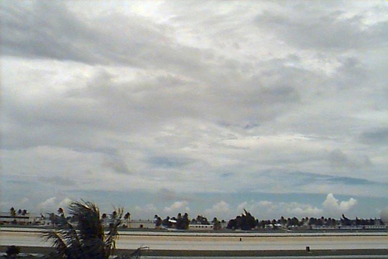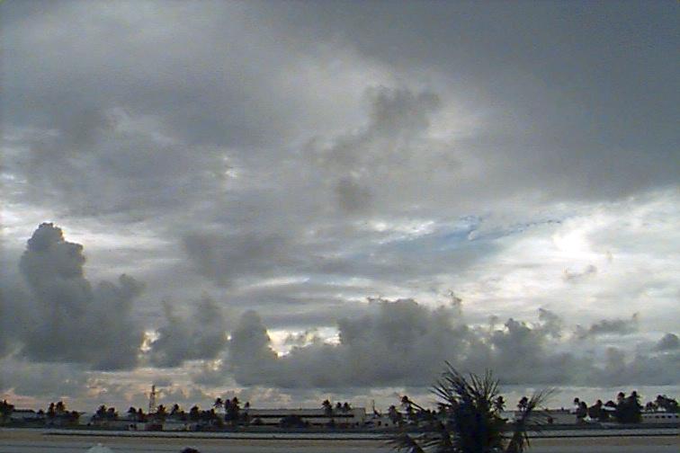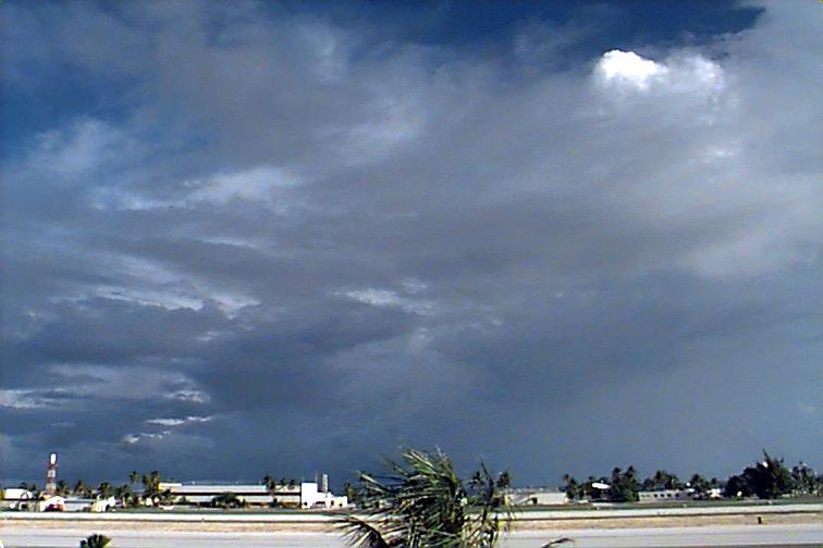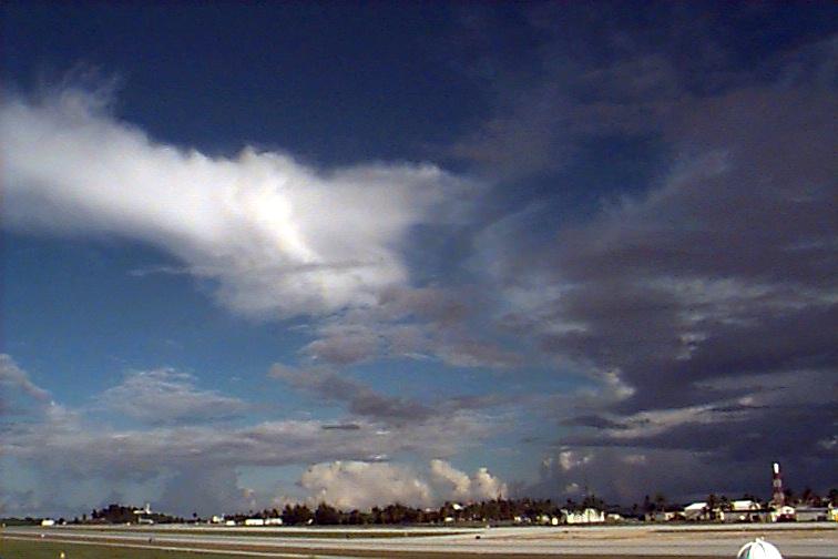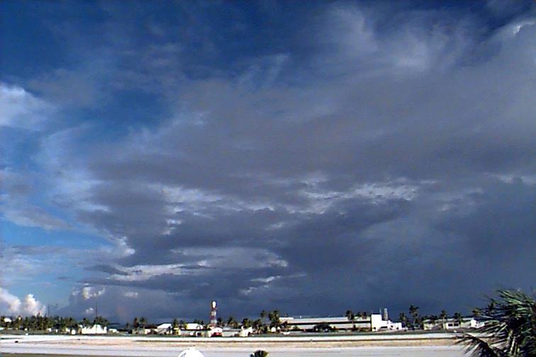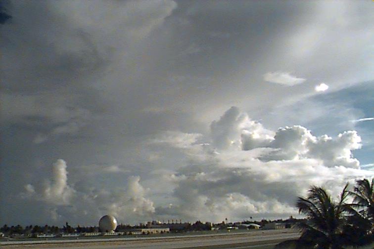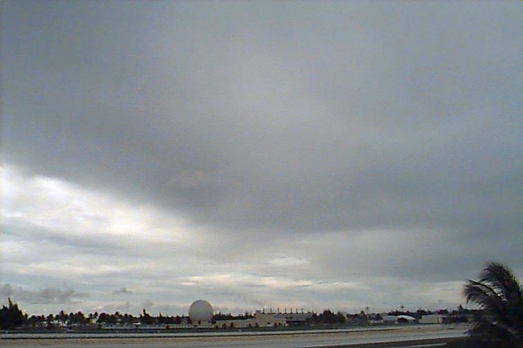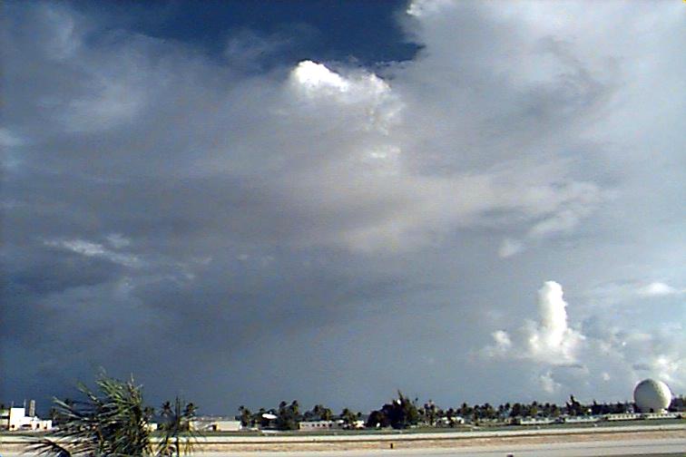 Dark Cb to the south. Ac patch to west, otherwise opaque As. Upper level boundary north of Kwaj oriented E-W with Cs to south and clear skies to north. |