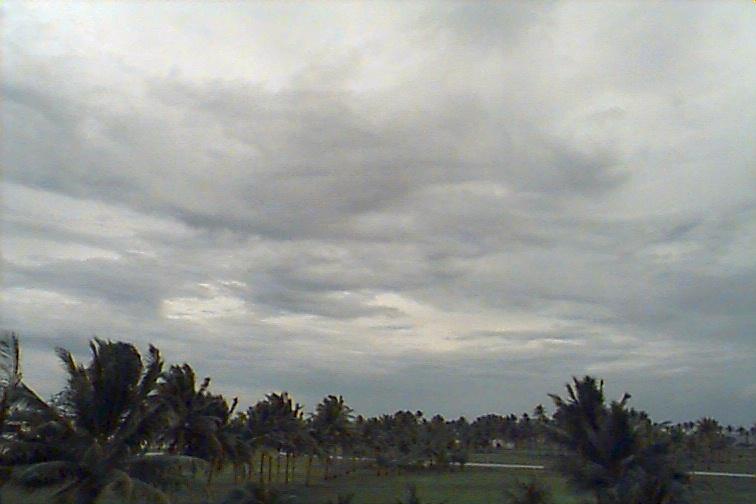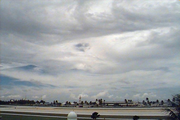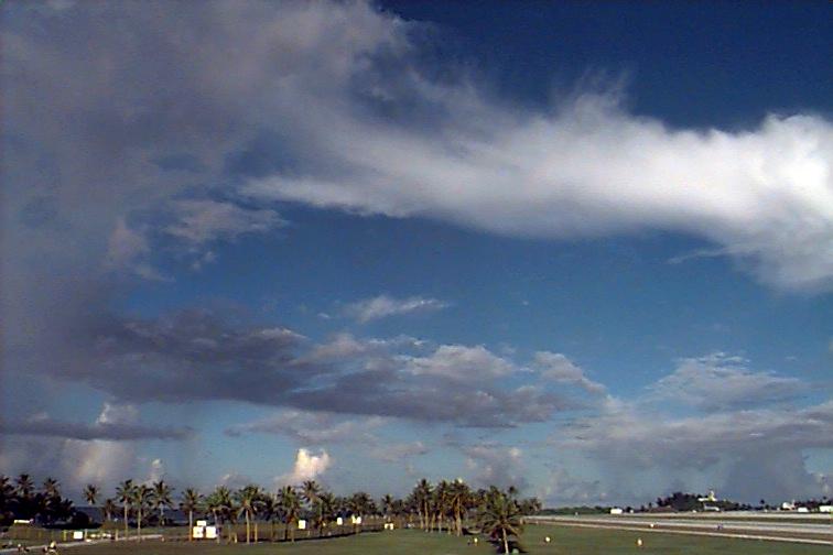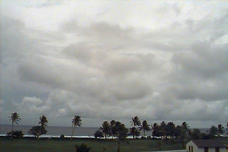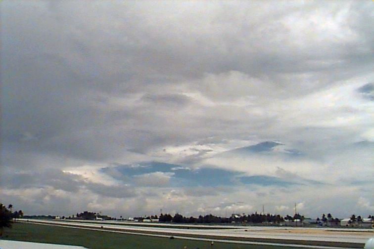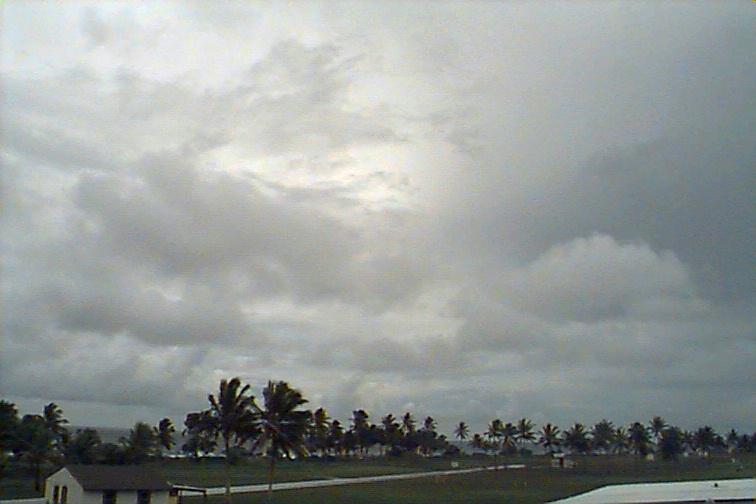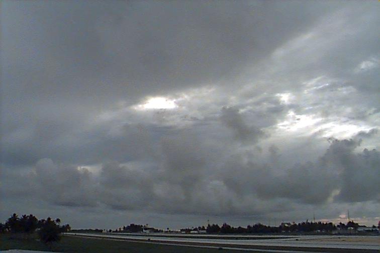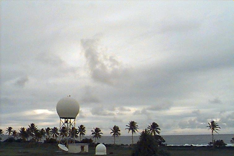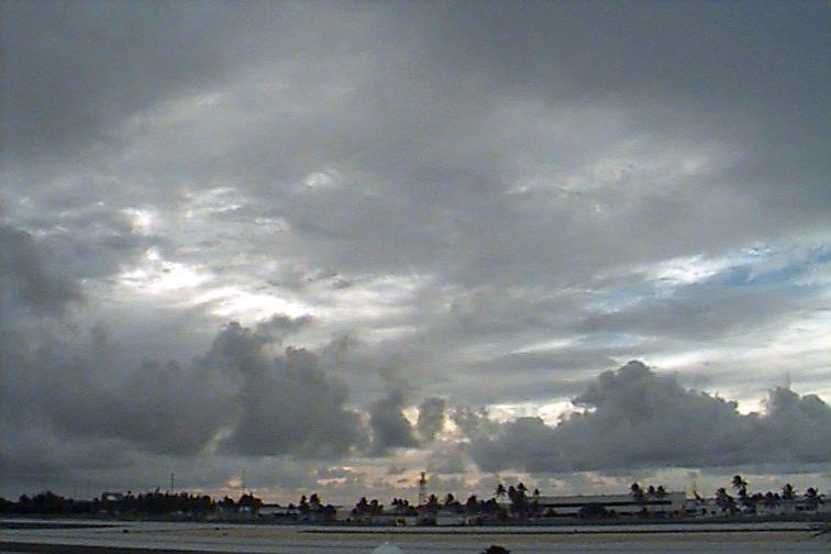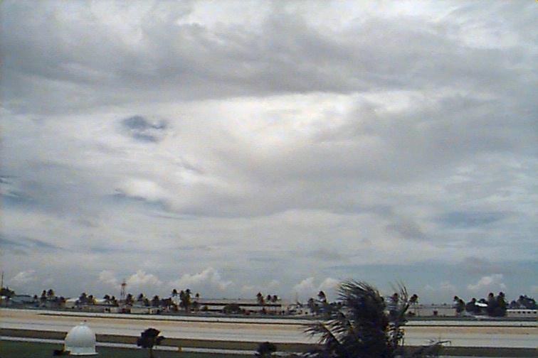 Dark Cb to the south. Ac patch to west, otherwise opaque As. Upper level boundary north of Kwaj oriented E-W with Cs to south and clear skies to north. |