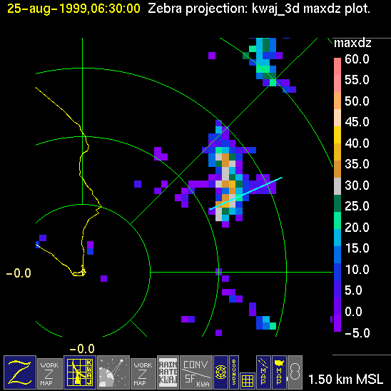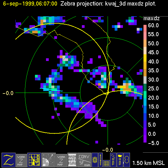 The following page is a list of comparisons between visual images of clouds and their radar counterparts. It is intended as a showcase of the qualitative relation between the two in the immediate vicinity of Kwajalein Island.