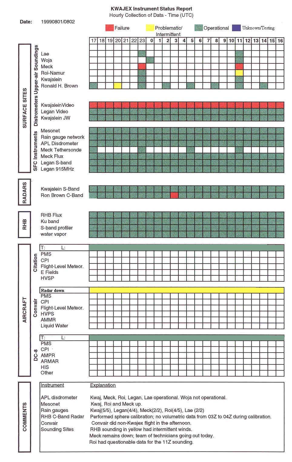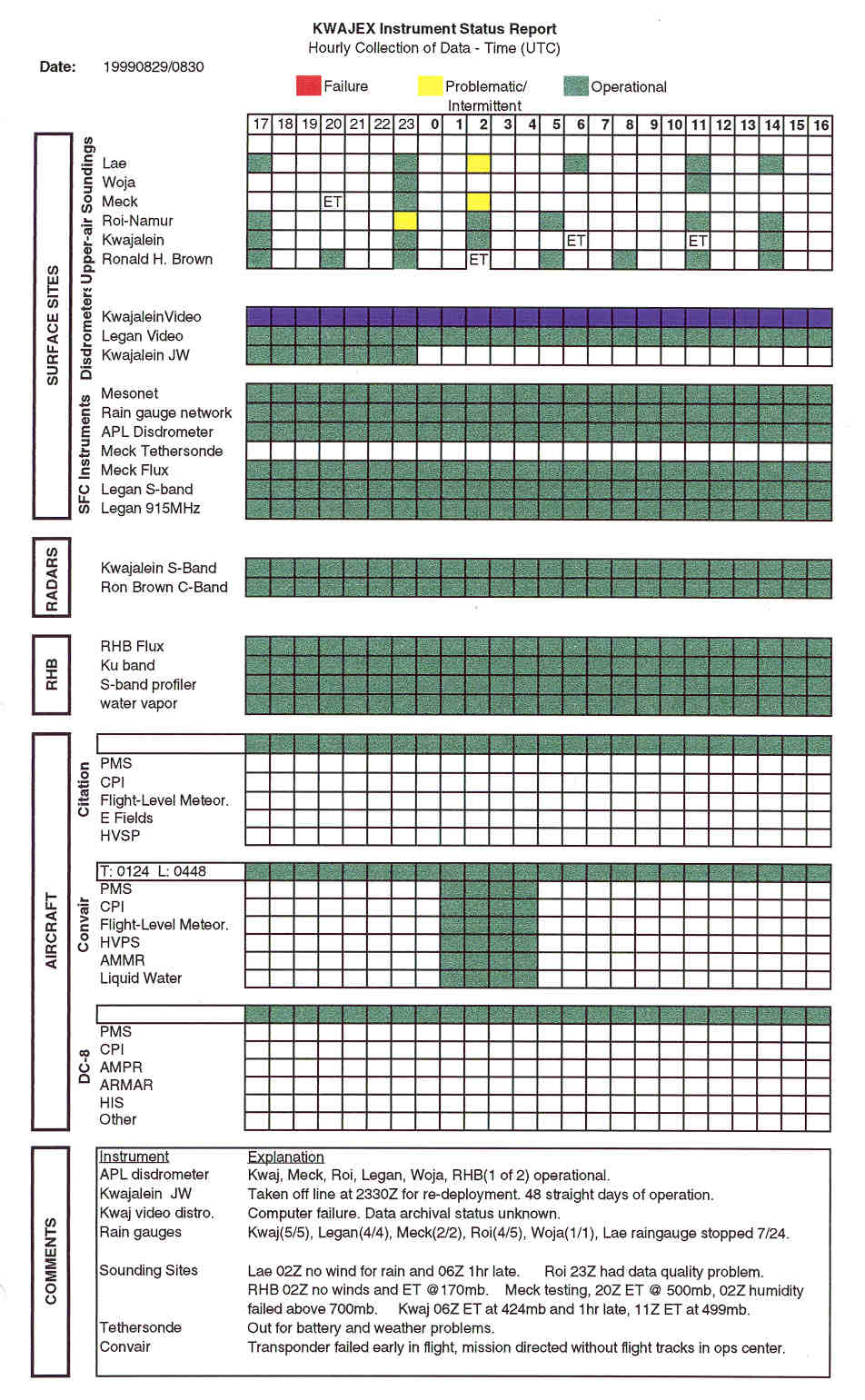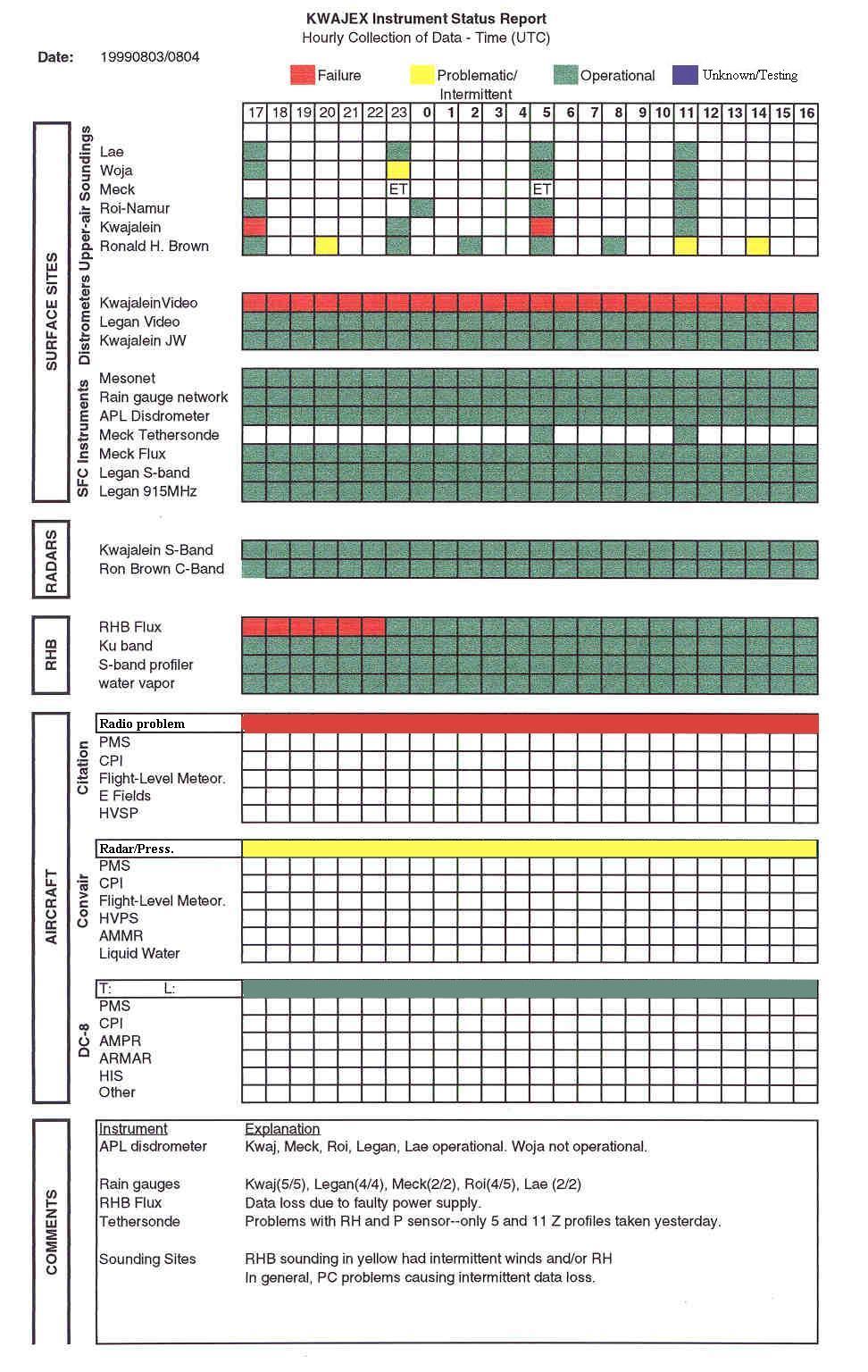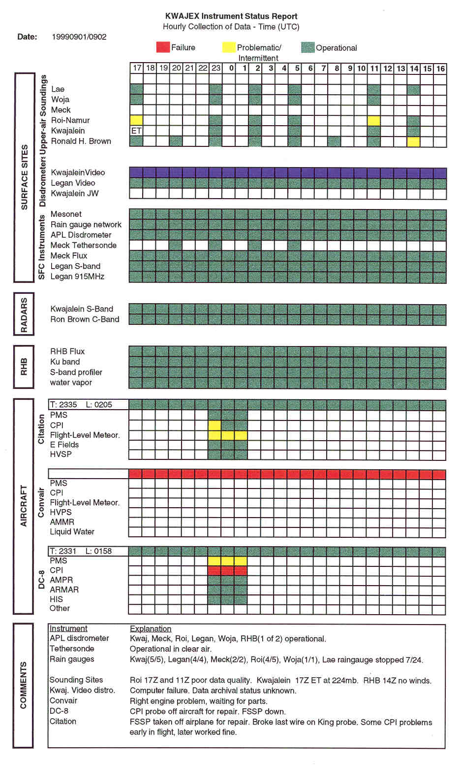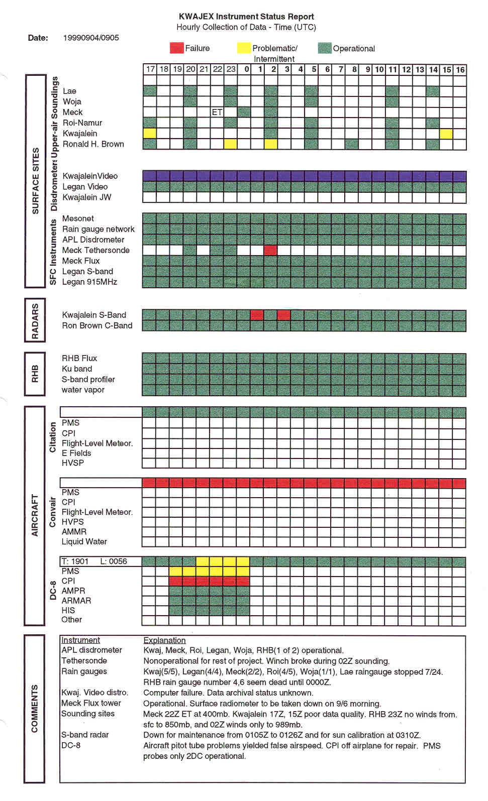 KWAJEX Daily Status CatalogThe following calendar contains links to a chart of instrument status (accessible by clicking on the date).