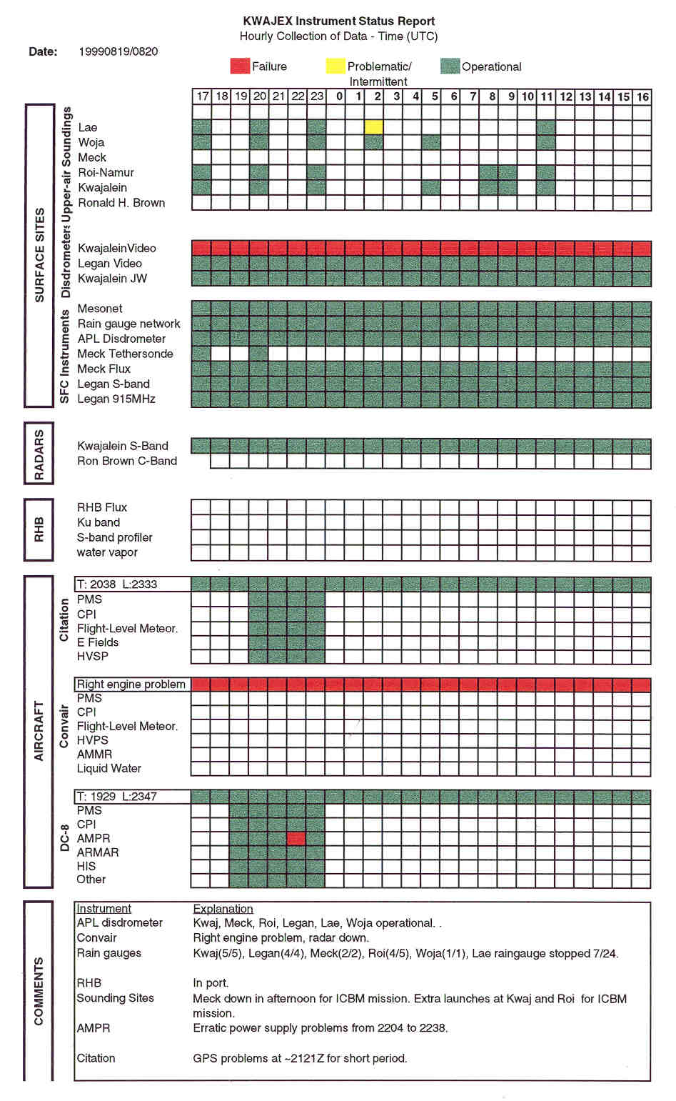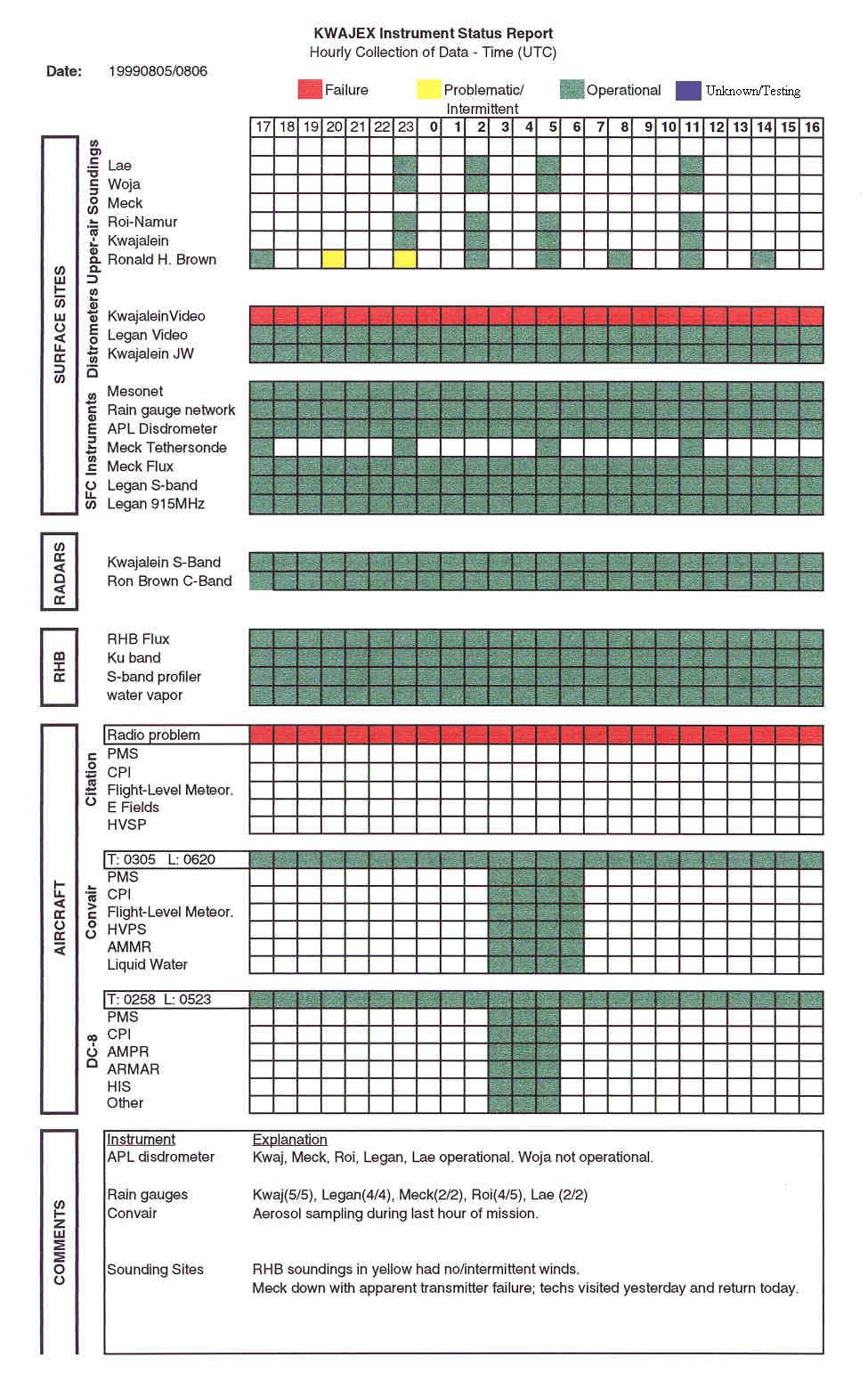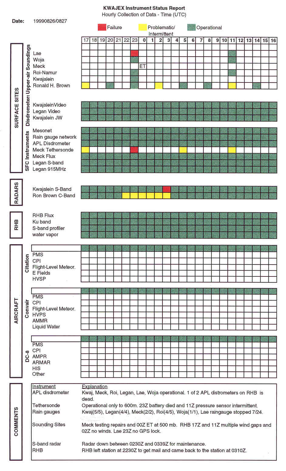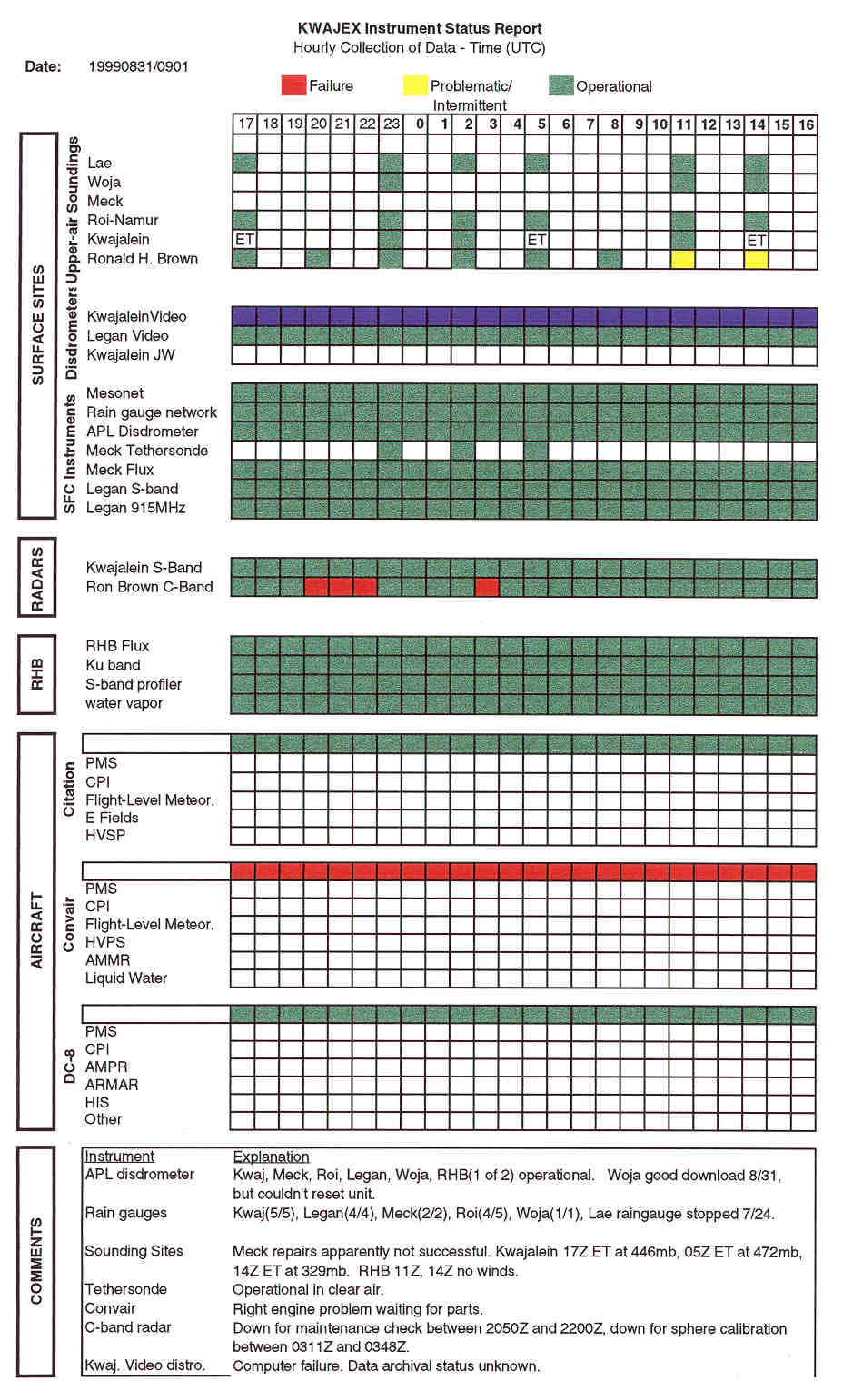 KWAJEX Daily Status CatalogThe following calendar contains links to a chart of instrument status (accessible by clicking on the date).