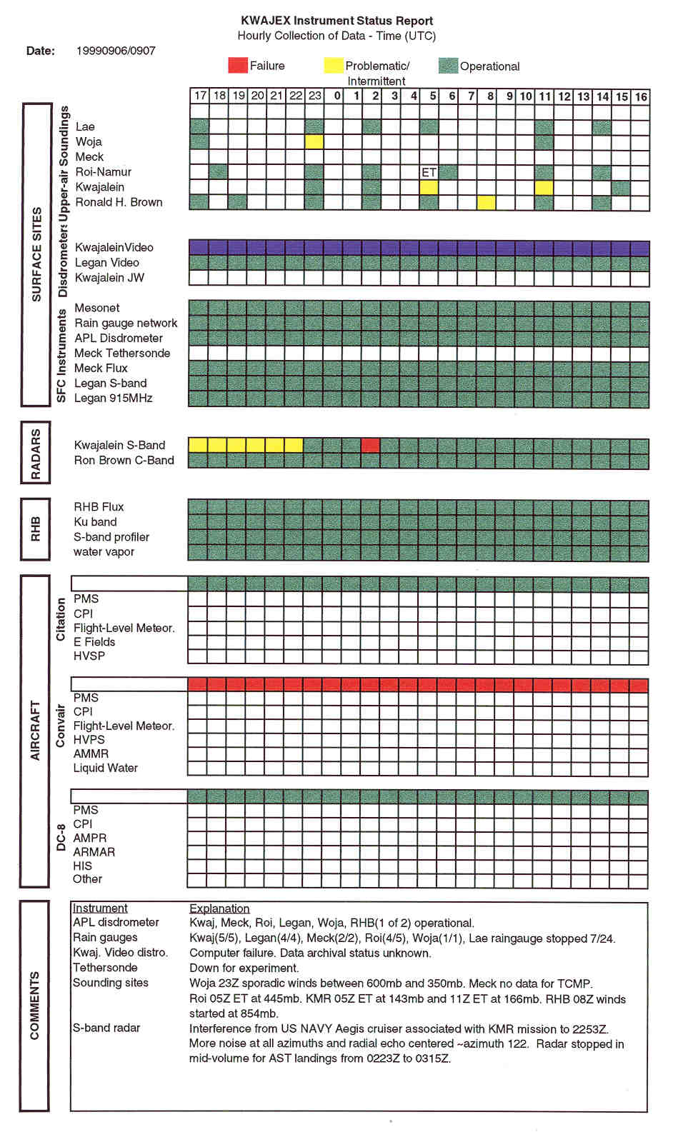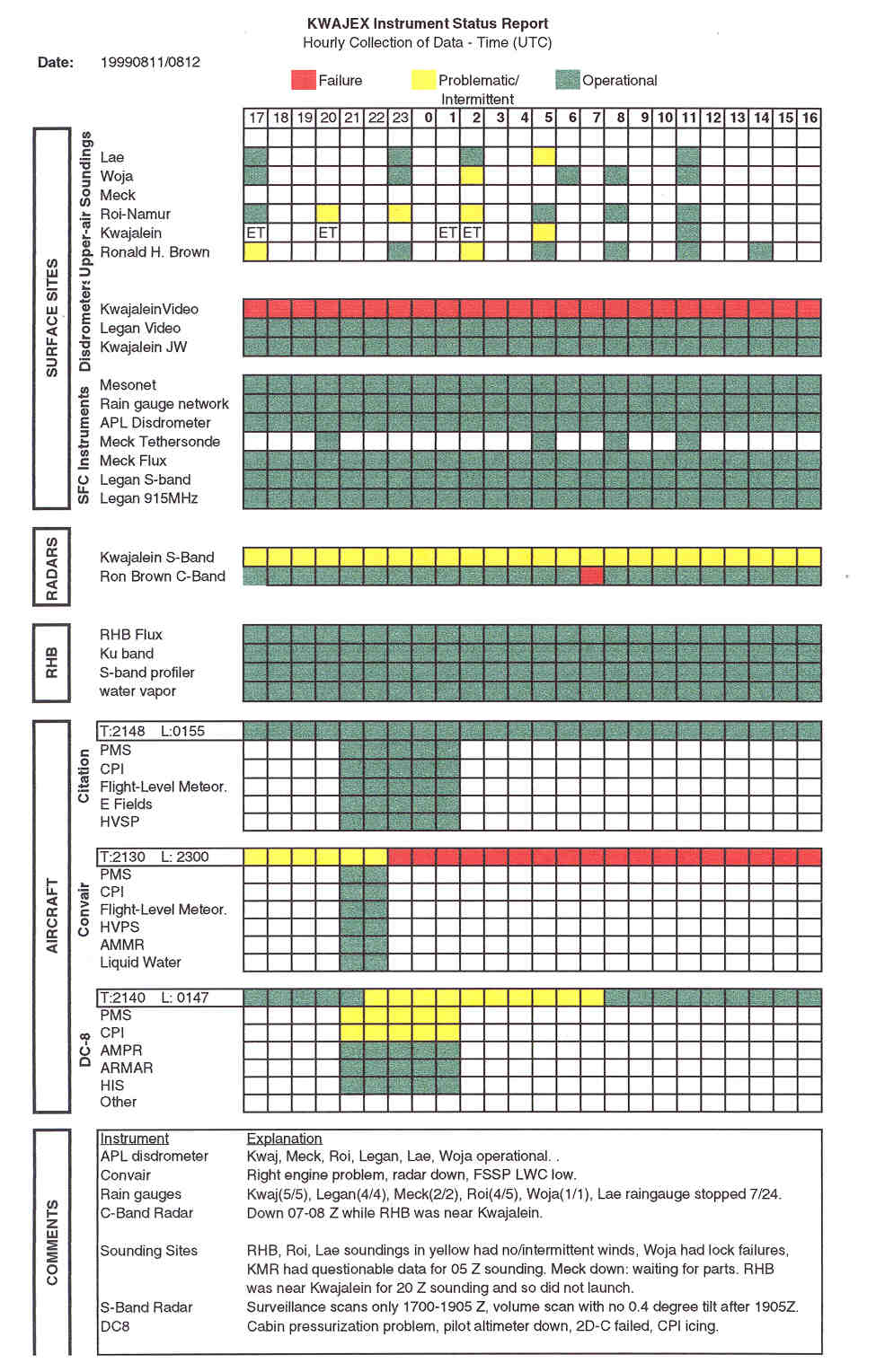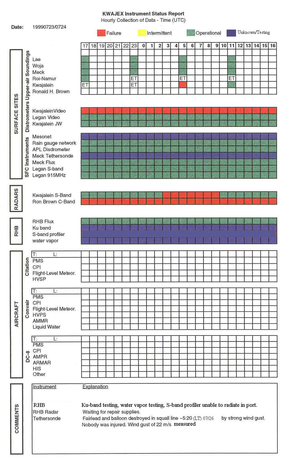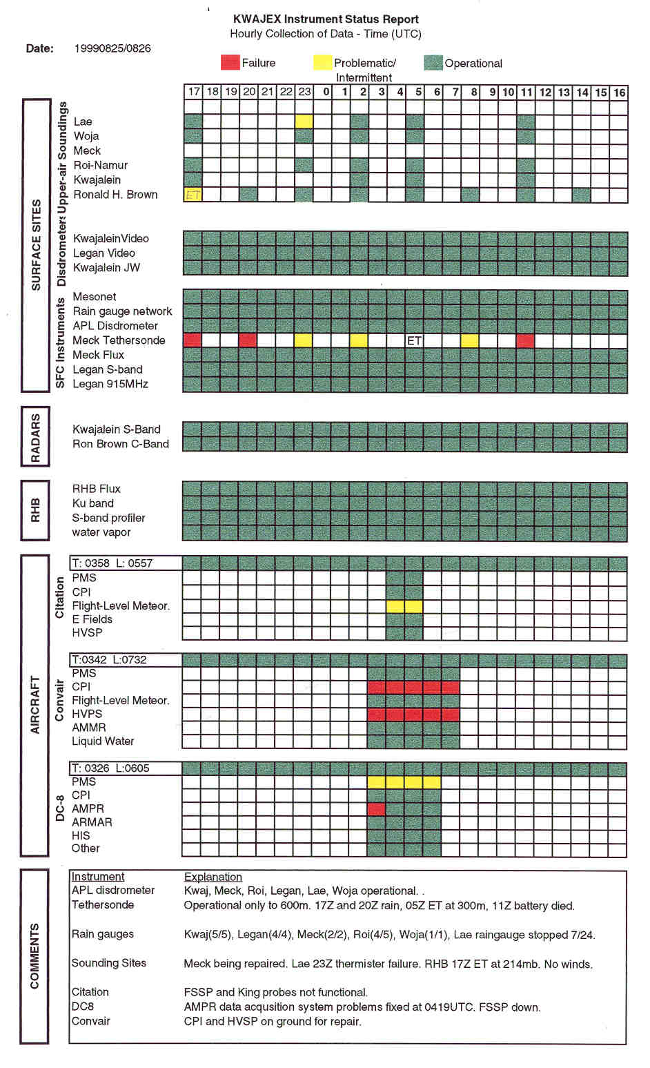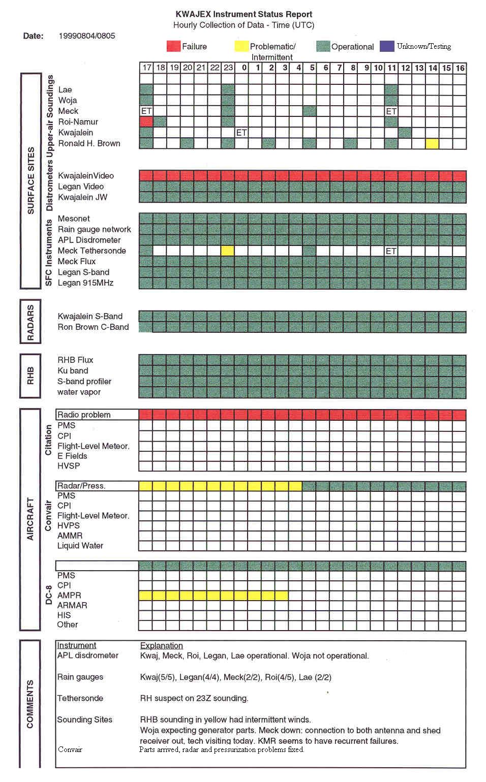 KWAJEX Daily Status CatalogThe following calendar contains links to a chart of instrument status (accessible by clicking on the date).