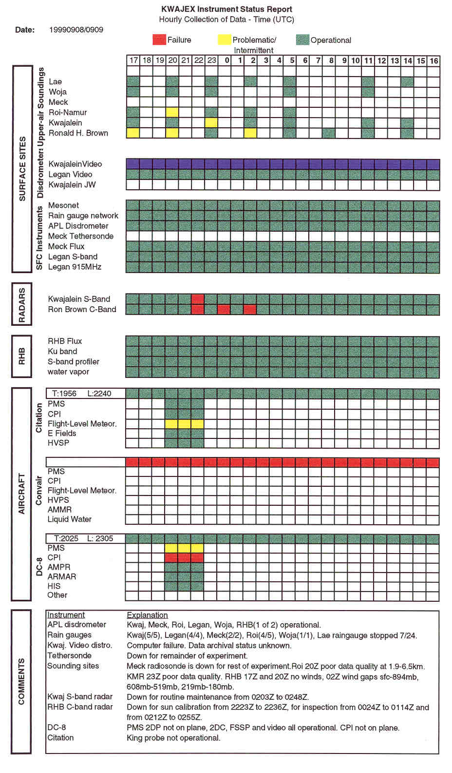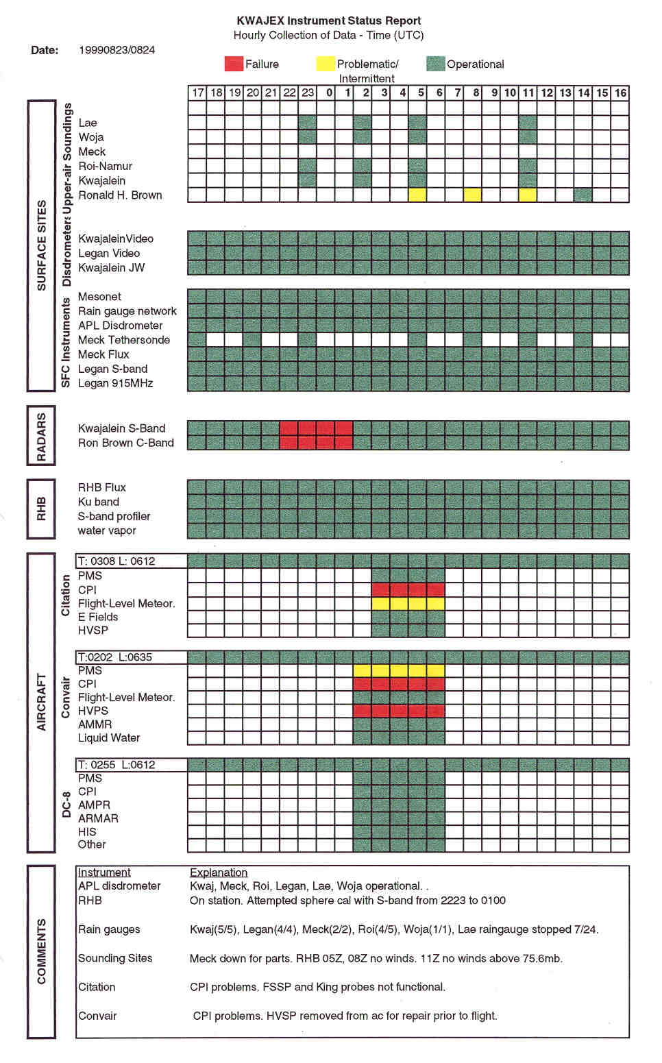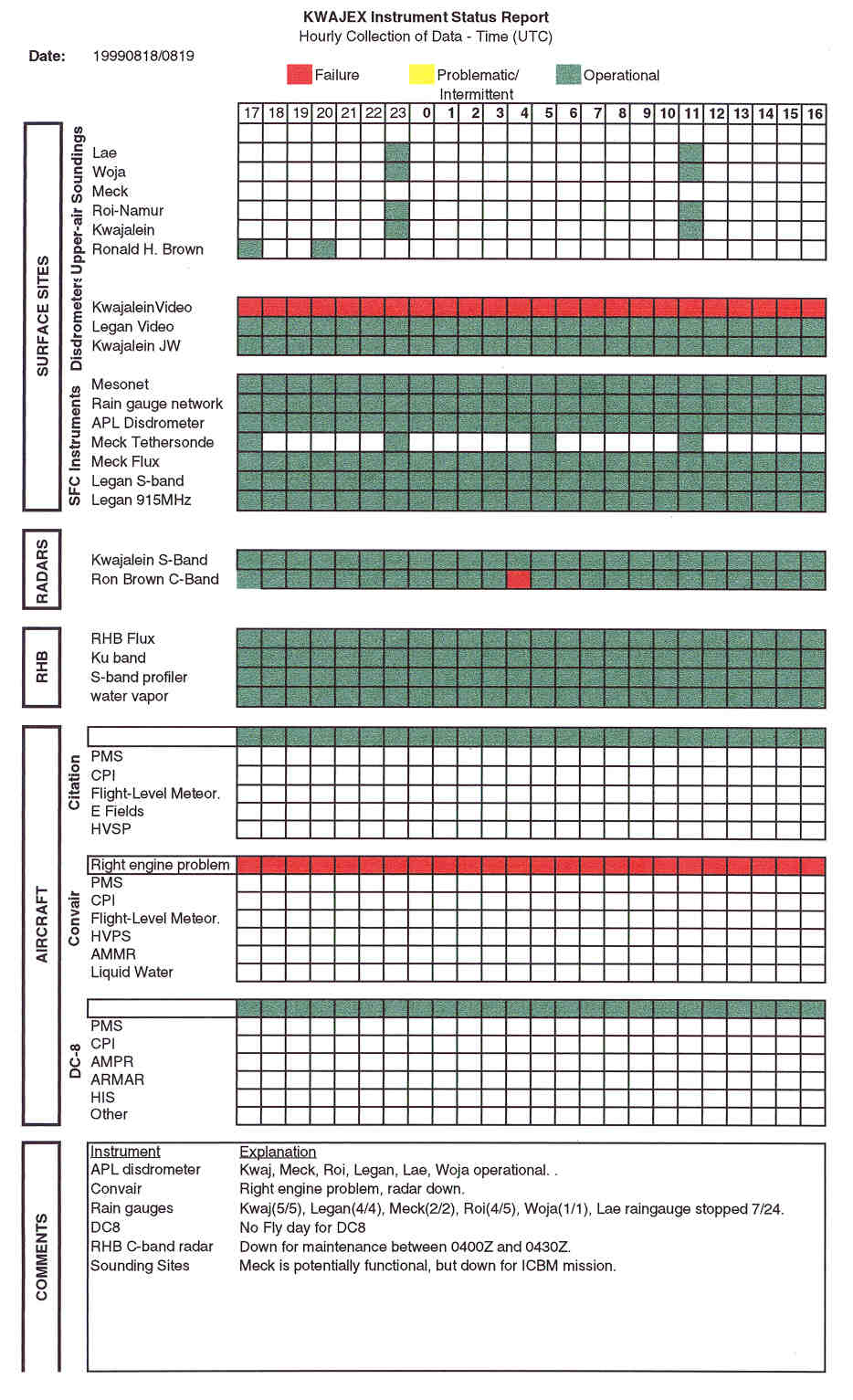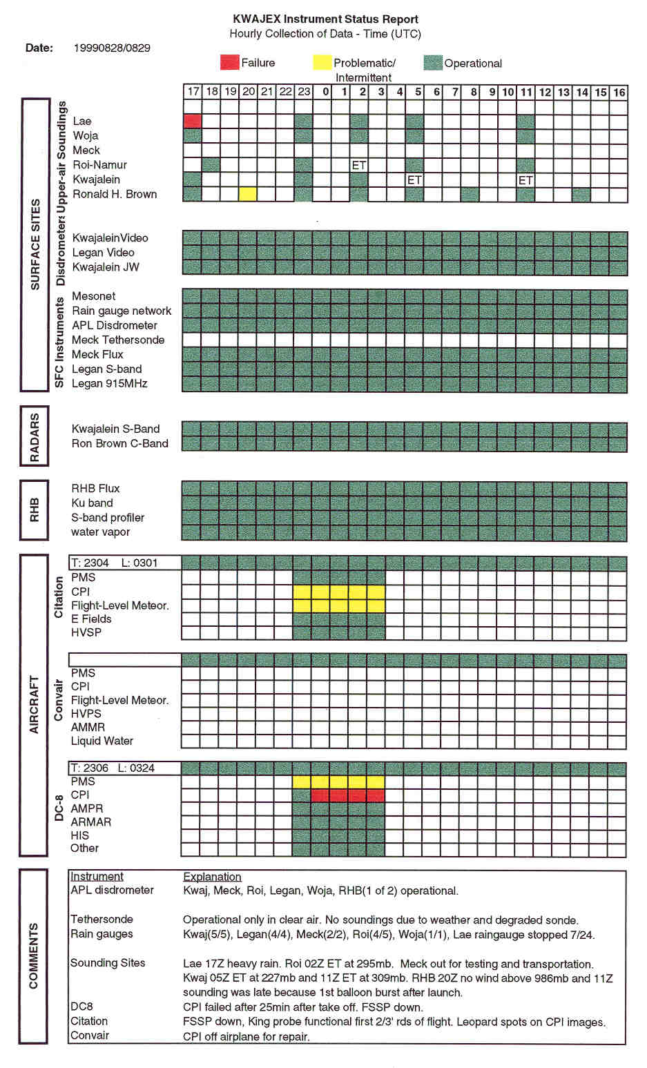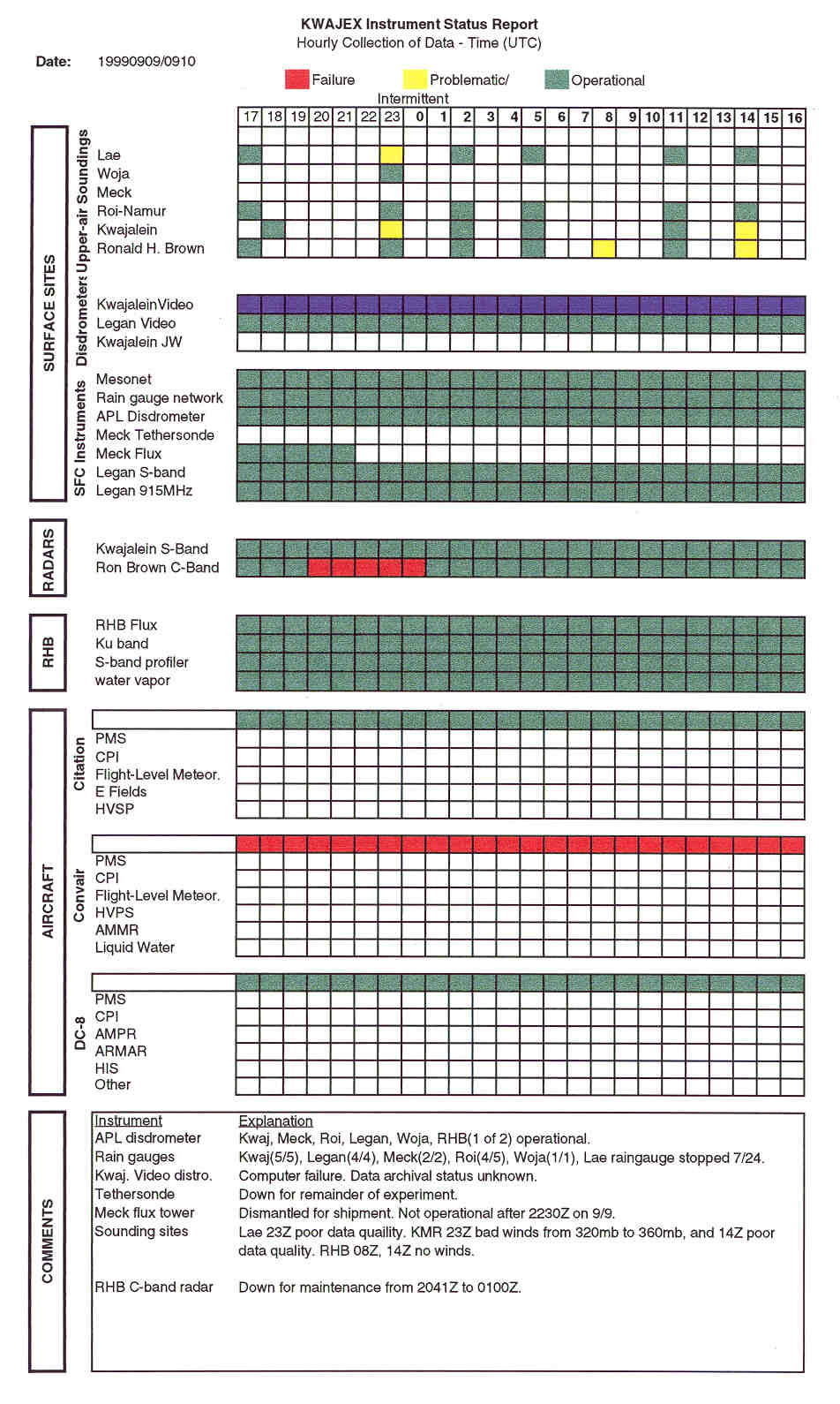 KWAJEX Daily Status CatalogThe following calendar contains links to a chart of instrument status (accessible by clicking on the date).