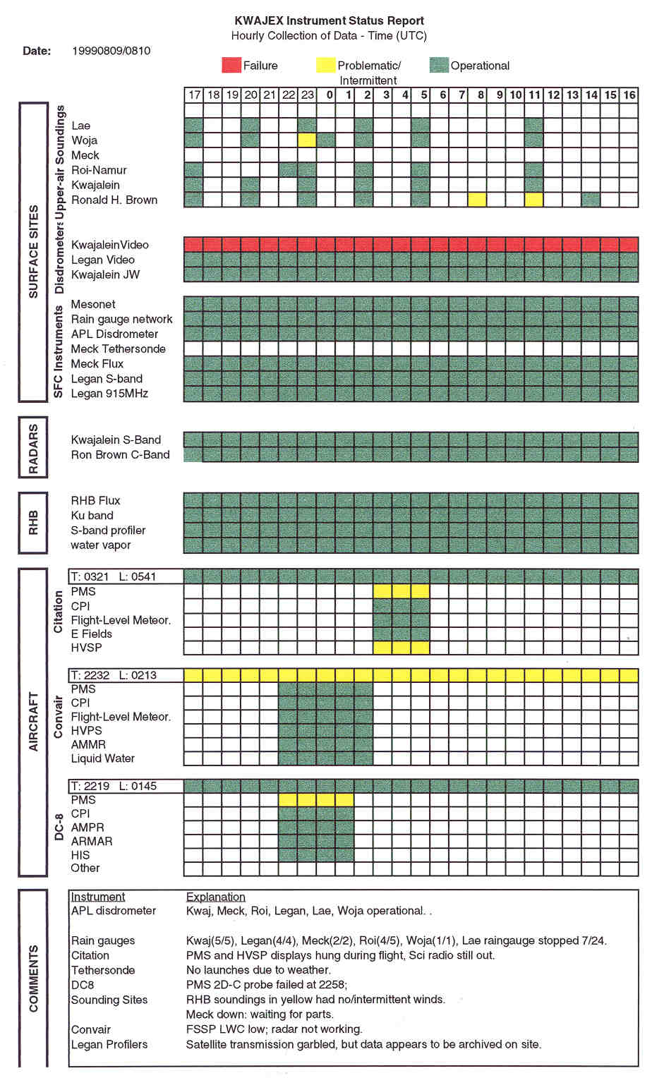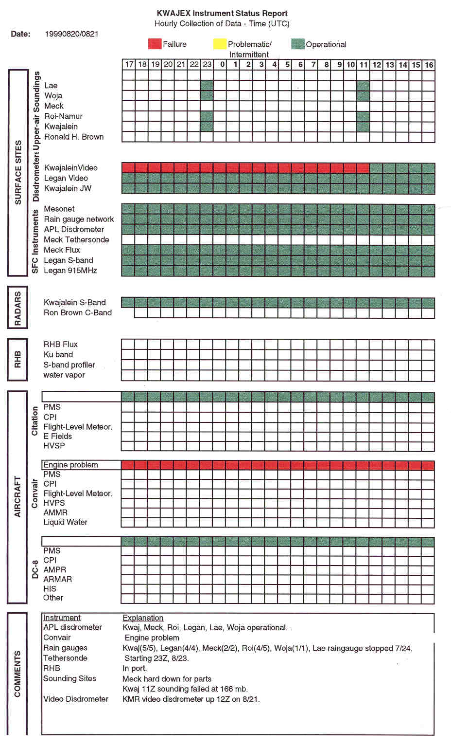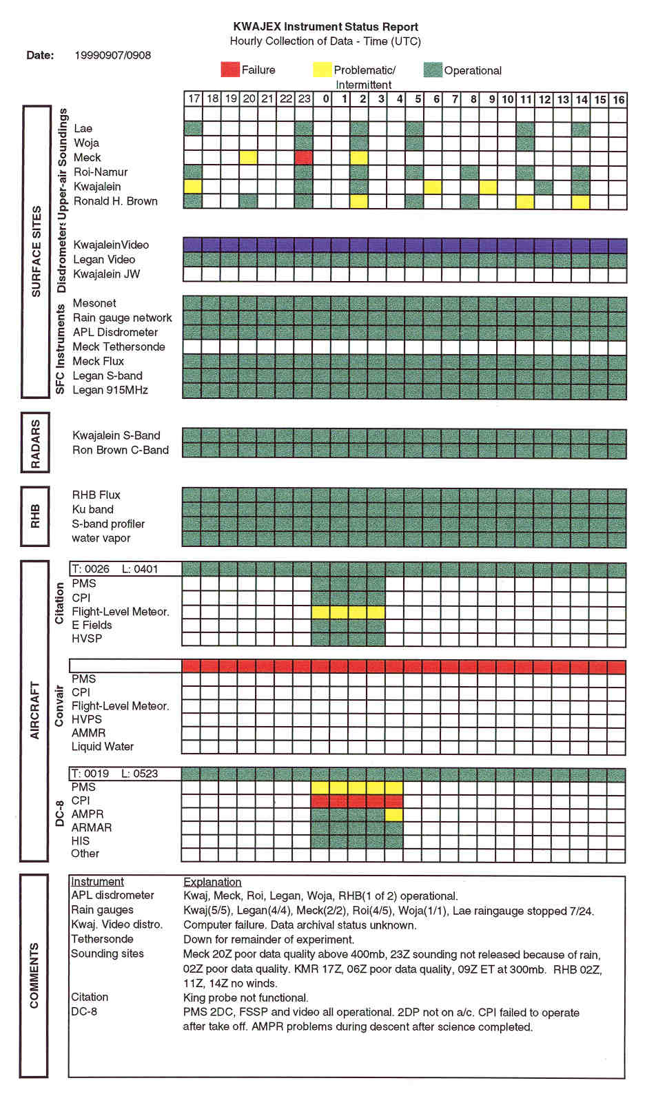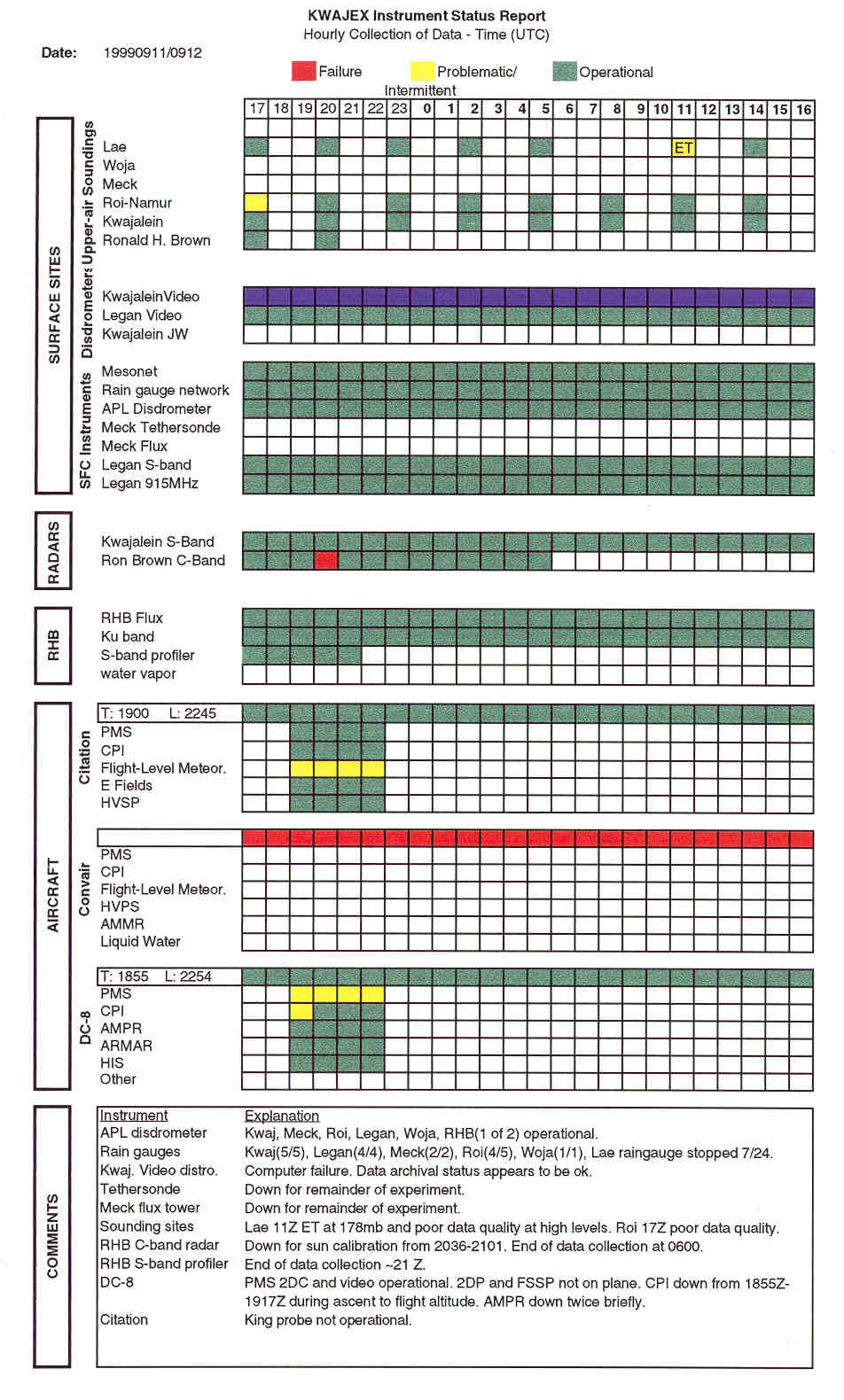 KWAJEX Daily Status CatalogThe following calendar contains links to a chart of instrument status (accessible by clicking on the date).