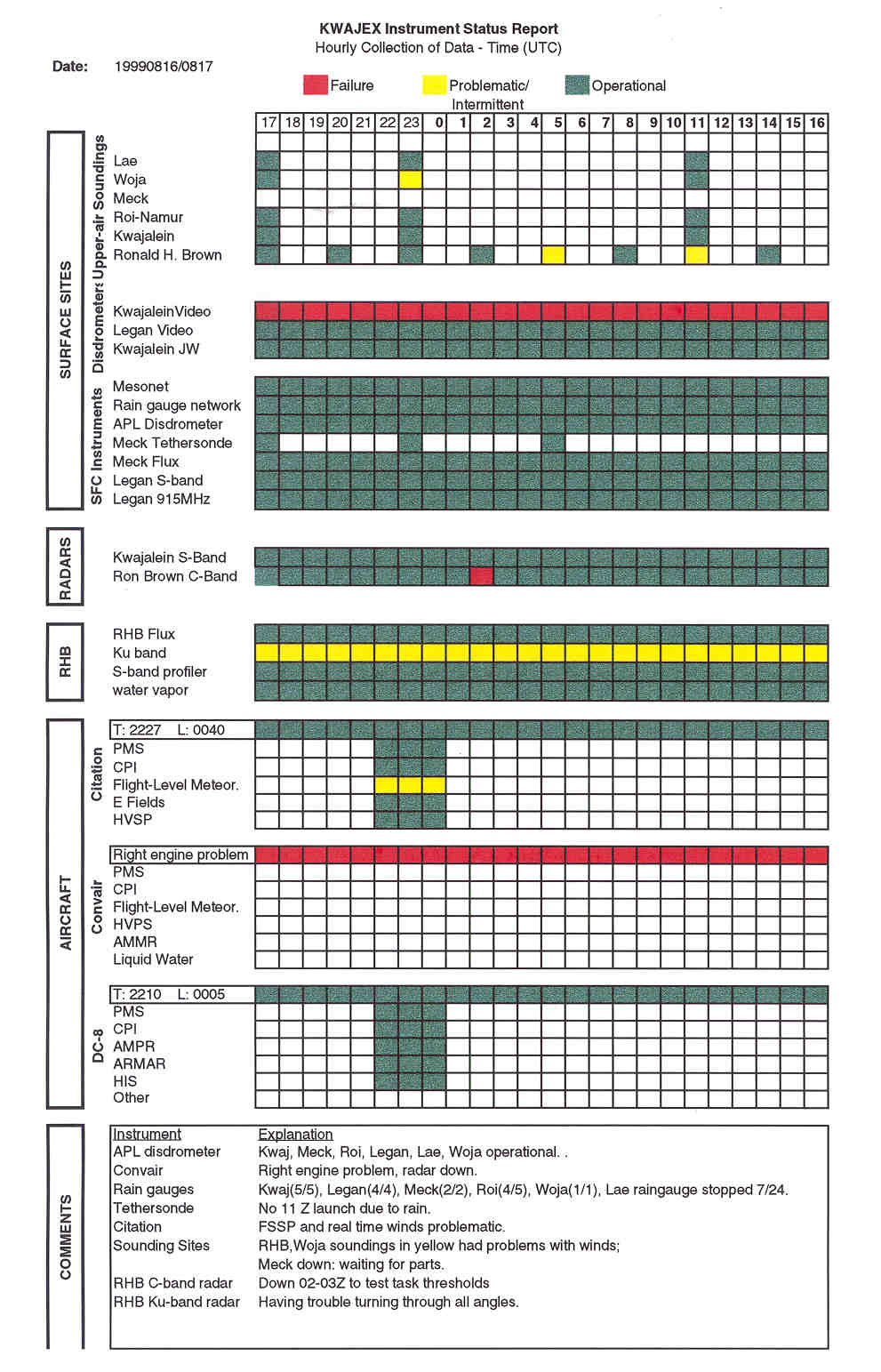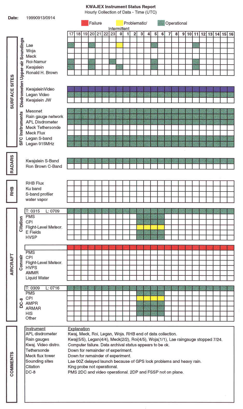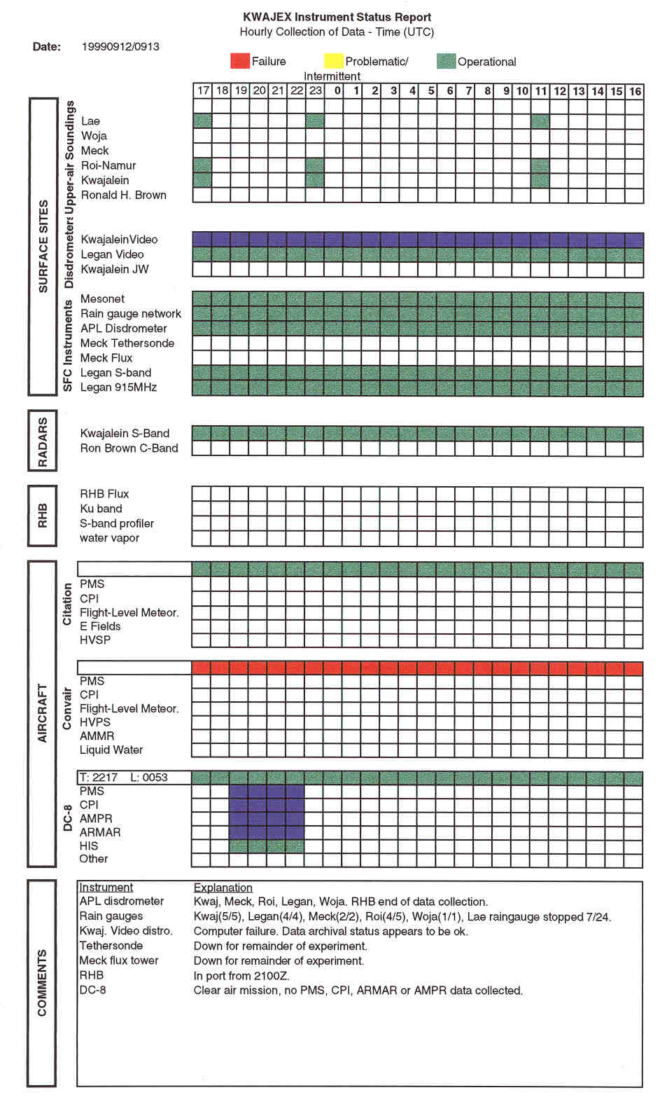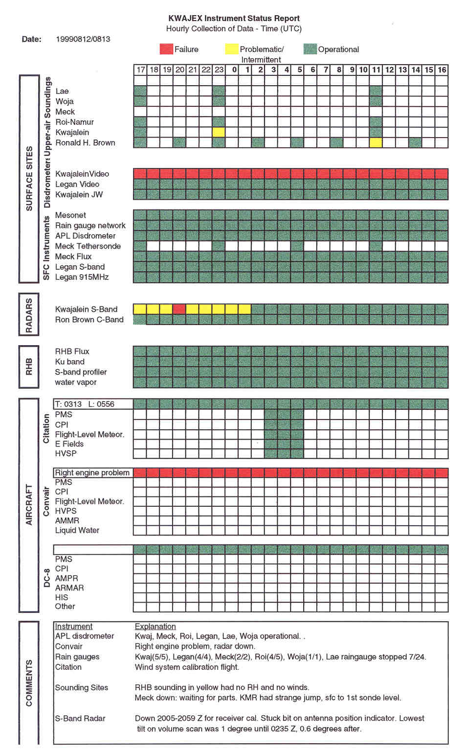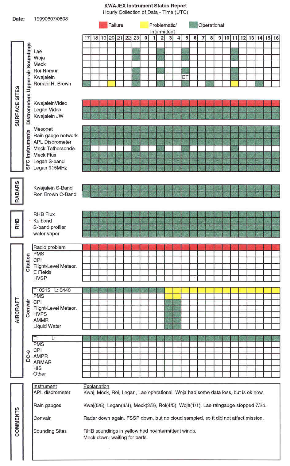 KWAJEX Daily Status CatalogThe following calendar contains links to a chart of instrument status (accessible by clicking on the date).
