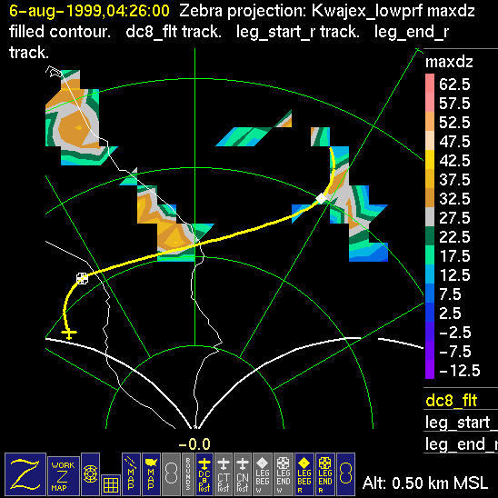 KWAJEX Flight Leg Characteristics for Mission 19990806